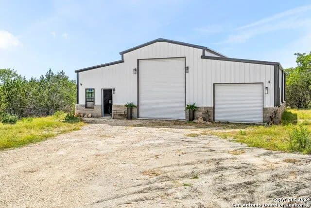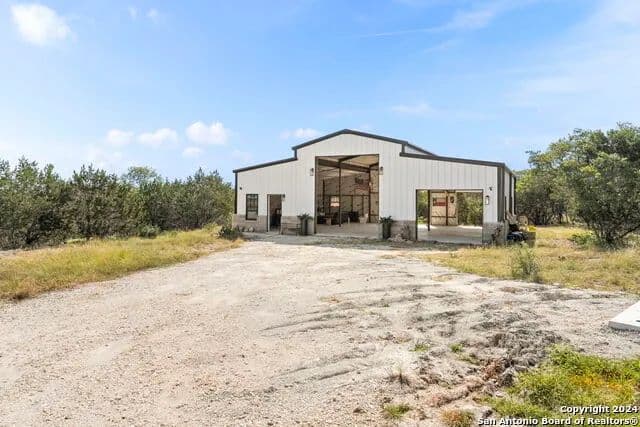 Welcome to your slice of paradise in Sabinas Creek Ranch, and upscale community in the heart of Boerne. This stunning 4-acre property offers breathtaking Hill Country views that will captivate you from the moment you arrive. Equipped with a WATER WELL AND ELECTRICITY, this land is primed for your dream home. The 2,000 square foot insulated metal building is already plumbed, offering the perfect foundation for living quarters. As a bonus, most of the items necessary to complete the living quarters have been purchased and are available for an additional fee. You can live in the building while building your dream home! Its tall structure provides ample space to store your RV, making it an ideal choice for adventurers. Nature enthusiasts will be delighted by the 3 intriguing caves nestled on the property. The back of the property features a picturesque ravine, enhancing the natural beauty and providing a serene escape. Looking out from the front of the property you will enjoy the panoramic view of the distant hills. Don't miss the opportunity to own this exceptional piece of the Texas Hill Country in Sabinas Creek Ranch, where every sunset is a masterpiece, and every day offers a new adventure!