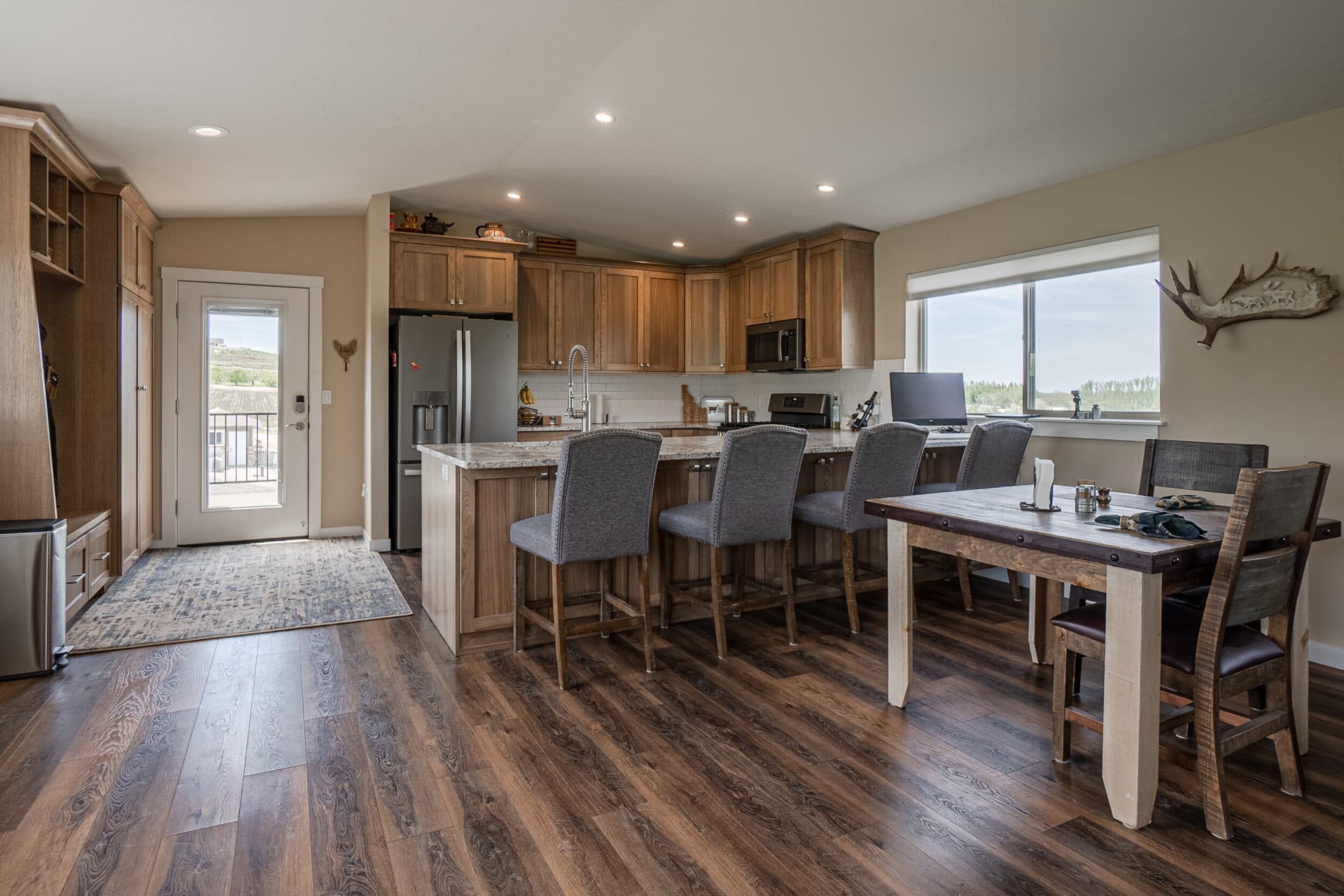 Improvements The 3,480 sqft shop with living quarters, built in 2022, features a 40×60 main shop area with a 3/4 bathroom. It includes two 10′ doors and a 14′ RV stall door, plus several additional storage rooms. Upstairs, the 1,080 sqft living quarters offer 1 bedroom and 1 bathroom, with a kitchen boasting granite countertops and custom cabinets, an open floor plan, and a bathroom with dual vanities and a walk-in shower. The 18×12 deck and lower patio with a fireplace provide perfect spots for enjoying the views and entertaining.