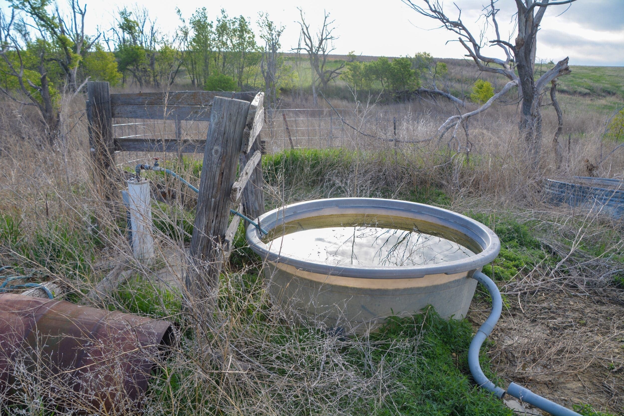 Livestock tank with electric water well