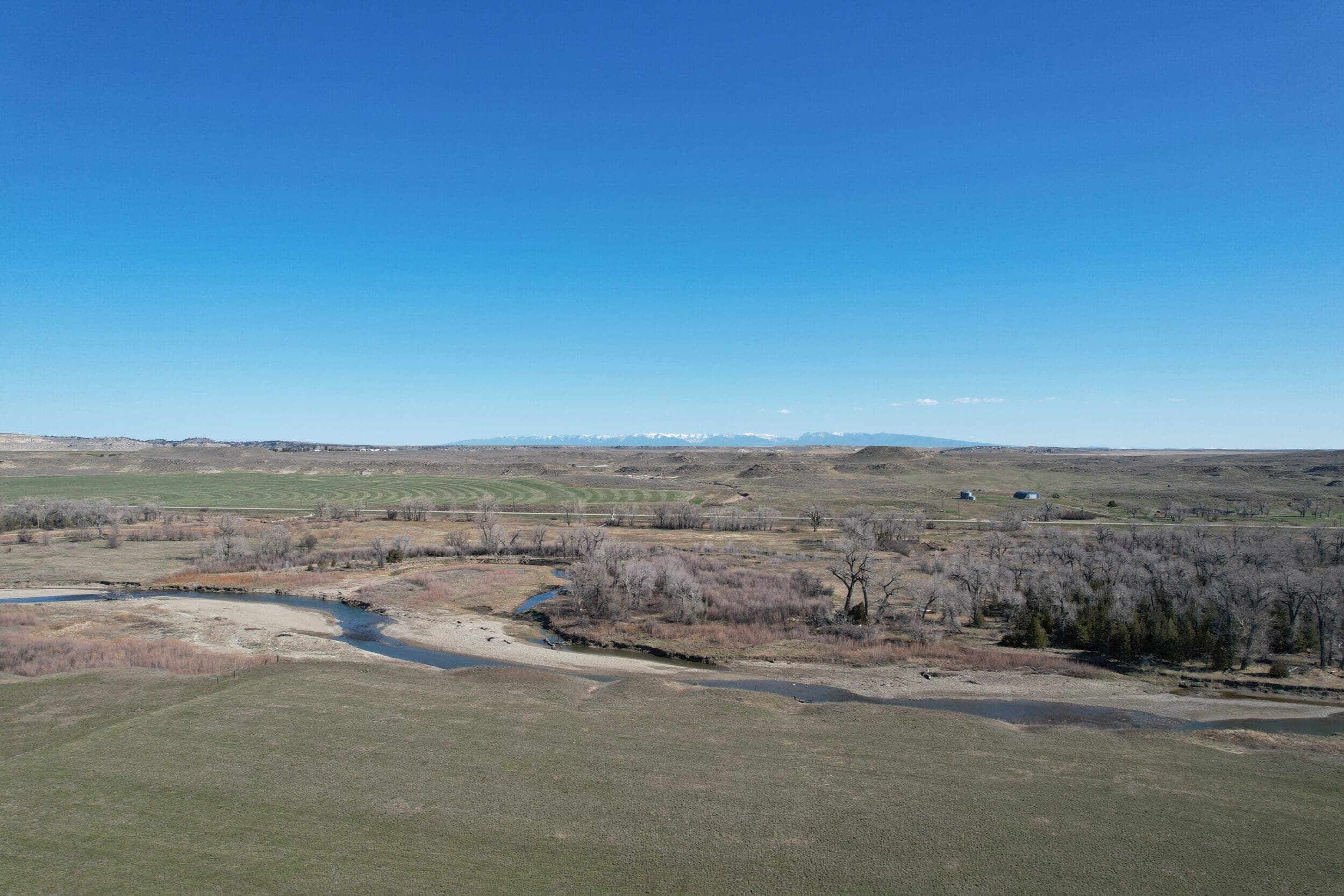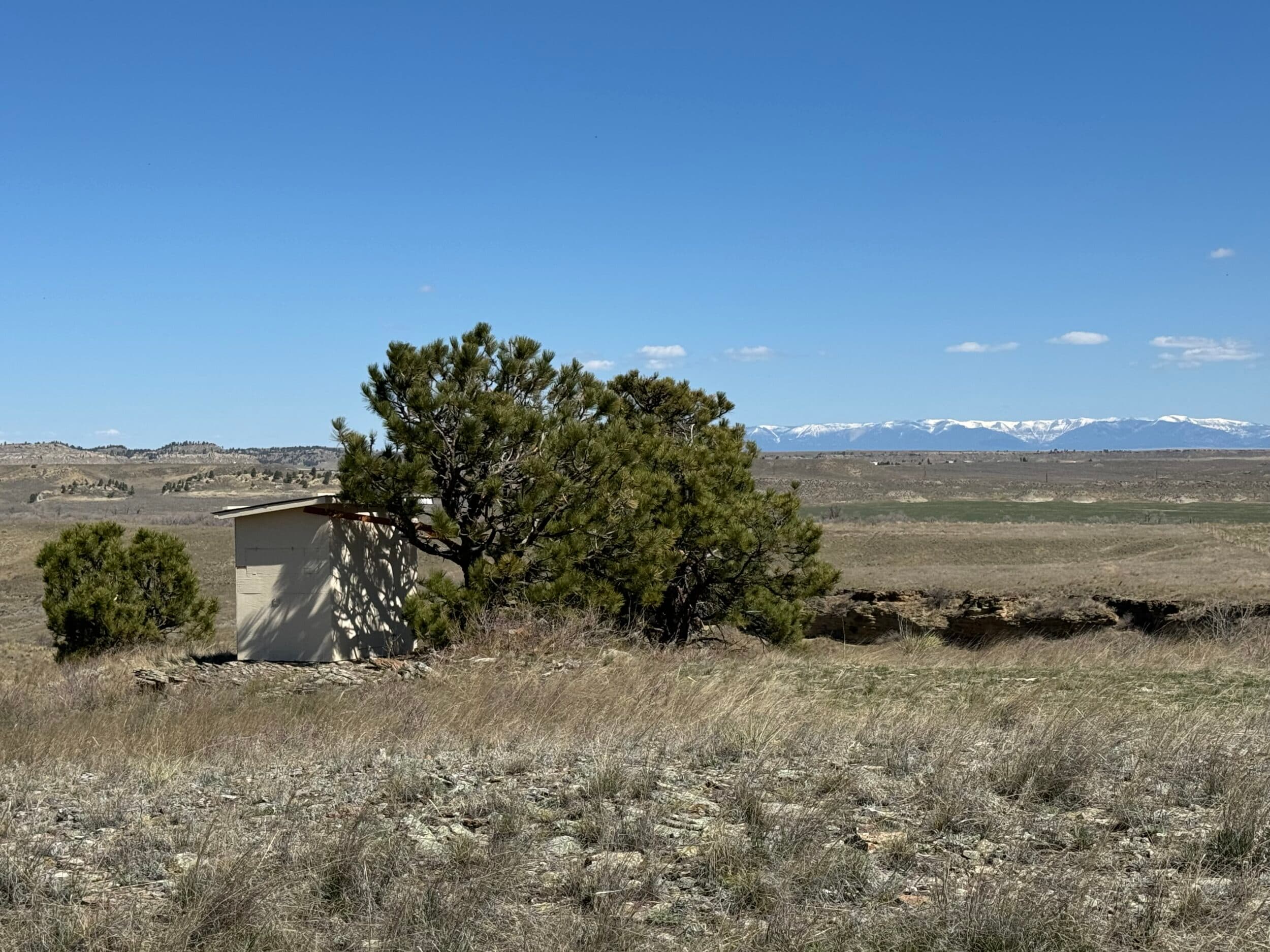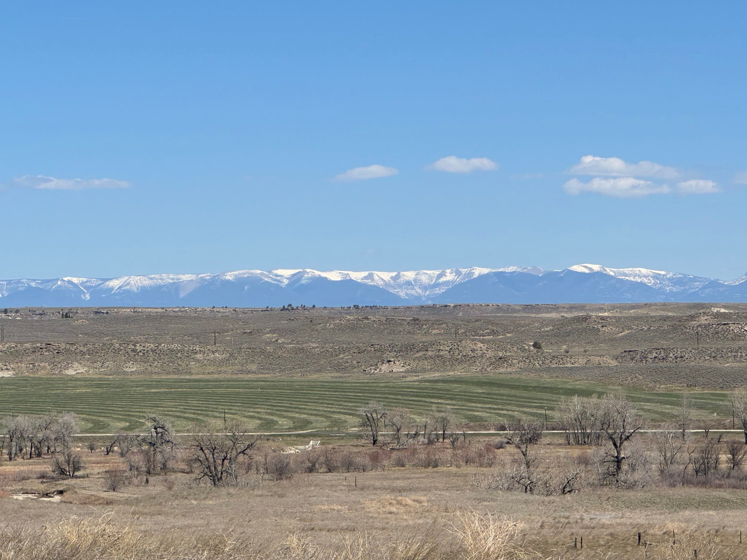 Views from this central valley location are panoramic, with the Crazy Mountains, Big Snowy Mountains, and Little Snowy Mountain ranges on the horizon as well as more distant views of ranges outside of the basin like the Bull Mountains.