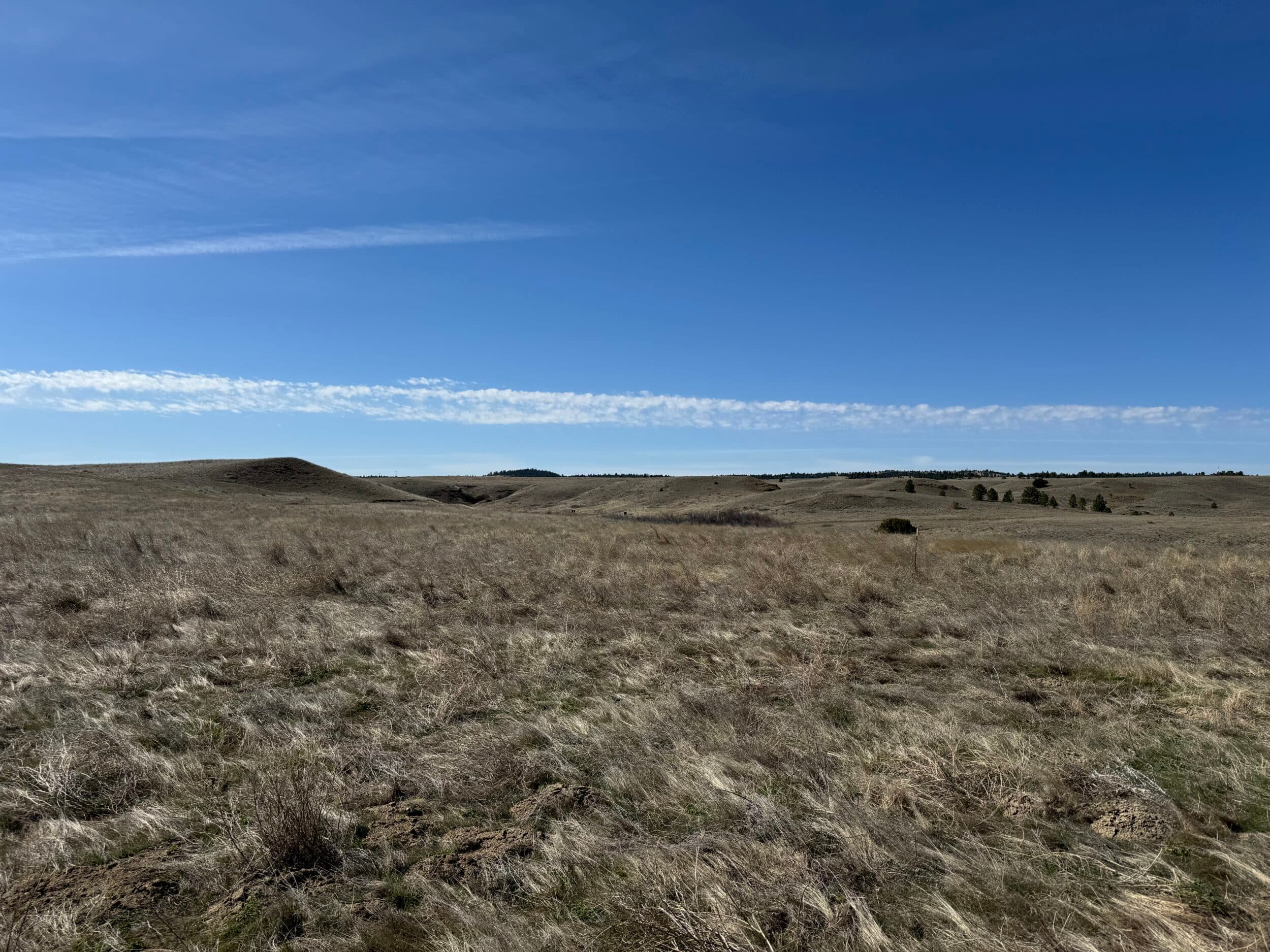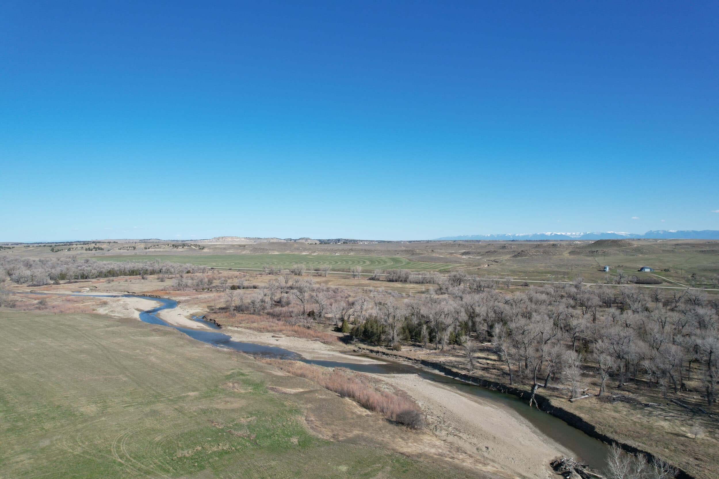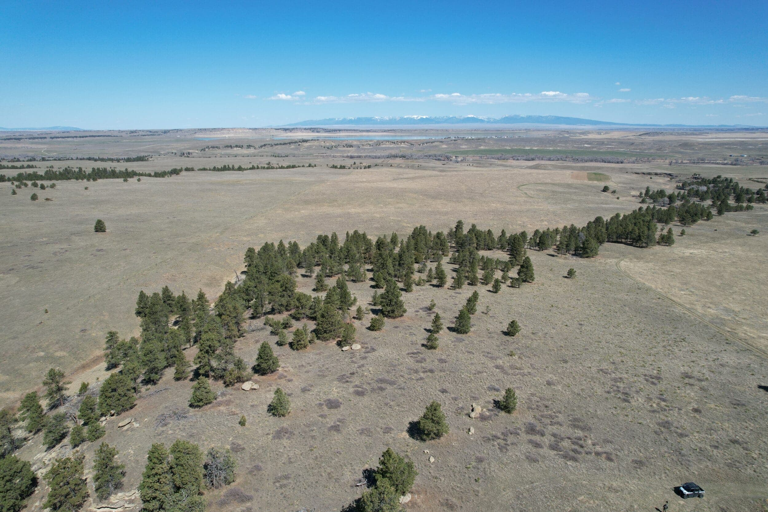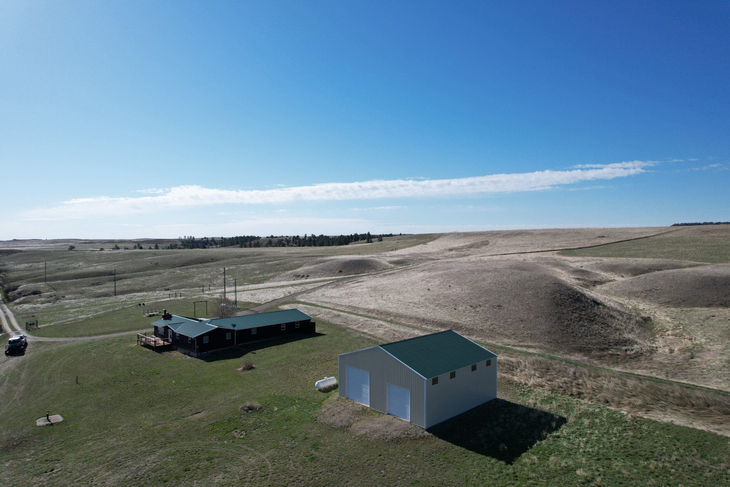 Views from this central valley location are panoramic, with the Crazy Mountains, Big Snowy Mountains, and Little Snowy Mountain ranges on the horizon as well as more distant views of ranges outside of the basin like the Bull Mountains.