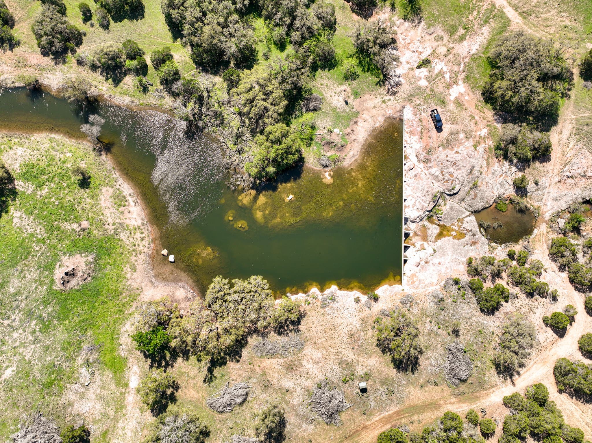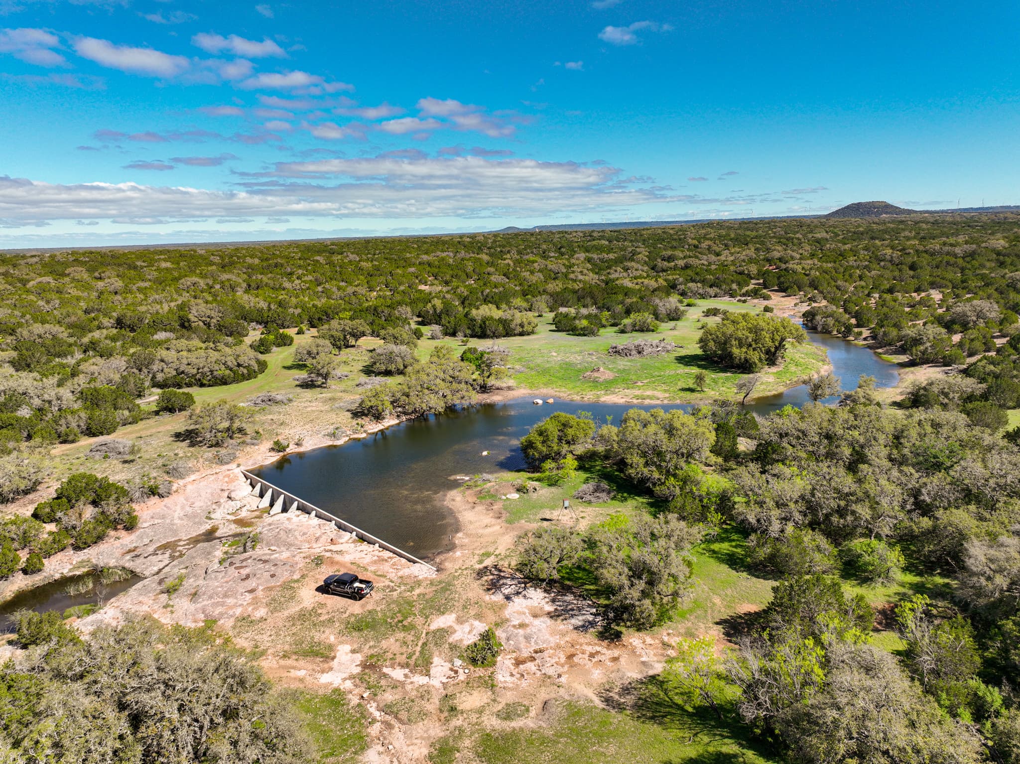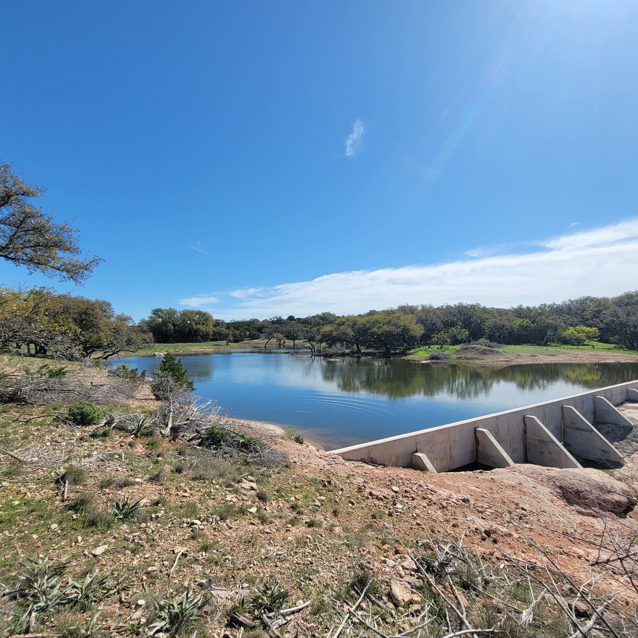 The ranch’s concrete dam is a popular watering hole for wildlife, adding value as your own private swimming and fishing hole. Head for a nearby blind with your rifle or bow, or relax under one of the many mature live oaks with binoculars and camera in hand and take advantage of the wildlife viewing opportunities. Long-range shooters will appreciate the opportunity to shoot out to 1,000 yards, thanks to the property’s steel gong setup.