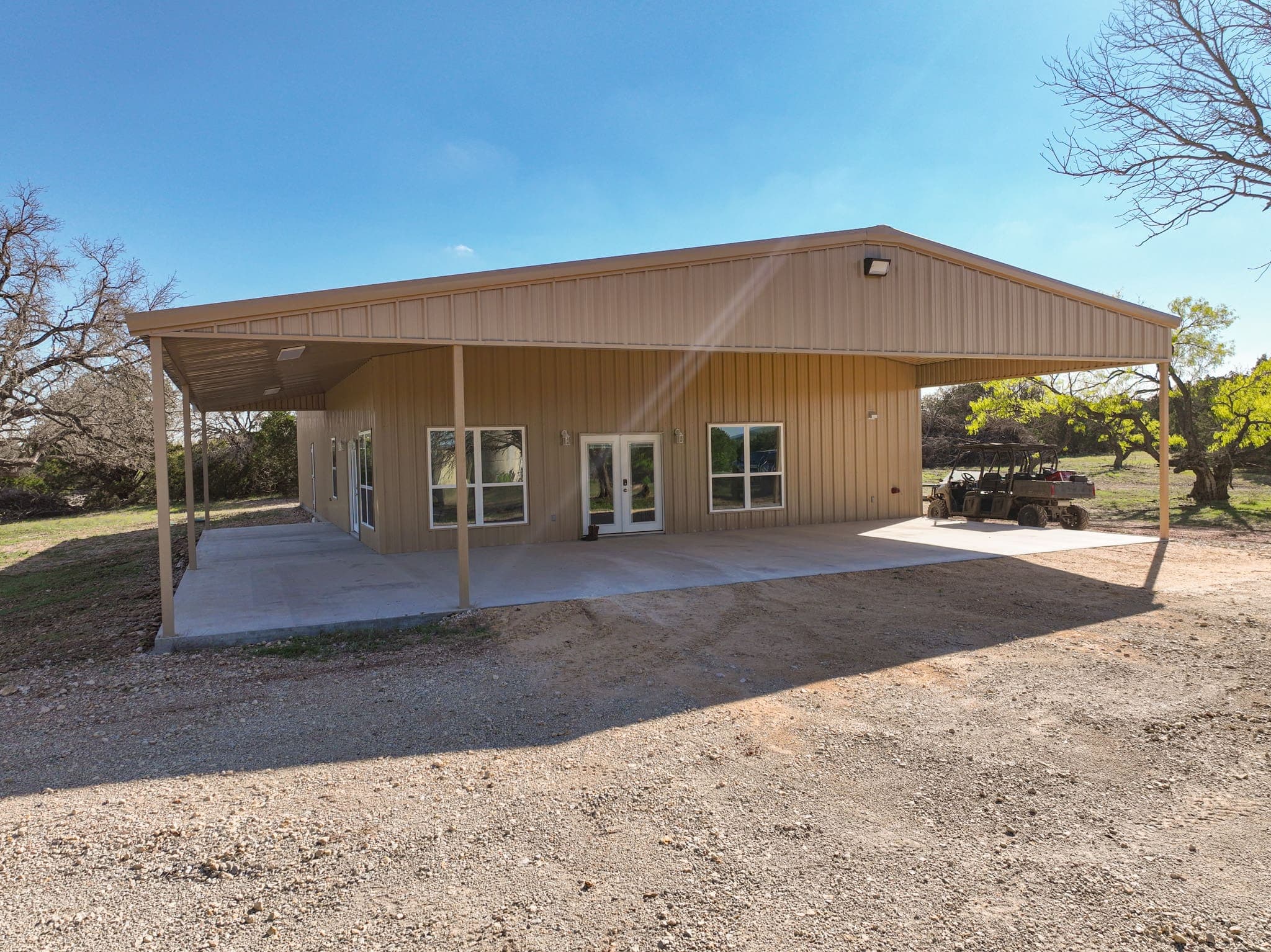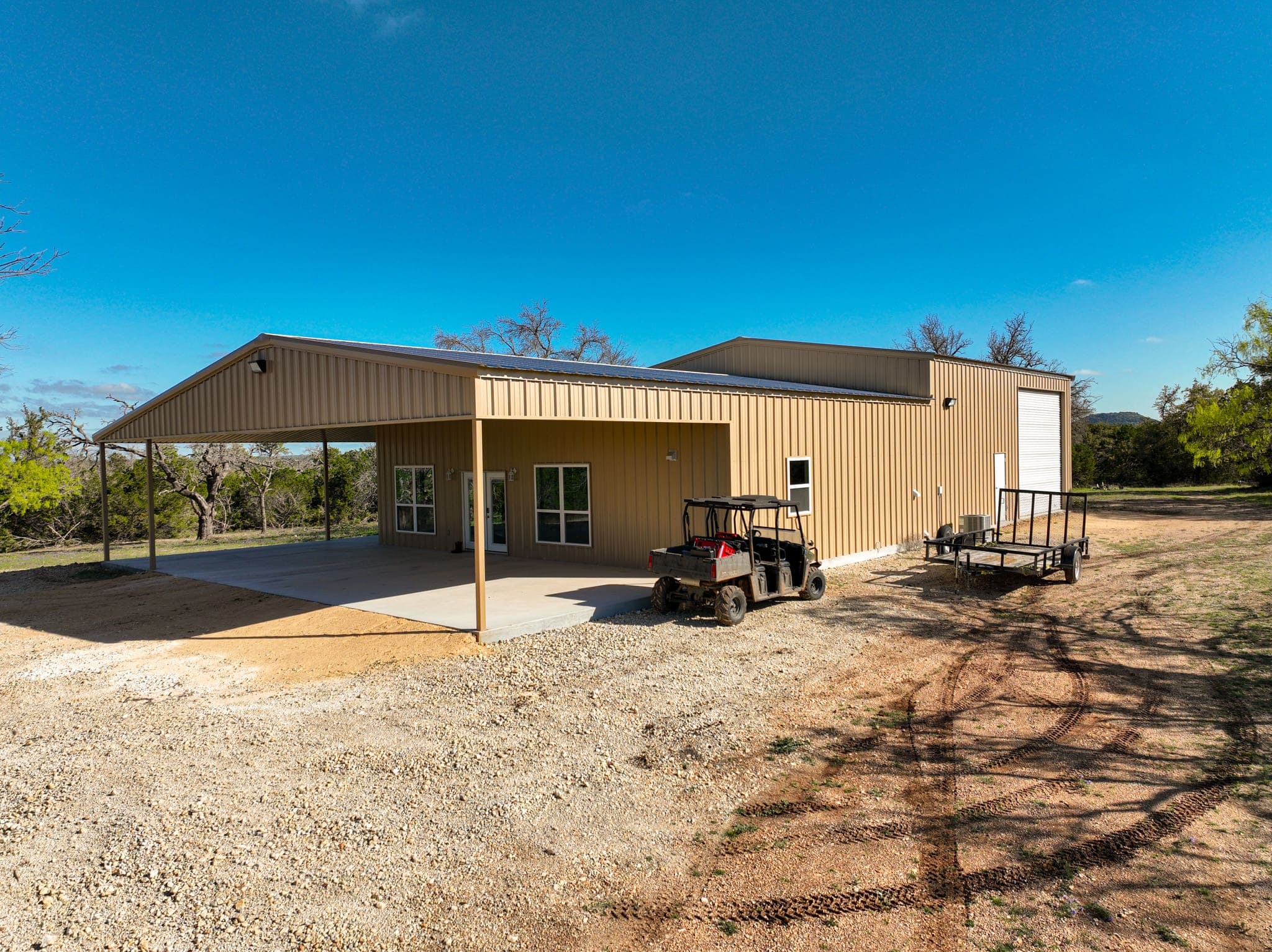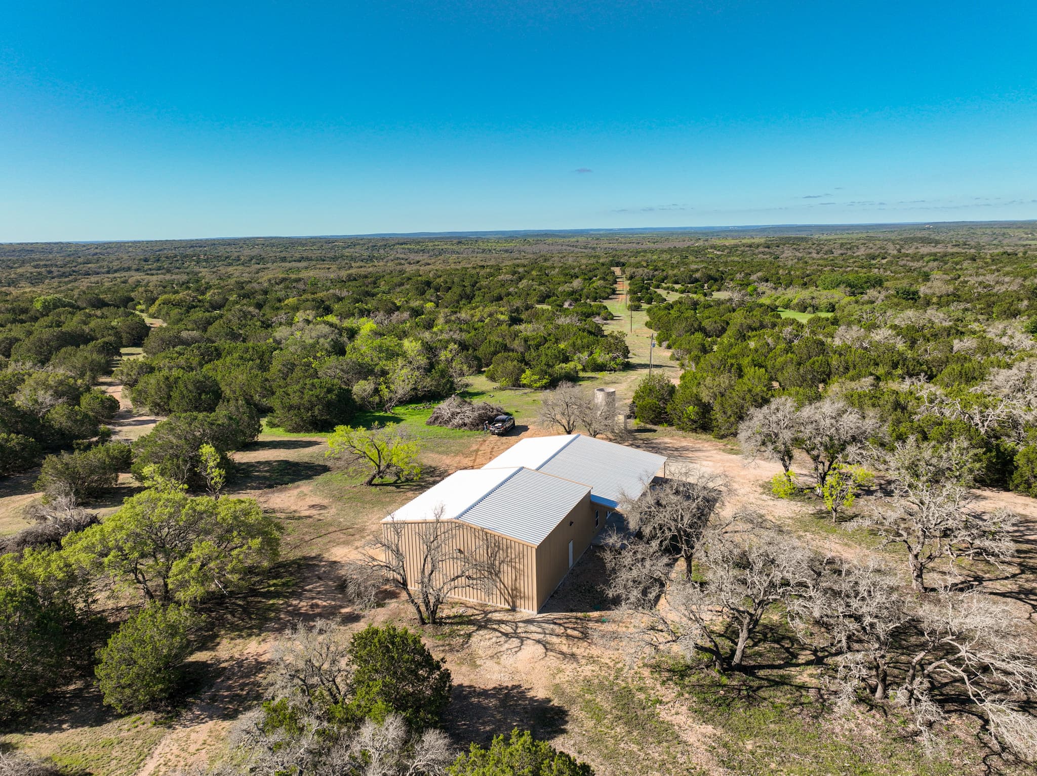 Improvements A brand new two-bedroom, two-bathroom barndomimium with a 40’X40’ shop makes an excellent hunting camp or ranch manager’s quarters. The shop’s sectional overhead door opens easily to store your largest equipment or RV. Move in and start hunting, or build a new lodge to meet your specific needs, whether you seek a private or corporate hunting retreat, want to launch your own hunting business or breed and raise exotics.