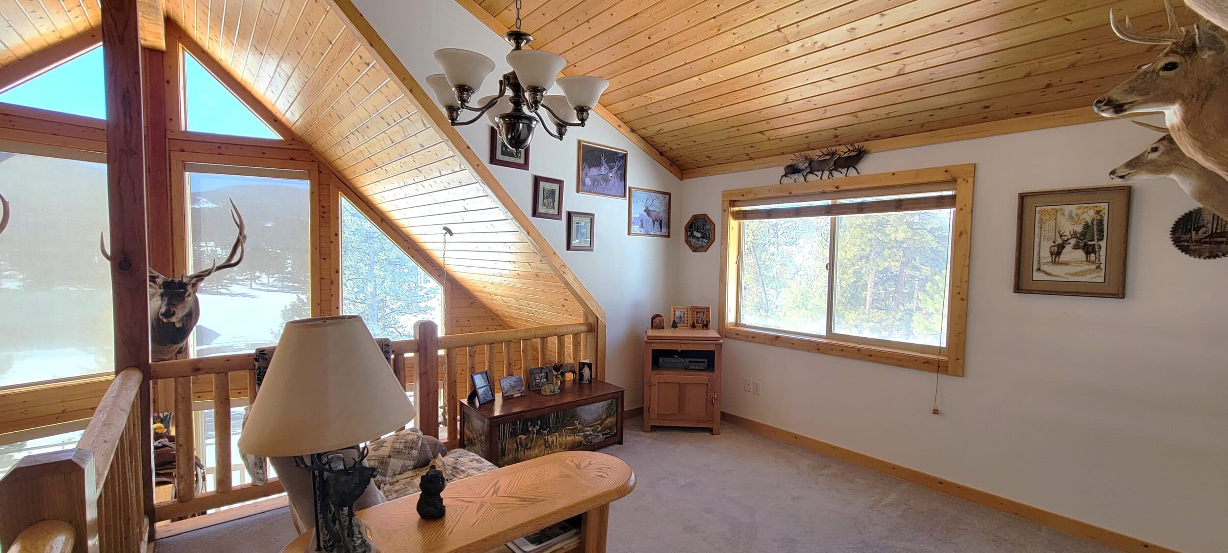 The full floor to ceiling wall of windows provides amazing views as well as the southern exposure to take advantage of the winter solar gain to reduce heating costs.