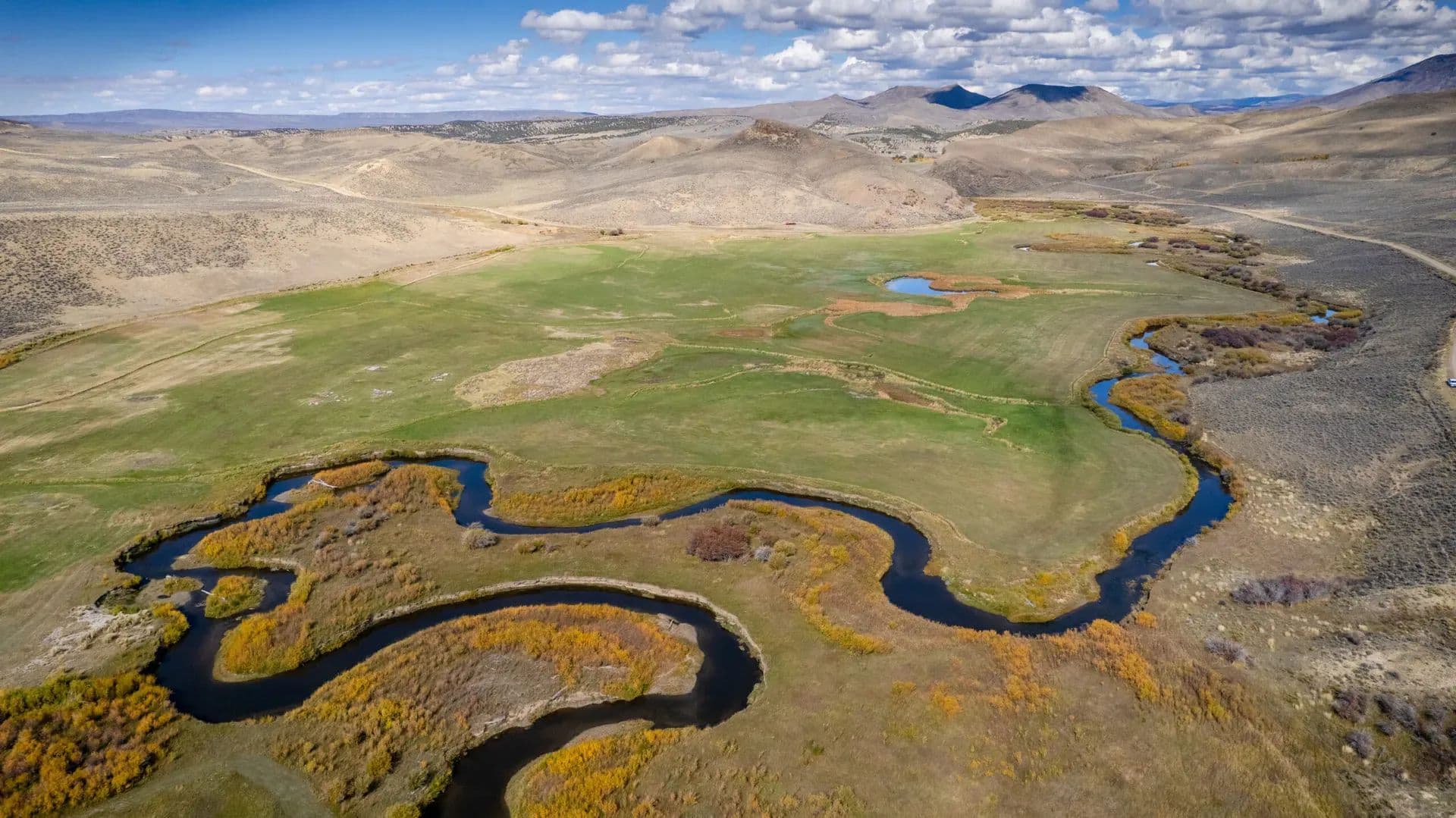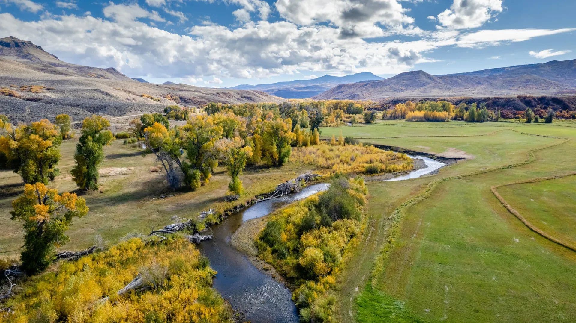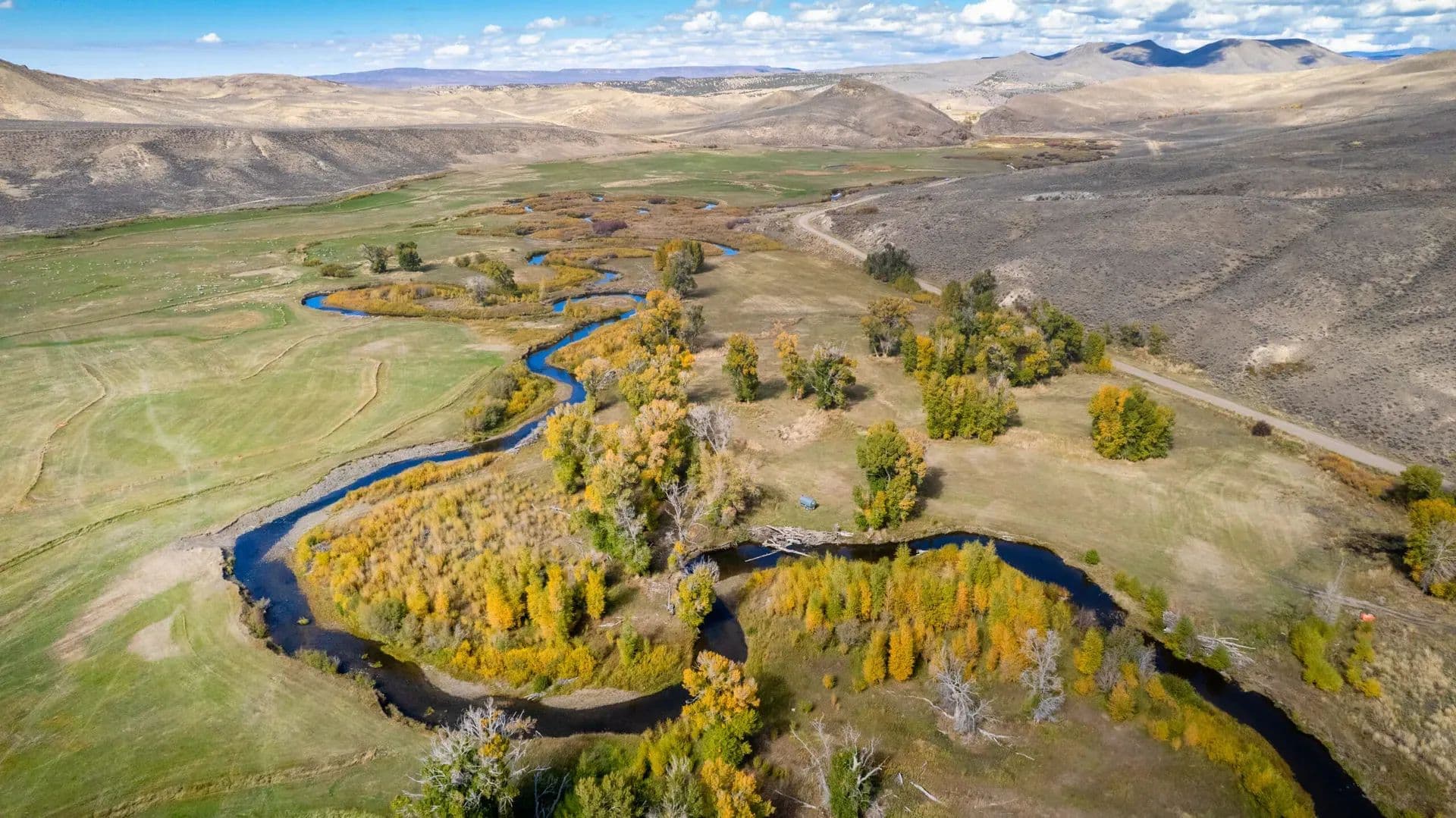 The Pothook Unit of the Slater Creek Ranch is 2317 +/- acres of a classic high mountain river valley with high peaks surrounding the vast picturesque hay meadows. Slater Creek is a beautiful trout stream that meanders for over 4 miles through willow-banked meadows. There is a good mix of alpine meadows, pines, and aspen groves, as well as long oak brush and serviceberry ridges that drop down to the sagebrush benches above the river bottom. Land The approximate 265 acres of hay meadows produce hundreds of tons of quality hay and exceptional late-season grazing opportunities for cattle and wildlife alike. Located in the heart of the elk migration corridor, thousands of elk will pass through the ranch every fall as they move from the summer range to the east to the winter range west of Highway 13. Plenty of resident elk call the valleys and ridges of the ranch home as well.