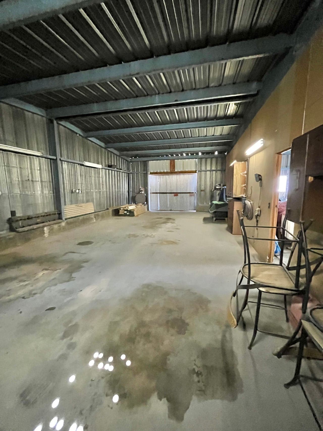 Large Industrial Metal Building with cement floors and sliding doors for vehicle access. This building can be used as a mechanic shop or storage for a number of items. There is enough space for vehicles, equipment, boats, or RV's. The possibilities are endless for its potential use. The main room is 40'x40'. The room on the north side is 40'x20'. The smaller room on the south side is 11.5'x11'. There is no water or natural gas on the property. Please call the listing agent for more information.