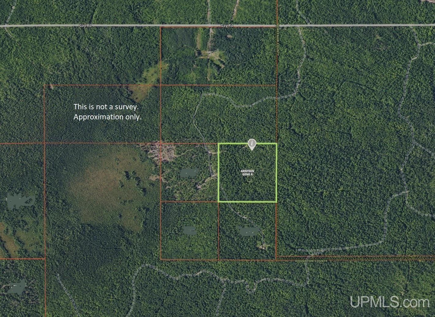 On the border of Houghton and Keweenaw County this parcel is partially wooded with some hardwoods and relatively flat developable areas. There is no legal easement to this parcel and will be sold as-is with no insurable access. Property shall be conveyed by Quit Claim Deed. Parcel is priced to reflect the lack of legal easement and seller's request for buyer and seller to share owner's policy of title insurance premium and state and county transfer taxes equally. Seller may entertain offers with a contingency for buyer to obtain legal easement at buyer's expense as part of an offer. NOTICE: All information believed accurate but not warranted. Buyer recommended to inspect all aspects of the property & bears all risks for any inaccuracies. Buyer to verify all information including but not limited to the estimated acreage, lot size, utilities (availability & costs associated). Buyer should not assume the buyer's taxes will be the same as seller's present tax bills. Taxes are subject to change (possibly significant) & property will be reassessed by the municipality after sale is completed. Sellers may have audio/video recording devices present on property and buyers and agents consent to being recorded by entering property. OFFERS: 72 hours response time requested on offers. Seller, at seller's sole discretion, with or without notice, reserves the right to set and/or modify offer submission & response deadlines.