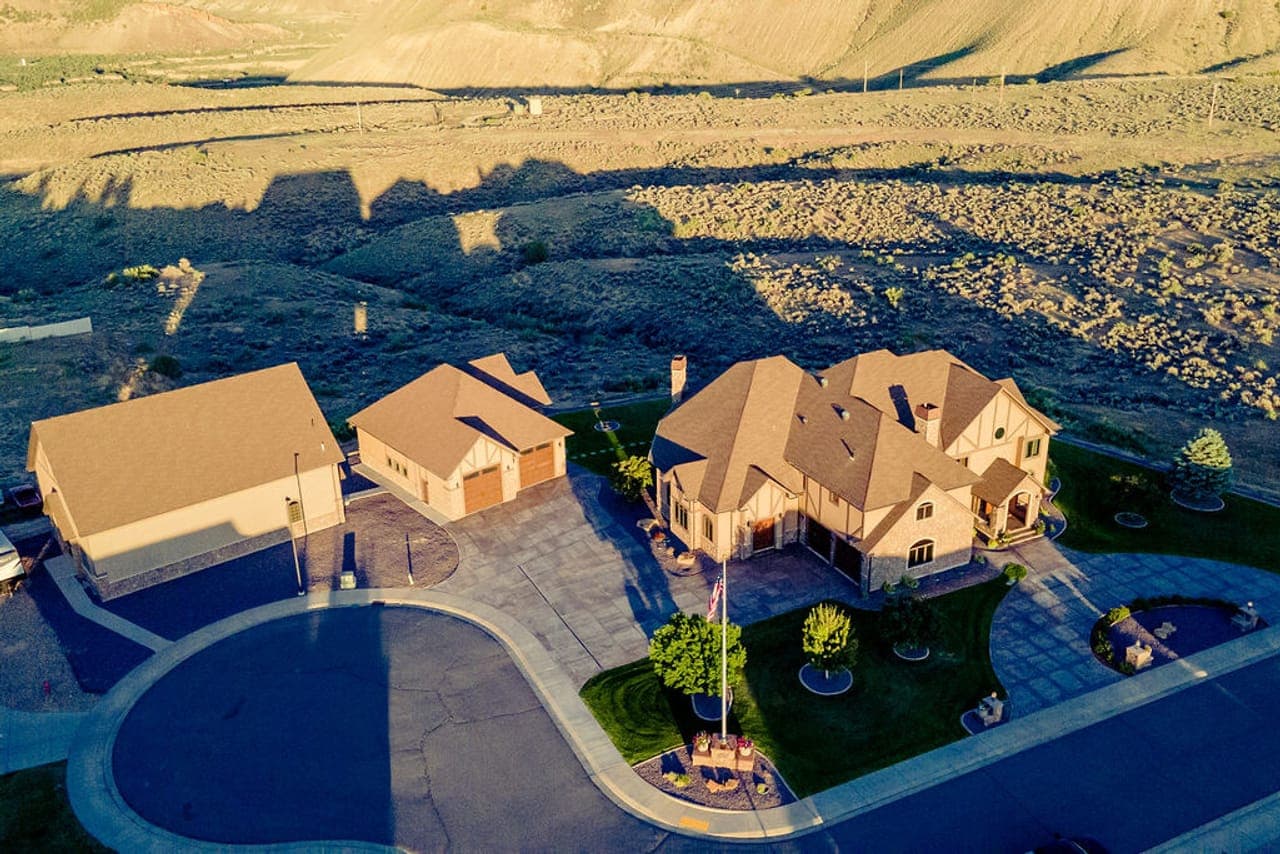Ever dreamed of living in a beautiful Estate? Imagine this: a luxurious 8,100 sqft home in Rangely that boasts all the bells and whistles! A massive detached 2700 ft Trophy room or event room with half bath, a large 2100 sqft shop with half bath. All with beautiful landscaping, heated driveway, and amazing views! The home boasts beautiful solid wood 8ft doors through out, stressed Hickory hardwood flooring, Open concept living at its finest with large wood beams and a gourmet kitchen that would make Gordon Ramsay green with envy! Five beautiful bedrooms and 4 1/2 bathrooms. Take a ride in your own personal elevator up to the second floor to an exquisite master suit with adjoining office or sitting room, double sided gas fireplace, and a lovely walk out deck with views galore, a gorgeous five pc master bathroom awaits with three shower heads and claw foot tub, don't forget His and hers walk in closets. Down the hall with beautiful coffered ceilings and auto lighting is a massive laundry room, 3 Upper bedrooms, and a work out and mechanical room. There is to many things to mention: A luxury dog sanctuary, concrete safe/panic room, the entire property has low voltage wiring, two recirc hot water heaters, all cement is stamped, garages have epoxy floors, and refrigerated air. Please see MLS Listing #20242899 if you have interest in the ranch! 45 minutes from Home. And just when you think it couldn't get any better, add a 640 acre hunting ranch just 45 minutes away, complete with off grid cabins and world class mule deer hunting and two coveted mule deer tags. Yes you read that right its not a mirage its your future! Get ready for the ultimate combo of luxury and adventure Your new life awaits you! This Combo of land and home would make an amazing event center or VRBO!