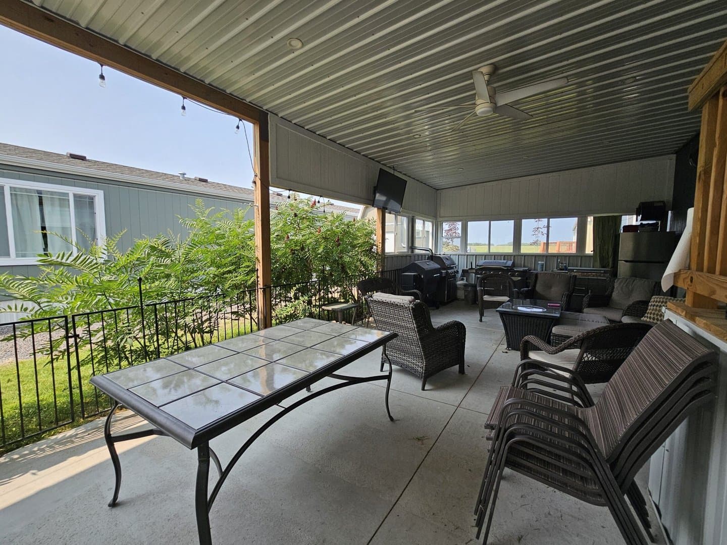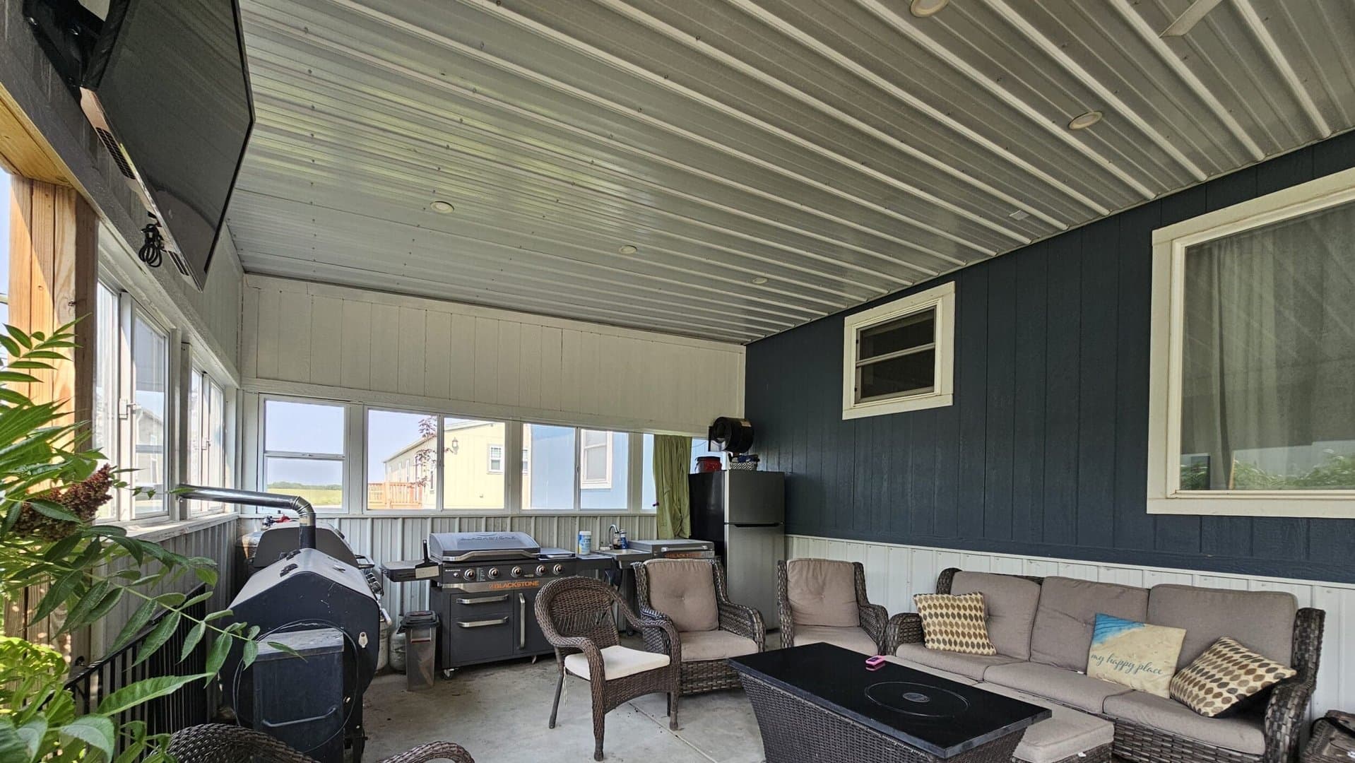 Trailer skirting has 2.5 inches of spray foam insulation, Covered patio has insulation. Sprinkler system is set up with WIFI. Ring cameras, The garden shed is fully insulated with finished walls and has electricity.