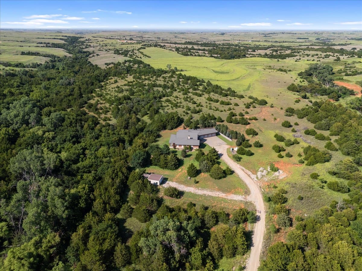 78 +/- ACRES WITH 8,629 SQ FT HOME IN ALVA – CHECK OUT THIS SURVIVALIST’S SANCTUARY WITH 6 BEDROOMS, 4 BATHROOMS, AND A 4-CAR GARAGE WITH ADDITIONAL SHOP SPACE. Situated in the gorgeous Alva countryside, this one-of-a-kind, custom built home was meticulously designed and built with security and safety in mind, as it features two safe rooms, a secret room w/ hidden bookcase entrance, indoor storm shelter, exterior storm cellar, 400+ amp Generac Generator attached to 1000-gallon propane tank, geothermal heat & air system, water well with filtration and softener system for the entire house. It also includes plenty of entertainment extras as well, including a theater room, dry sauna, exercise room, bricked man cave, wine cellar, hobby room, Galaxie central vacuuming system, and two interior mechanical rooms housing the electrical, plumbing, and Hvac system. It is genuinely unheard of to find 78 +/- acres of rural recreational land that has never been hunted, farmed, or grazed, and has only been slightly altered to serve as a sanctuary to the current owners and numerous wildlife living on and passing through the land. This is truly the ideal land for outdoorsmen of all kinds—conservationists, hunters, nature enthusiasts, hikers/campers, and/or recreational thrill seekers. Offering both privacy and accessibility to nearby amenities and highways, this property has it all, as it’s only 3 miles from HWY 64, 29 miles from US-412, and just 16 miles to downtown Alva, which boasts Northwestern Oklahoma State University, Regional Airport, and numerous dining options. Discover the lure of country living and embrace self-sufficiency with this luxurious and meticulously crafted retreat, strategically located amidst the rolling hills and peaceful landscapes of northern Oklahoma. Don’t miss out on the rare opportunity to own such a unique and amazing property. Schedule a showing today!