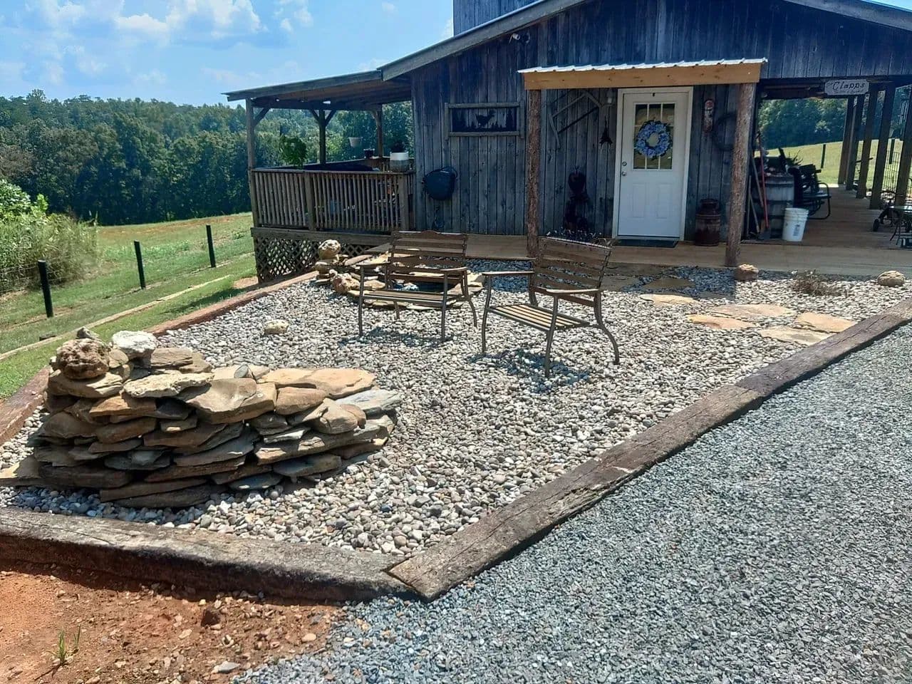 Entire yard is a fenced area, gated at the drive entrance, with 4 additional gates, large barn with bedroom/living area(could be a Barndominium), workshop, mancave, storage loft, 2 hidden storage rooms. Concrete floors, water with water heater, and equipped with electric. Four additional outbuildings for tractor, ATV, storage, or easily covert into livestock barns. Several fruit trees, grape abor, & wild berries, with open pasture around the 2 stocked ponds. One being spring fed with a floating dock, the other heart shaped, with 3 creeks runnning through the property, and a cave.