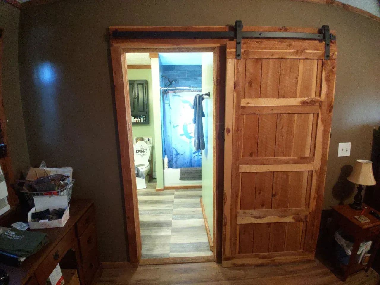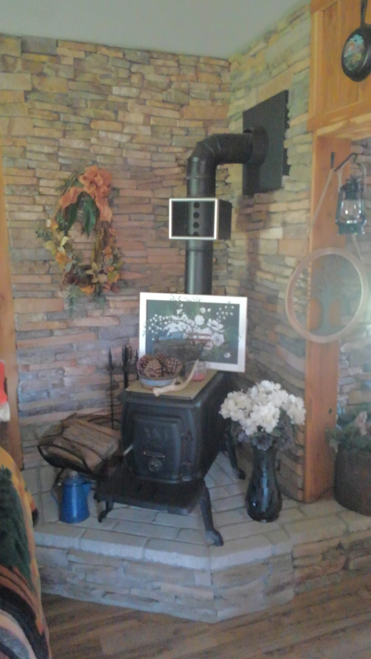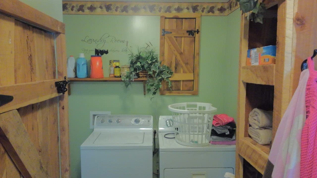 Farm home with living room/kitchen combo, rustic cedar wood walls, stone hearth with pot belly wood burning stove, farm house kitchen sink, cedar pantry, understair storage closet. Cedar trim and new wood flooring throughtout the entire home. Dining room has rustic cedar walls with sliding glass patio doors leads you out to the front porch for viewing breathtaking sunsets. Remodeled full bathroom/laundry room, with barn door style sliding door, corner stone/tile shower with waterfall glass door, bubble glass block window, and rear door to back porch over looking the spring fed pond and pasture. Upstairs master suite with walkin closet, corner gas fireplace, barn style sliding door leads you into full bath with tiled shower with glass block window, cedar shelving for linens.