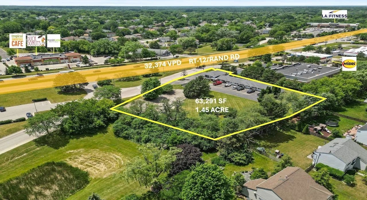 Introducing an unparalleled opportunity for visionary developers: Paul Proano Properties proudly presents an exclusive prime land development prospect in the heart of Lake Zurich. Nestled on 1.45 acres, this site features a 6,259 square foot mixed-use 10-unit building currently generating six figures annually, poised for increased rental yields. The unit mix is (4) 1Bd/1Bath units, (4) studio units, (1) 2Bd/1Bath unit and (1) office unit. Being zoned B-3 for regional shopping, the location offers exceptional redevelopment potential. Boasting 290 feet of frontage and comprehensive on-site utilities, this property ensures streamlined development. Lake Zurich, a vibrant community of 19,624 residents, provides an ideal backdrop for capitalizing on a prominent, high-traffic locale. Strategically positioned off Route 12 with 37,274 vehicles passing daily, it neighbors major retailers such as Walmart, Costco, and Home Depot. Adjacent to a bustling retail strip featuring Lake Zurich DMV, Binny's, Tropical Smoothie, and Duck Donuts, and with ongoing commercial developments nearby, this site promises to be a cornerstone of the area's growth.