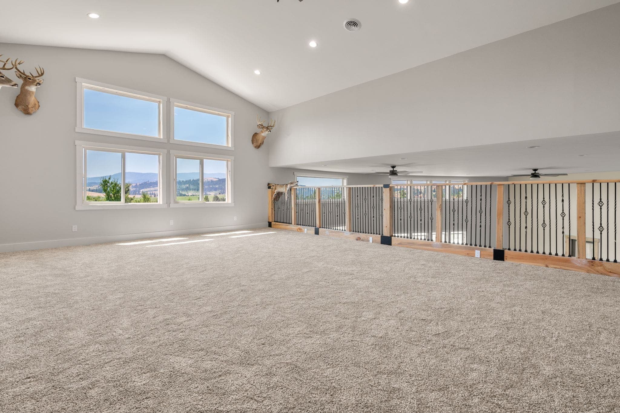 Experience rural mountain luxury living in this extraordinary, custom finished 4-bedroom, 4 full bathrooms, two story estate on 5 maintainable, fully fenced acres. Whitetail deer, elk, pheasants, and other wildlife visit the property and surrounding area year-round. Come see this home in person and you will never want to leave! Improvements Spacious barn and extra storage shed are in addition to the covered RV parking, the 2-car garage with large storage room behind, and the massive double bay shop with an office above and an additional attached storage room that can easily be a 5th bedroom. This home defines comfort and luxury w/ high-end designer finishes & an unmatched blend of indoor-outdoor living. Floor to ceiling blued pine finish windows grace the main great room with Mohawk Revwood plus flooring throughout. Stunning custom-built blued pine and wrought iron staircase and railing leads up to the second level. Come home to your own piece of heaven on earth in Idaho with unparalleled mountain views as far as the eye can see, and skies lit up with the constellations at night. Every detail has been meticulously crafted from the massive gourmet kitchen w/ double custom granite island over 16ft long and 5.5 ft wide, to the custom cabinetry, all new stainless appliances, ILVE Italian made gas/electric oven in the main kitchen with hammered copper vent hood and matching copper farm sink. The vaulted ceilings, expansive walls and striking ceiling beams are a hunters dream for mounts or bring your fine art collection! The expansive 5840 ft floor plan seamlessly connects the living spaces, creating an ideal environment for both entertaining & comfort. The second, full butlers’ kitchen, with stainless appliances and inlaid copper sink is what most homes boast as the only kitchen. The main level master wing is a true retreat exuding spa-like luxury, featuring a fireplace, massive double walk-in shower, oversized soaking tub, and both his and hers oversized walk-in closets. The second level features a spacious loft-style family/game room, 2 full bathrooms, and 3 more bedrooms including an en suite. Whether this is your forever home, a vacation home, hunting lodge, or an Air bnb/wedding venue, all of life’s greatest moments and memories can be made and shared here!