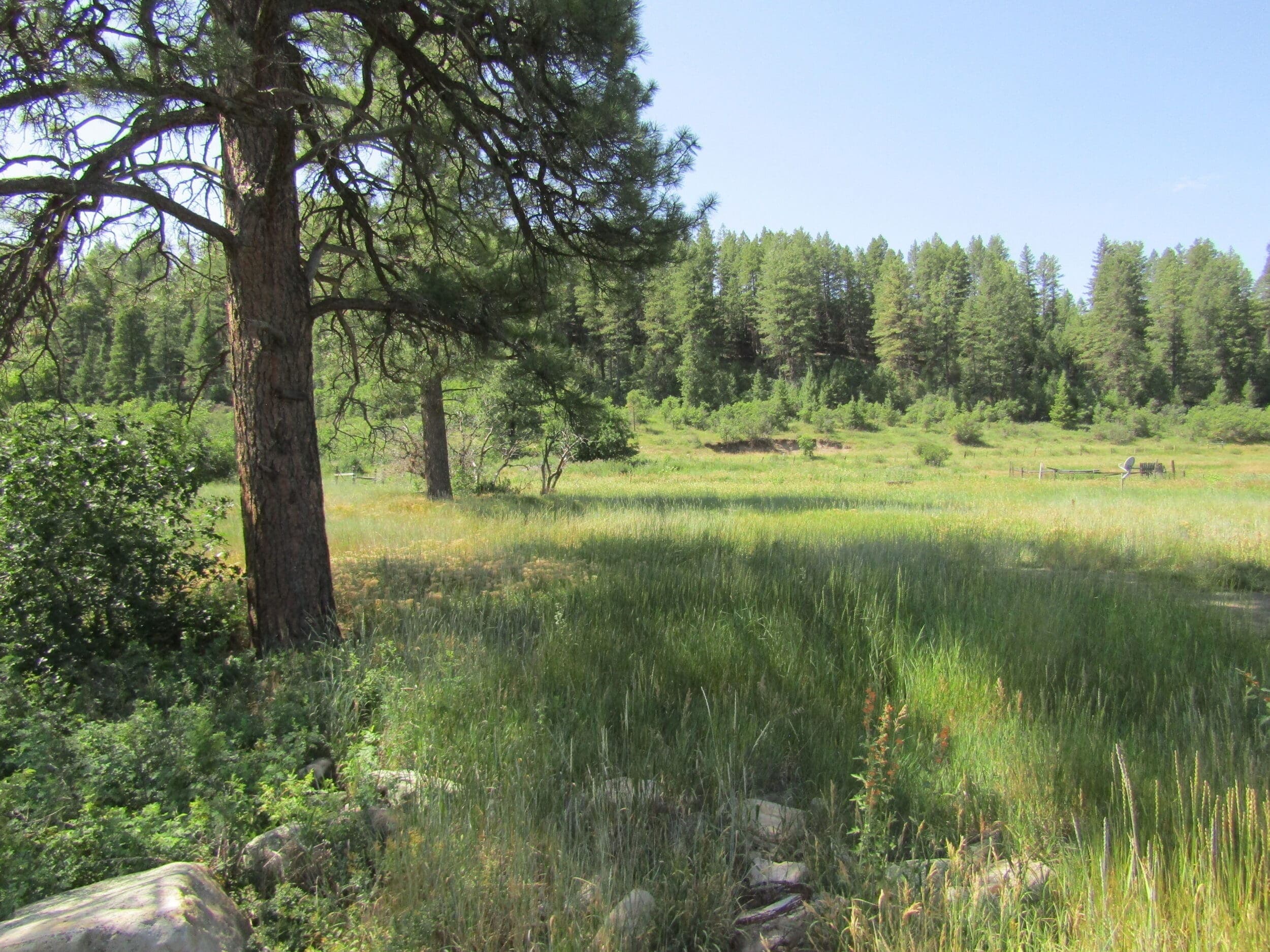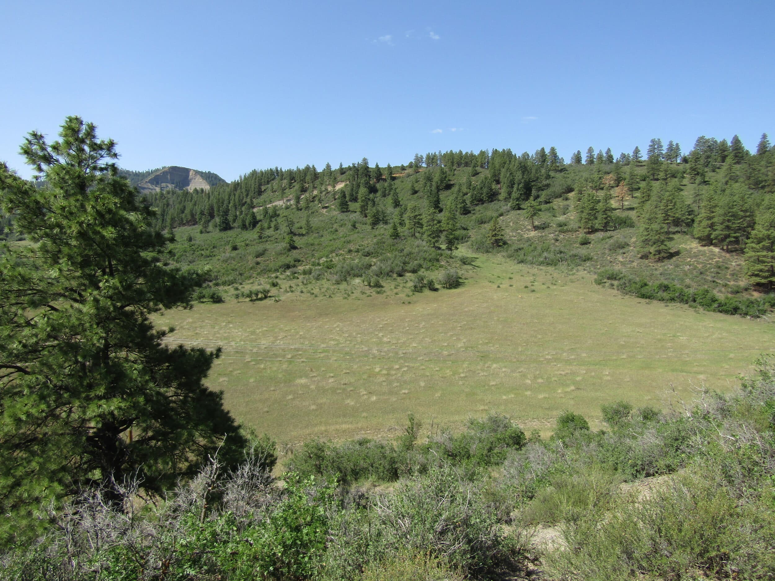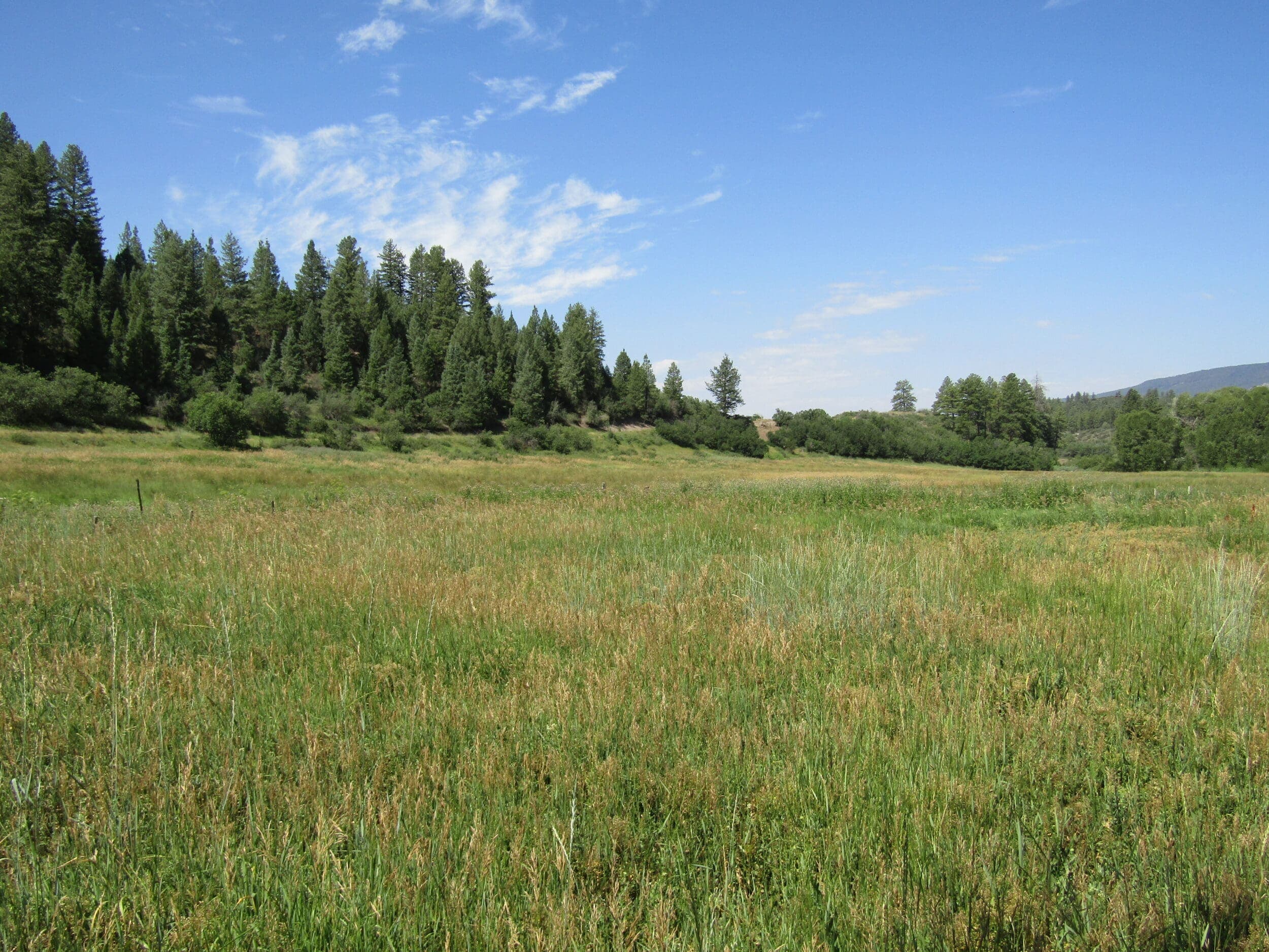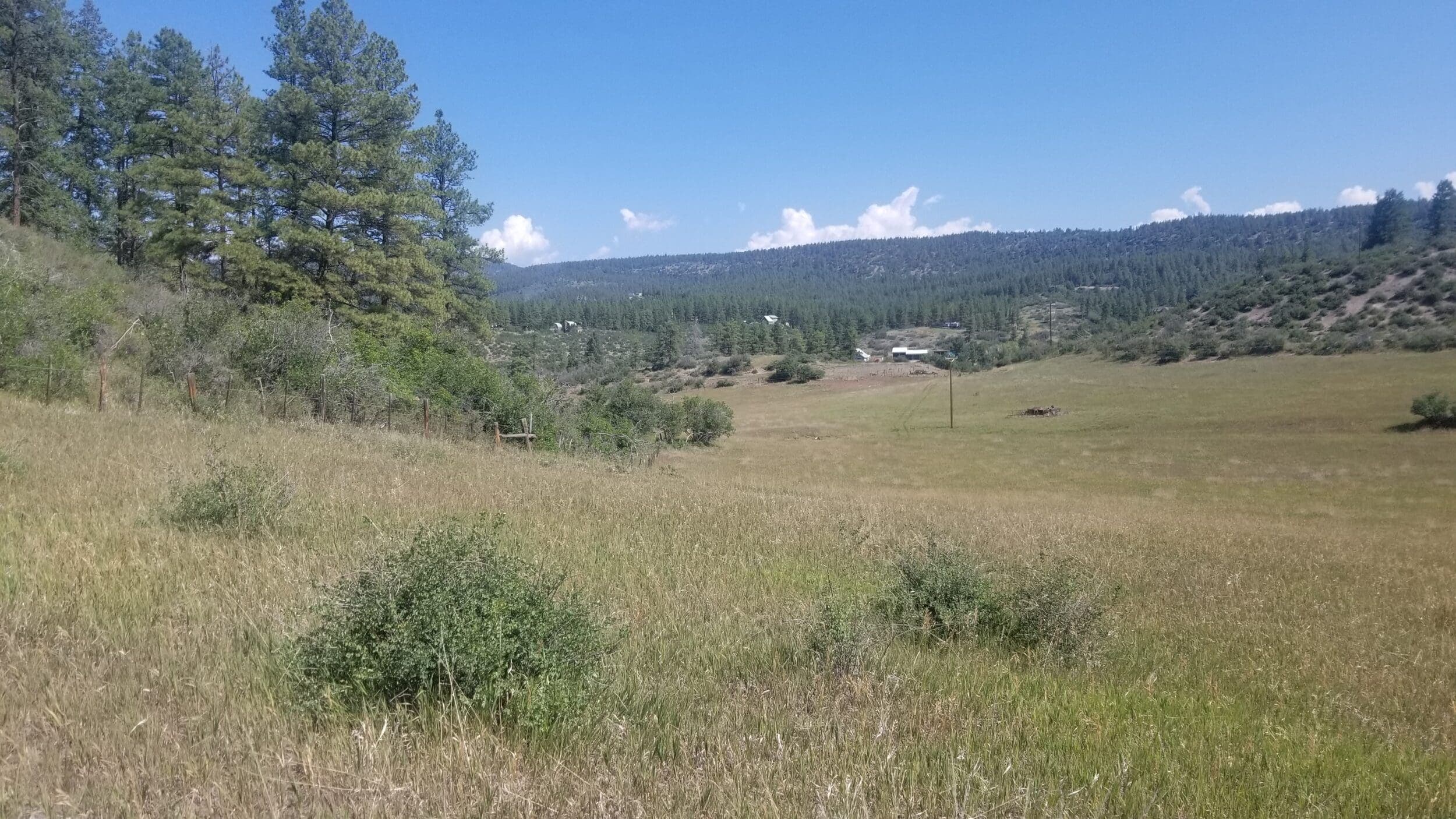 This is a rare opportunity to purchase such a large parcel just a few minutes west of Pagosa Springs. The Rusty Spur Ranch is a beautiful property that has a year around, tree lined creek, 14+- irrigated acres of grass hay and a good mix of mountain meadows and ridges covered with tall pines and oak brush. This is perfect for cattle or for an equestrian facility. The ranch has many beautiful and private sites to build your Dream Home . Land The Rusty Spur Ranch is approximately 94 acres that has not been on the market in over 50 years. This is a rare opportunity to find a property this size and yet so close to town and all the amenities Pagosa Springs has to offer. Access is from paved US HWY 160 and the ranch is very conveniently located only 4-1/2 miles west of Pagosa Springs. The ranch is your blank canvas waiting for you to create your own masterpiece. Rusty Spur Ranch would have many possible uses including a cattle ranch, equestrian facility or family retreat with numerous beautiful and private homesites to choose from . Due to the topography of the property with the ridge line running parallel to the highway, it allows to build your home on the backside of the ridge in order to have natural beauty, privacy and a quiet and peaceful setting. There is already a road roughed in to the back of the property with very gentle grades that makes for easy access to all of your ranch. For the wildlife enthusiast there is plenty of wildlife to enjoy, including deer, red fox, coyotes, rabbits, squirrels, hawks and much more. The beautiful ranch is comprised of a good mix of irrigated hay fields, grassy meadows, ridges covered with Ponderosa Pines and Gamble Oak with mature Cottonwoods along the creek. There is approximately 14 acres on the northern side of the ranch that is irrigated and used is used for hay production. The tenant that takes care of the property says harvests 2,000-2,700 bales a summer with one cutting. Along the northern end of the ranch is Stollsteimer Creek which is lined with towering Cottonwood Trees and meanders the length of the property and is a great asset to provide fresh water for your livestock and wildlife. The property is fully fenced and cross fenced and is ready for you to bring your animals and your toys. There are a few old sheds for storage and livestock that need some TLC.