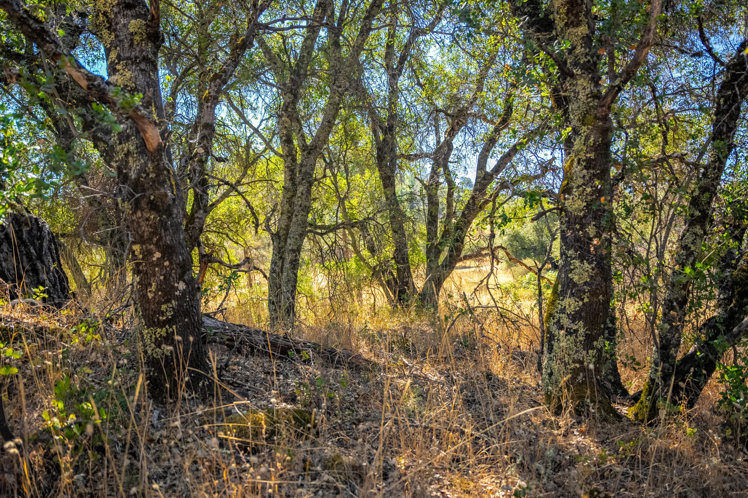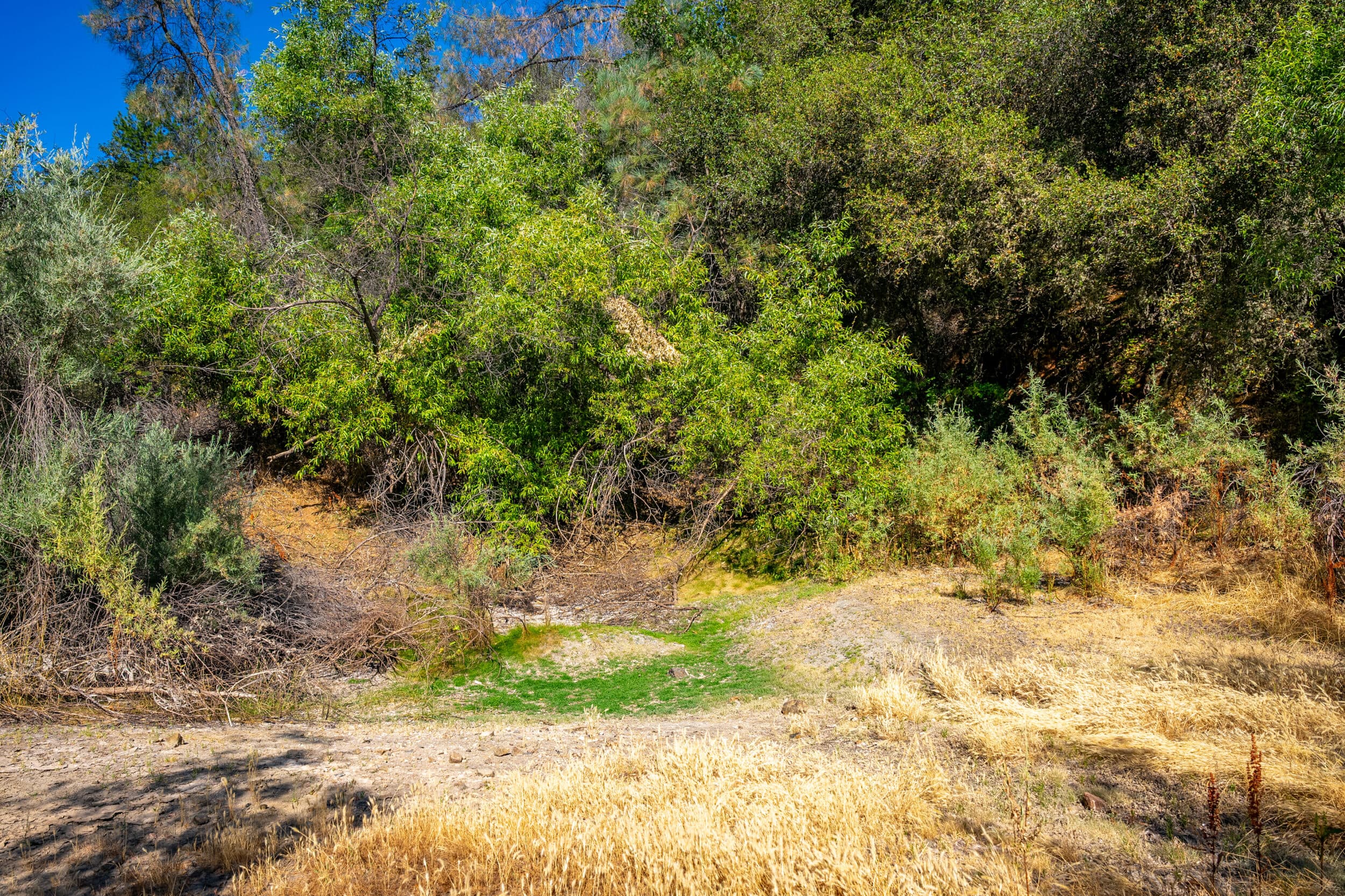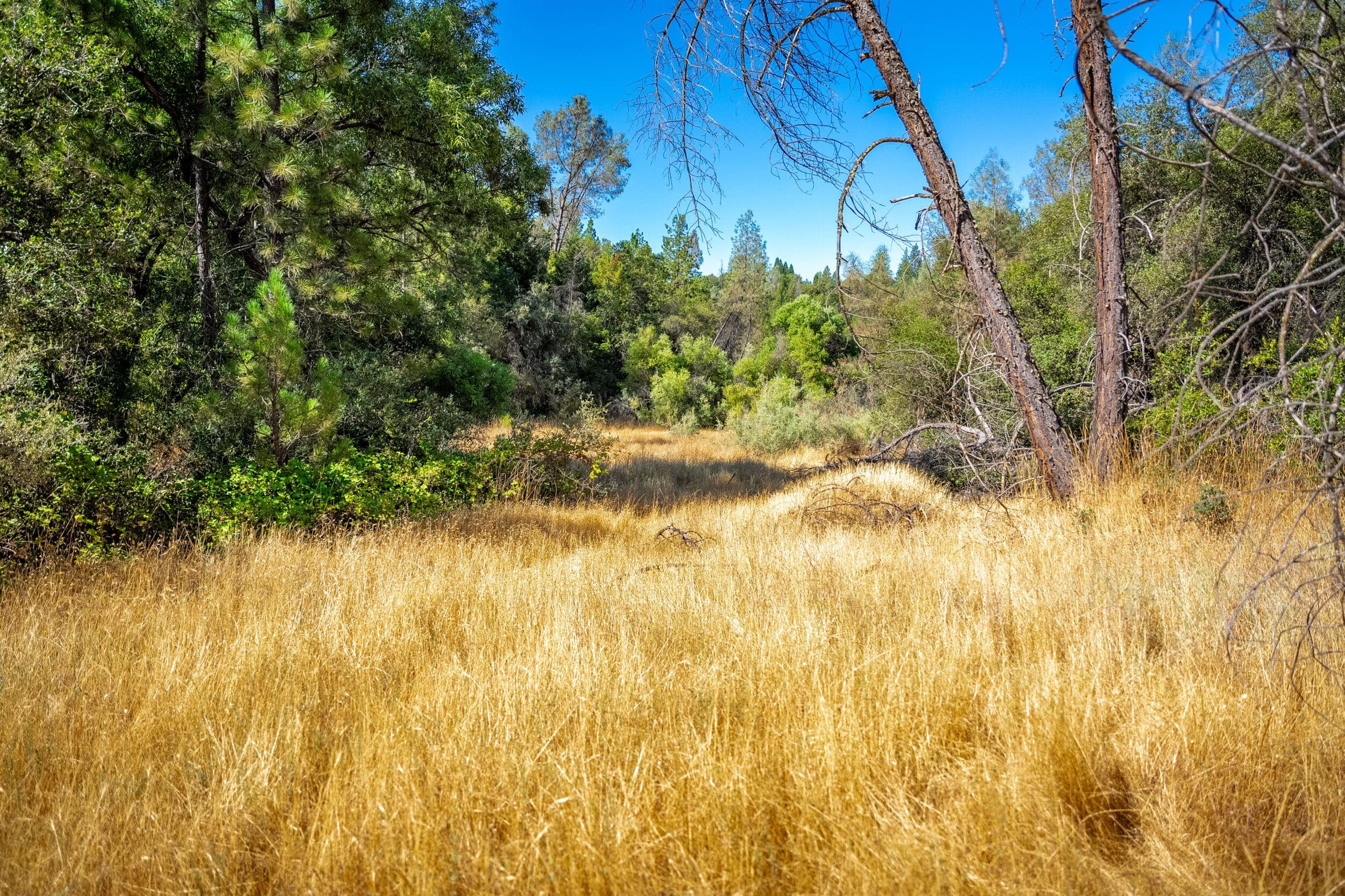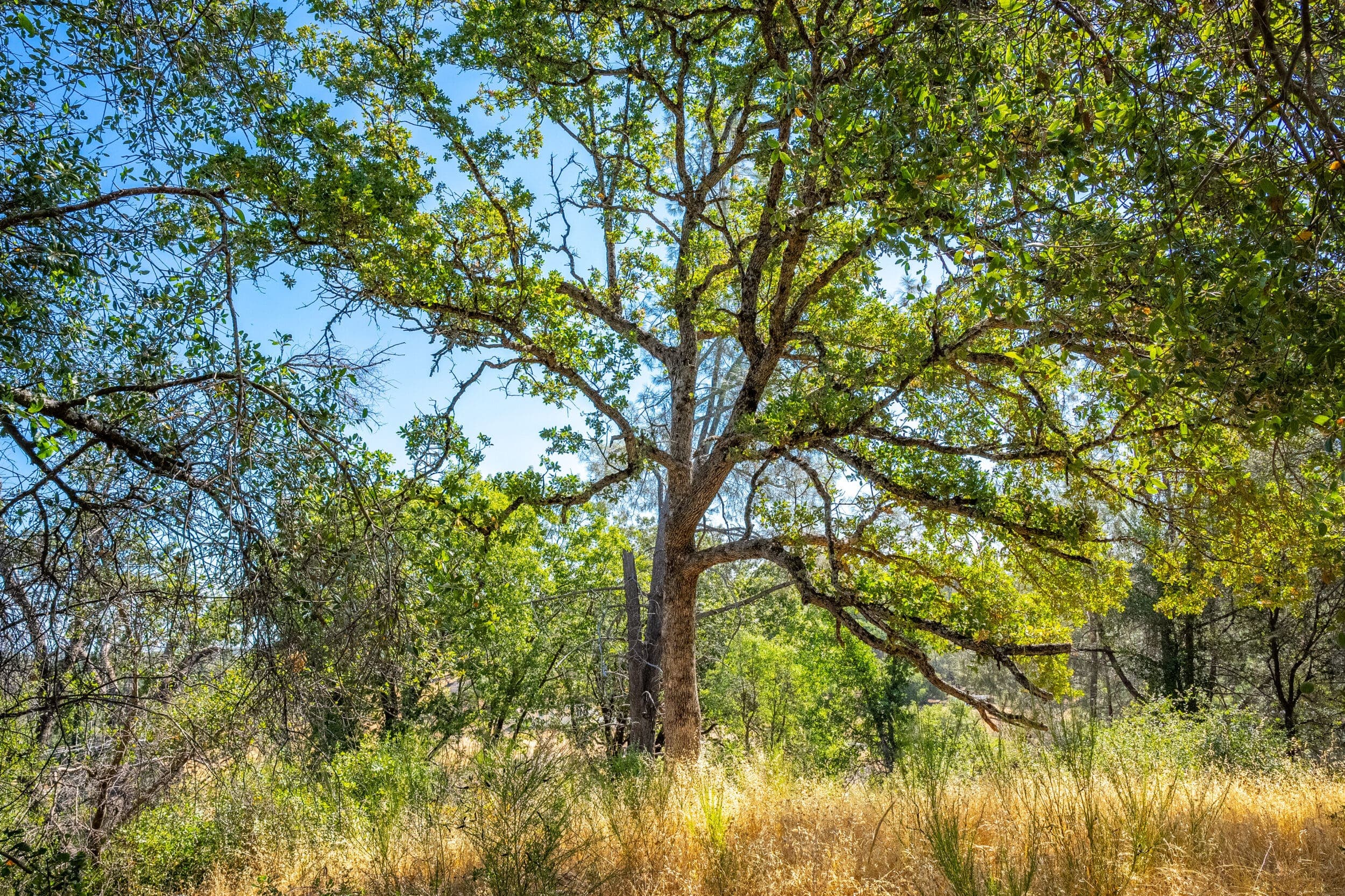 The land includes a mild to moderately sloped hill top, and gently sloped pasture areas with a rich variety of trees, shrubs, wildflowers, and grasses. Some of the tree species include Black Oak, Live Oak, Blue Pine, and Sugar Pine. Several springs and seasonal creeks occur on the property as well as a portion of the Georgetown Ditch. The former home site includes a garden with grape vines and several fruit and nut trees.