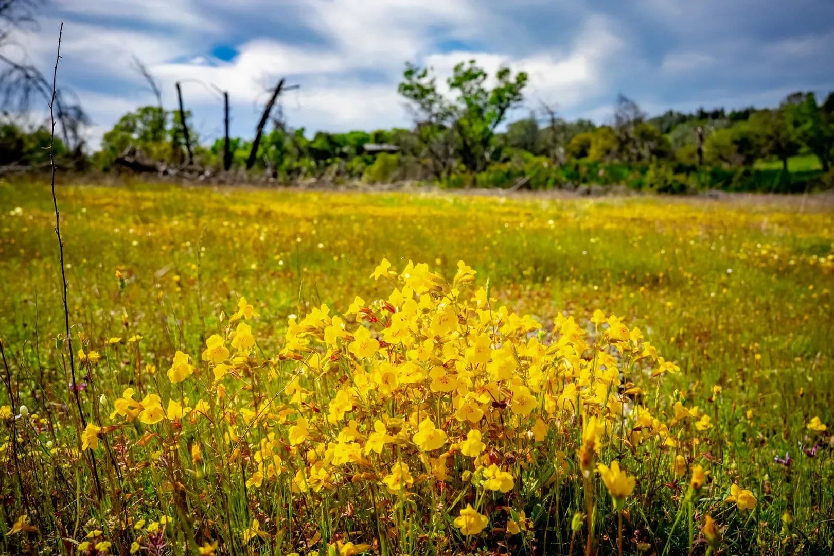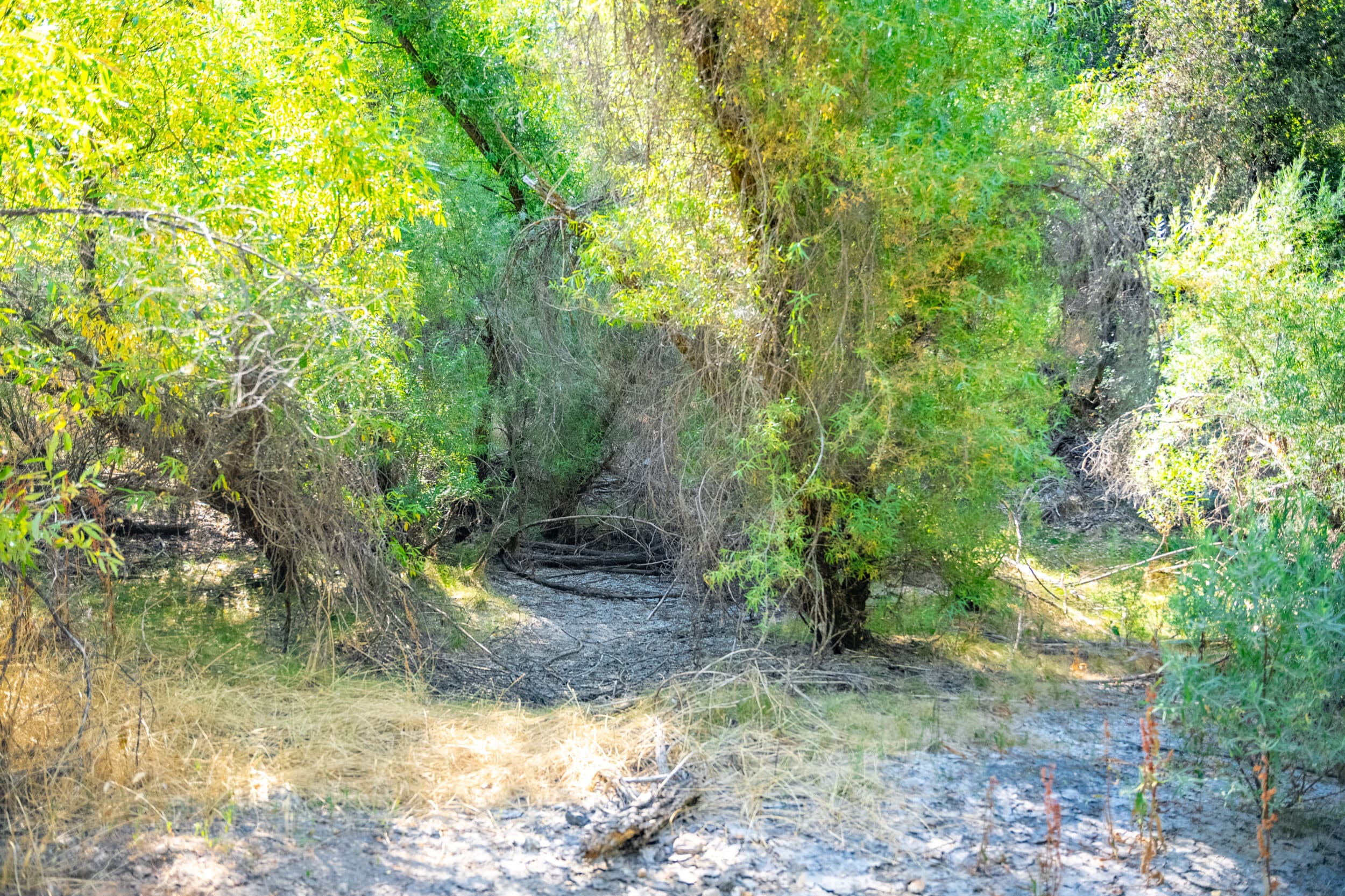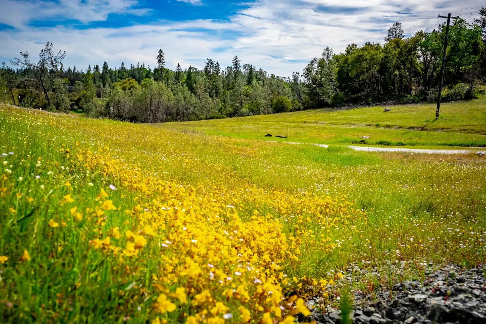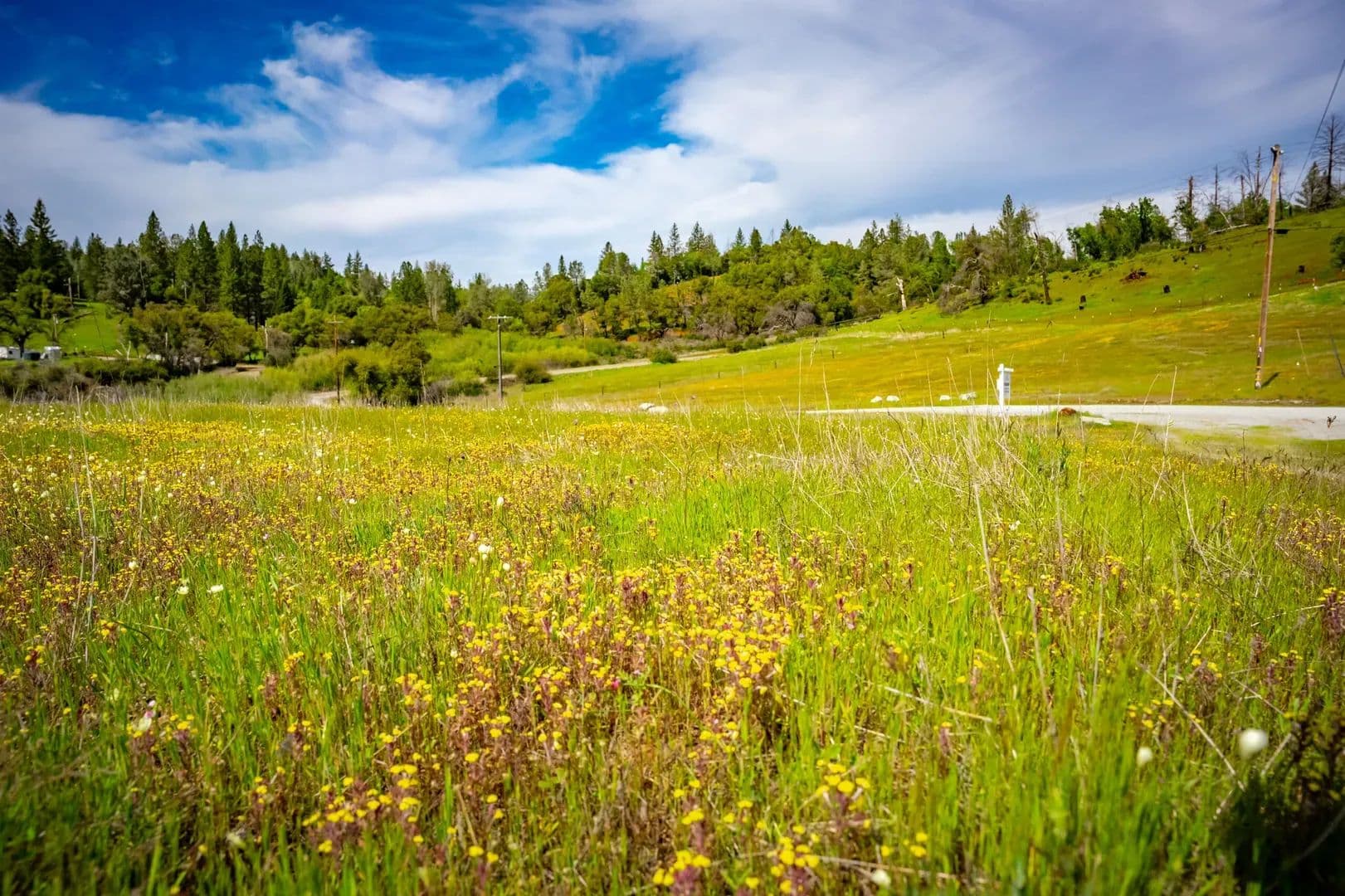 The land includes a mild to moderately sloped hill top, and gently sloped pasture areas with a rich variety of trees, shrubs, wildflowers, and grasses. Some of the tree species include Black Oak, Live Oak, Blue Pine, and Sugar Pine. Several springs and seasonal creeks occur on the property as well as a portion of the Georgetown Ditch. The former home site includes a garden with grape vines and several fruit and nut trees.