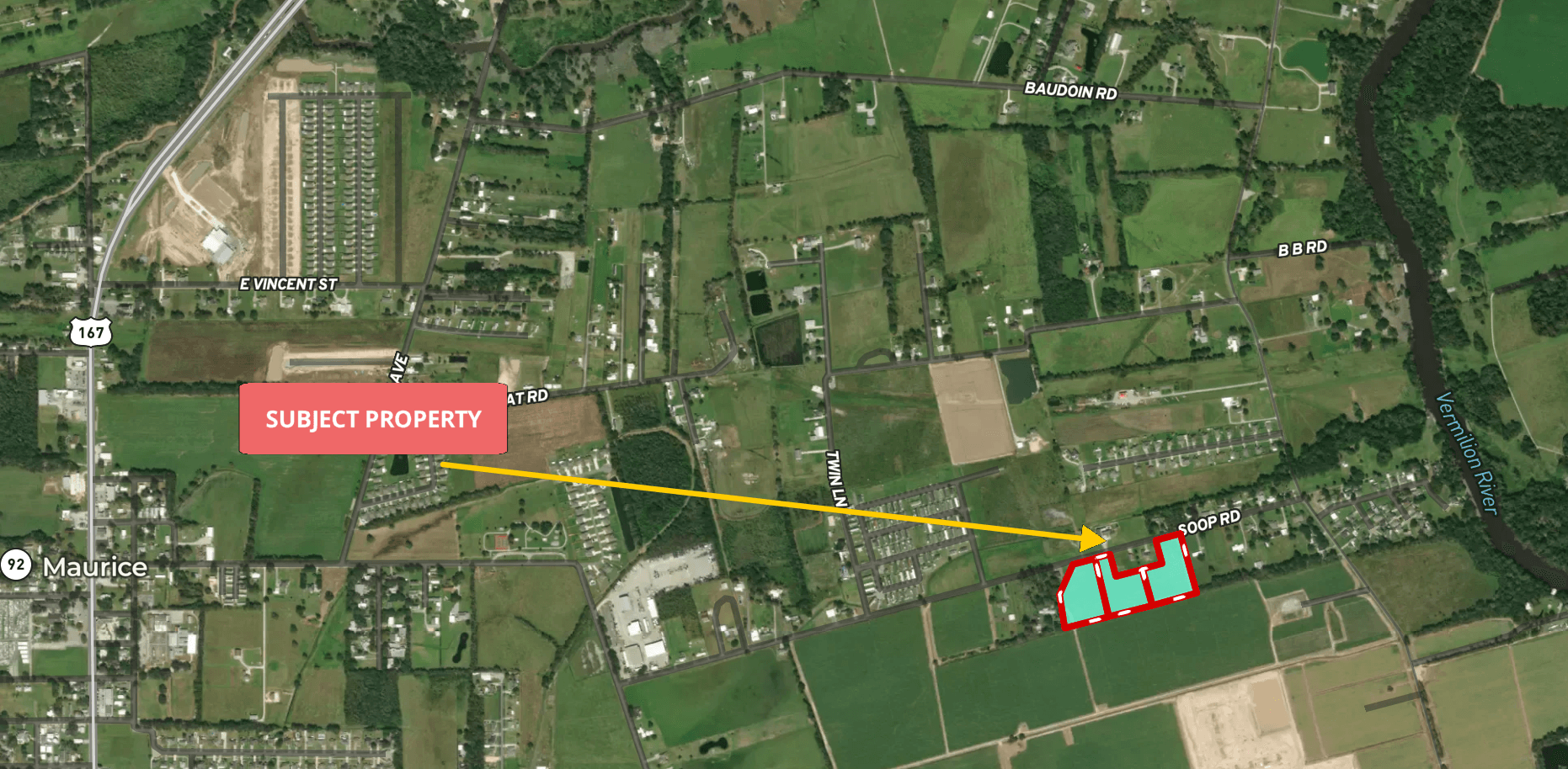 Nestled within the tranquil outskirts of Maurice, this 3.71-acre lot offers an ideal opportunity for building your dream home. Situated just a stone's throw away from Lafayette and Milton, yet enveloped in suburban serenity, this parcel of land provides the best of both worlds. Its close proximity to Lafayette and Abbeville ensures convenient access to urban amenities while preserving the peaceful ambiance of rural living. With ample space for a workshop or additional structures, the possibilities are limited only by your imagination. This pristine lot offers the ideal foundation for realizing your aspirations. Review restriction documents. Additional land available. All crops reserved.