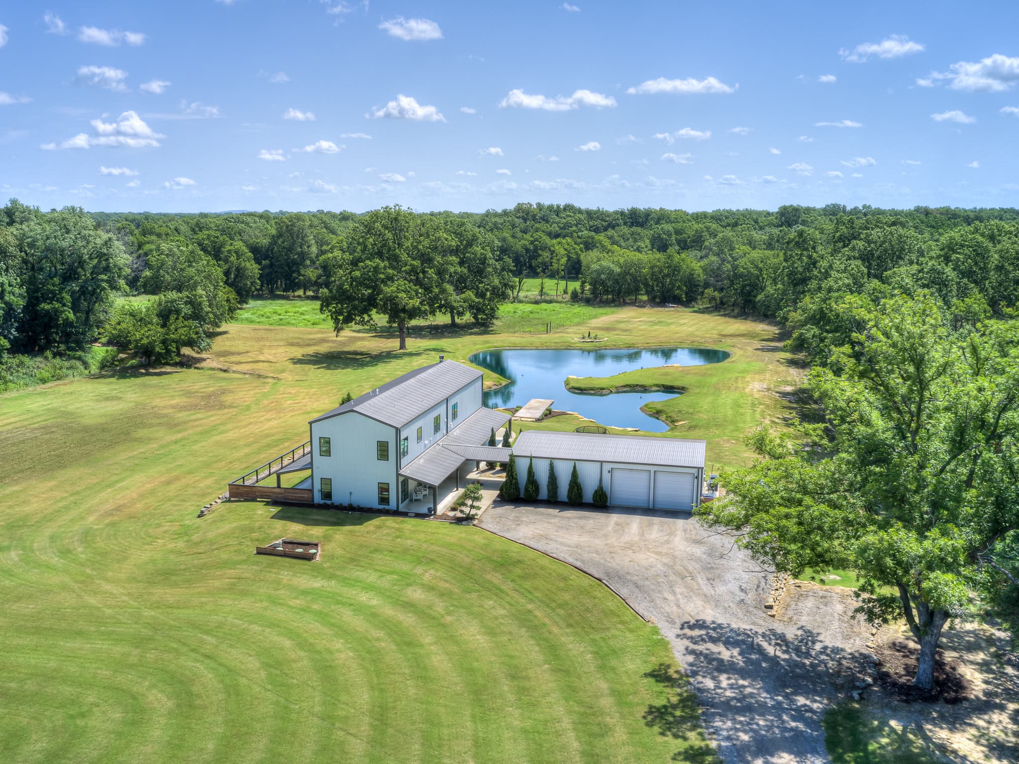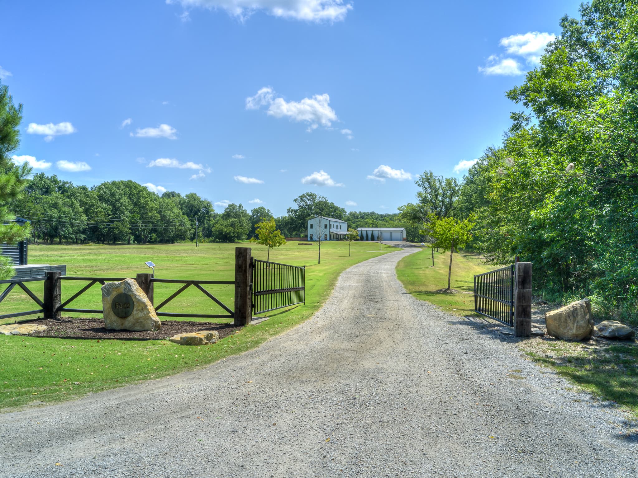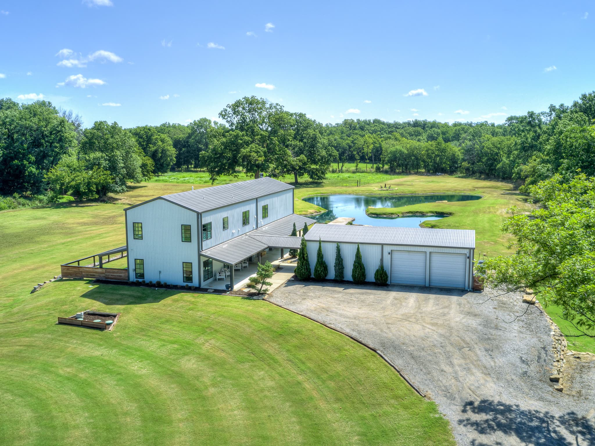 IMMACULATE 60 +/- ACRES IN BROKEN ARROW WITH LUXURIOUS BARNDOMINIUM, ½ ACRE STOCKED POND, 30’X50’ GARAGE, AND 64’X50’ BARN & WORKSHOP. Situated on 60 +/- acres of picturesque land in Broken Arrow’s countryside just minutes from Forest Ridge Country Club, this property perfectly combines modern living with rustic charm. This striking 3,576 square foot home offers 3 bedrooms, 3.5 bathrooms, covered front porch & back patio with fenced yard, a dock perfect for fishing the pond, and Adams Creek traversing through the property. The open-concept Great Room, with 20+ foot vaulted ceilings and expansive Windsor windows, provides a bright and airy living space. The kitchen is a chef’s dream, boasting an oversized eat-in island, and massive walk-in pantry. Numerous one-of-a-kind details and features can be seen throughout the house, including elegant custom concrete countertops in bathrooms and laundry room, luxurious built-in cabinets & shelves enhance the main hallway, laundry room, lofted game room, and master closet, and two HVAC systems equipped with a moisture-removal pump. For hobbies & projects, both the garage & barn have concrete floors, electric and water, spray foam insulation, and tons of storage. In addition to the flat, meticulously maintained 20 +/- acres surrounding the home, it has 40 +/- acres of mostly untouched timber that’s perfect for hunting and all other kinds of recreational fun. Its prime location offers quick access to major highways making commuting a breeze, as it’s only 4.5 miles to the Creek Turnpike, 5 miles to US-412, 6 miles to HWY 51, and 8 miles to the Muskogee Turnpike. Located less than 10 miles from Broken Arrow’s Rose District and Hillside shopping center, downtown Coweta, and Catoosa, and only 20 miles from Downtown Tulsa, this property ensures you can take full advantage of the culinary delights, boutique shopping, and cultural experiences this area has to offer. This one-of-a-kind property won’t last long, call today!