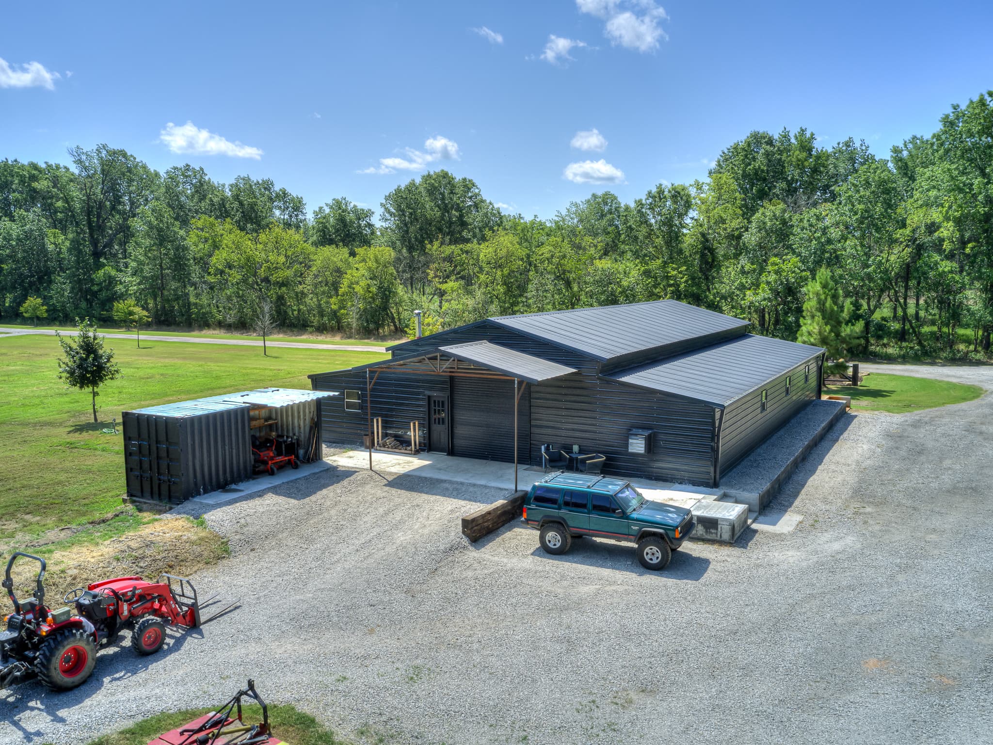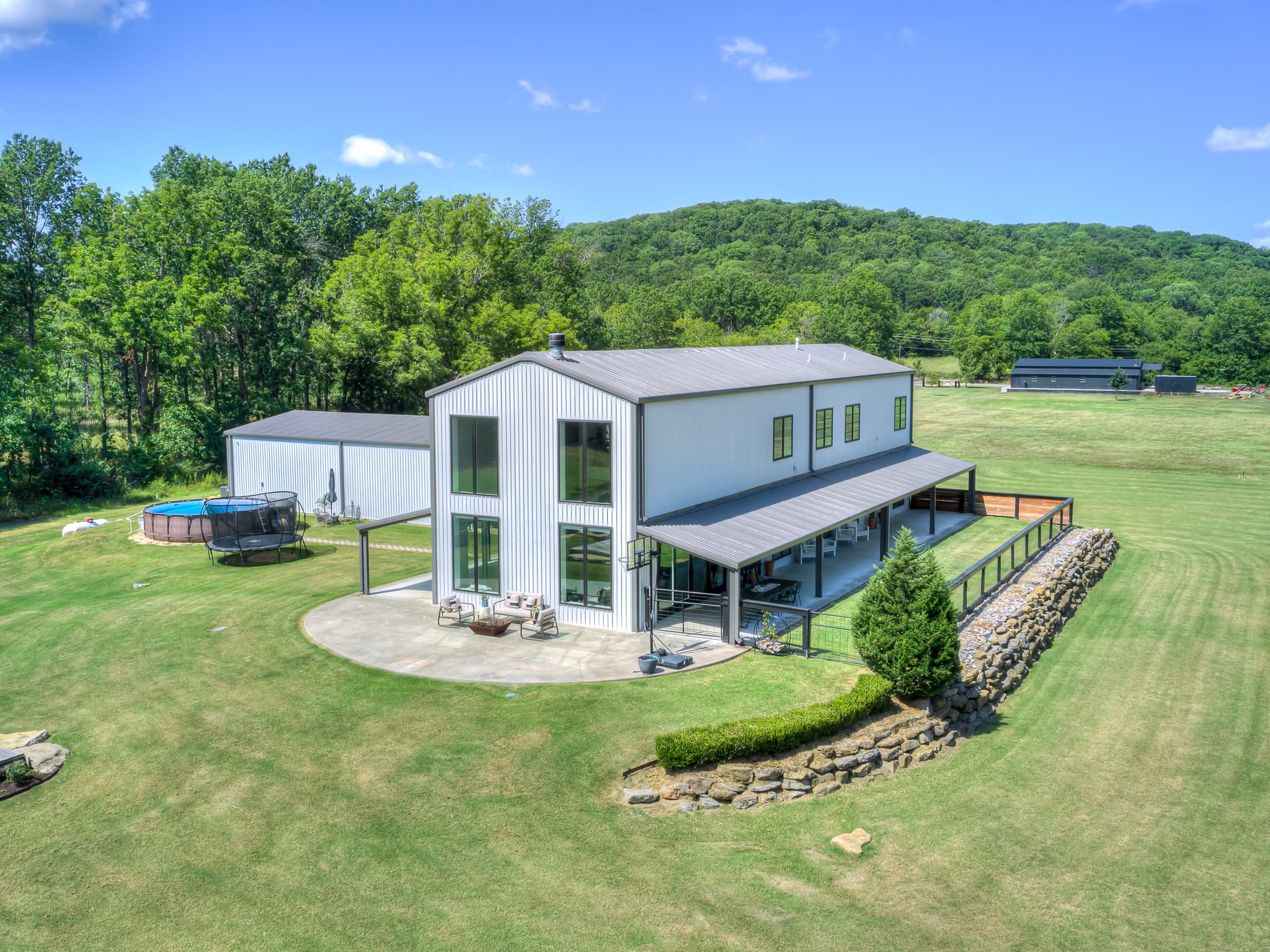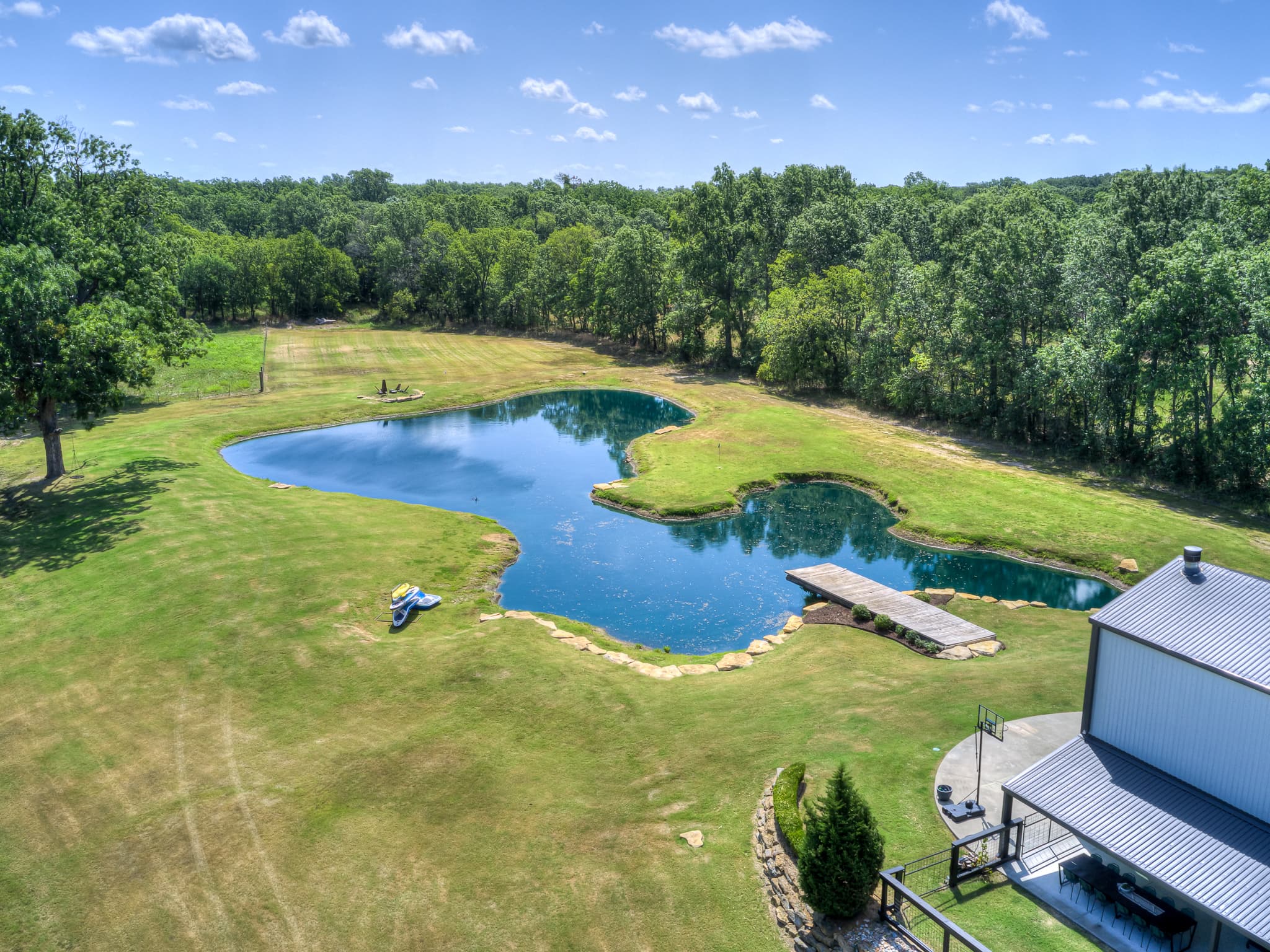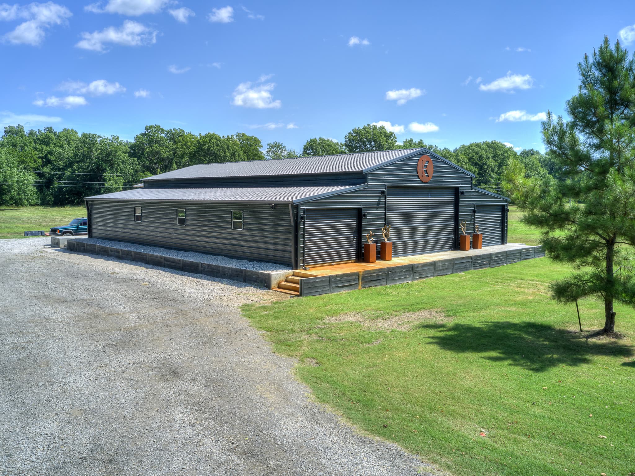 IMMACULATE 60 +/- ACRES IN BROKEN ARROW WITH LUXURIOUS BARNDOMINIUM, ½ ACRE STOCKED POND, 30’X50’ GARAGE, AND 64’X50’ BARN & WORKSHOP. Situated on 60 +/- acres of picturesque land in Broken Arrow’s countryside just minutes from Forest Ridge Country Club, this property perfectly combines modern living with rustic charm. This striking 3,576 square foot home offers 3 bedrooms, 3.5 bathrooms, covered front porch & back patio with fenced yard, a dock perfect for fishing the pond, and Adams Creek traversing through the property. The open-concept Great Room, with 20+ foot vaulted ceilings and expansive Windsor windows, provides a bright and airy living space. The kitchen is a chef’s dream, boasting an oversized eat-in island, and massive walk-in pantry. Numerous one-of-a-kind details and features can be seen throughout the house, including elegant custom concrete countertops in bathrooms and laundry room, luxurious built-in cabinets & shelves enhance the main hallway, laundry room, lofted game room, and master closet, and two HVAC systems equipped with a moisture-removal pump. For hobbies & projects, both the garage & barn have concrete floors, electric and water, spray foam insulation, and tons of storage. In addition to the flat, meticulously maintained 20 +/- acres surrounding the home, it has 40 +/- acres of mostly untouched timber that’s perfect for hunting and all other kinds of recreational fun. Its prime location offers quick access to major highways making commuting a breeze, as it’s only 4.5 miles to the Creek Turnpike, 5 miles to US-412, 6 miles to HWY 51, and 8 miles to the Muskogee Turnpike. Located less than 10 miles from Broken Arrow’s Rose District and Hillside shopping center, downtown Coweta, and Catoosa, and only 20 miles from Downtown Tulsa, this property ensures you can take full advantage of the culinary delights, boutique shopping, and cultural experiences this area has to offer. This one-of-a-kind property won’t last long, call today!