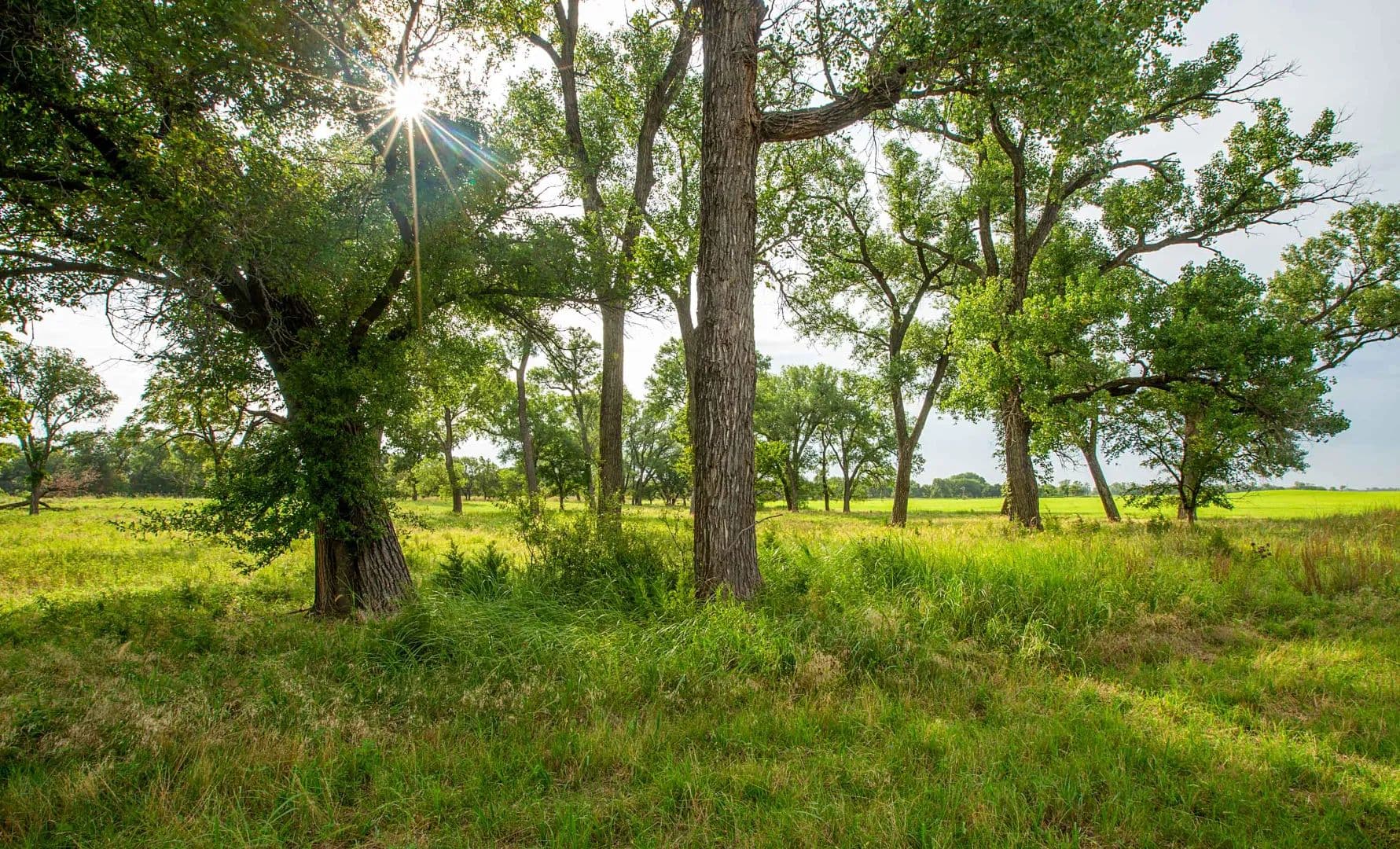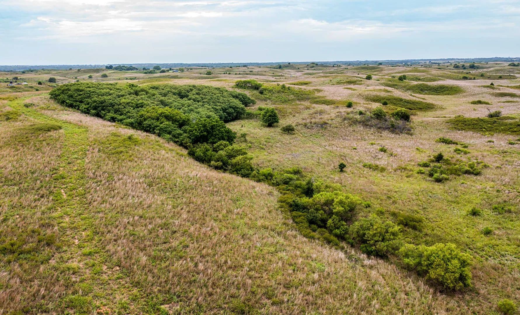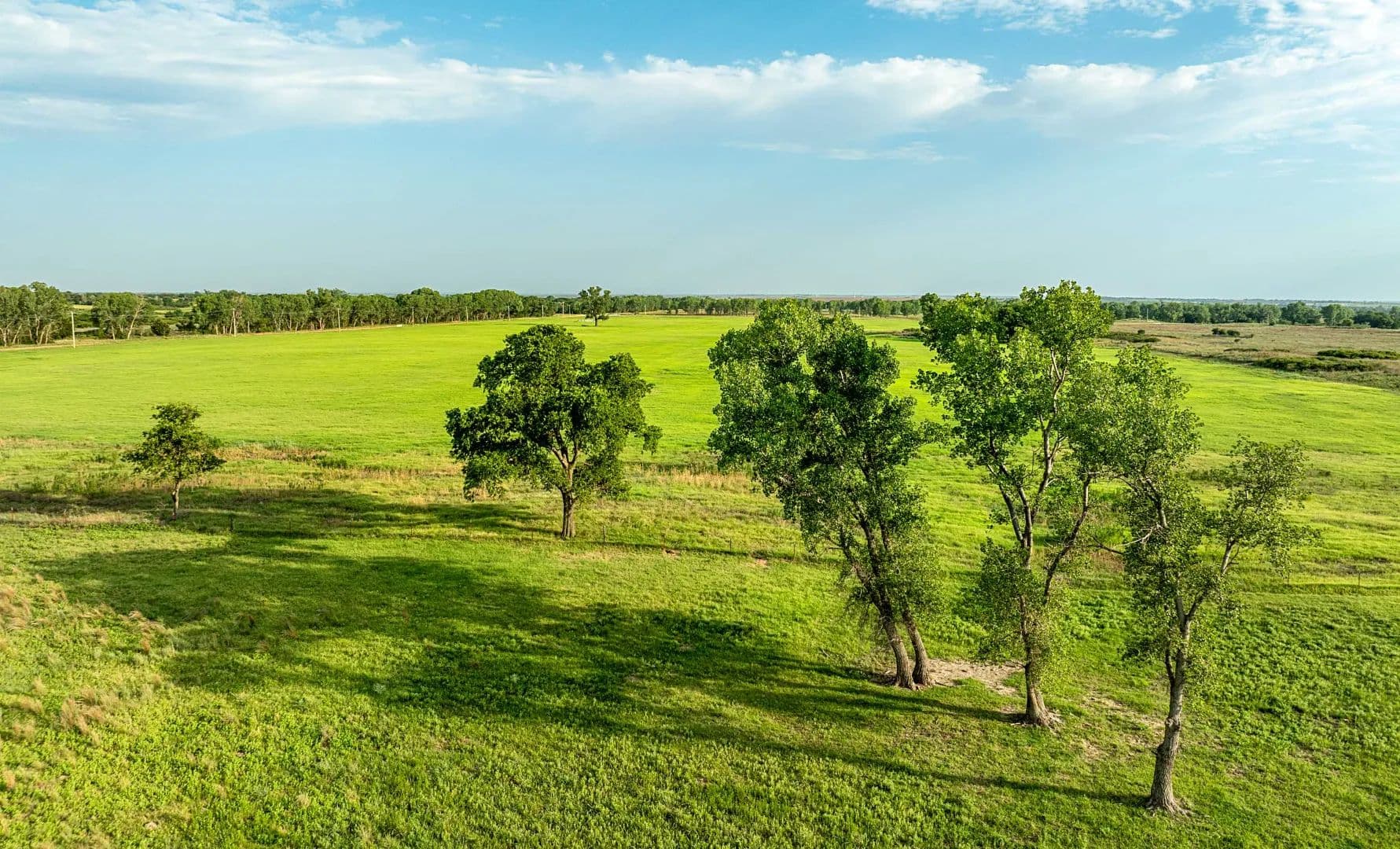 The topography and landscape vary throughout the property but is generally described as gently rolling and sometimes hummocky sand hills, descending to productive bottomlands, with some sub-irrigated creek bottoms. The majority of the ranch remains in native pasture with principal grasses being several varieties of bluestem, Indian grass, switchgrass, sand reed, eastern gamma grass, wild rye, and improved Bermuda grass fields. Scattered plum thickets are common. A variety of trees throughout the ranch include several varieties of oak, elm, ash, hackberry, mulberry, chinaberry, some cedar, and a small amount of salt cedar adjacent to the river.