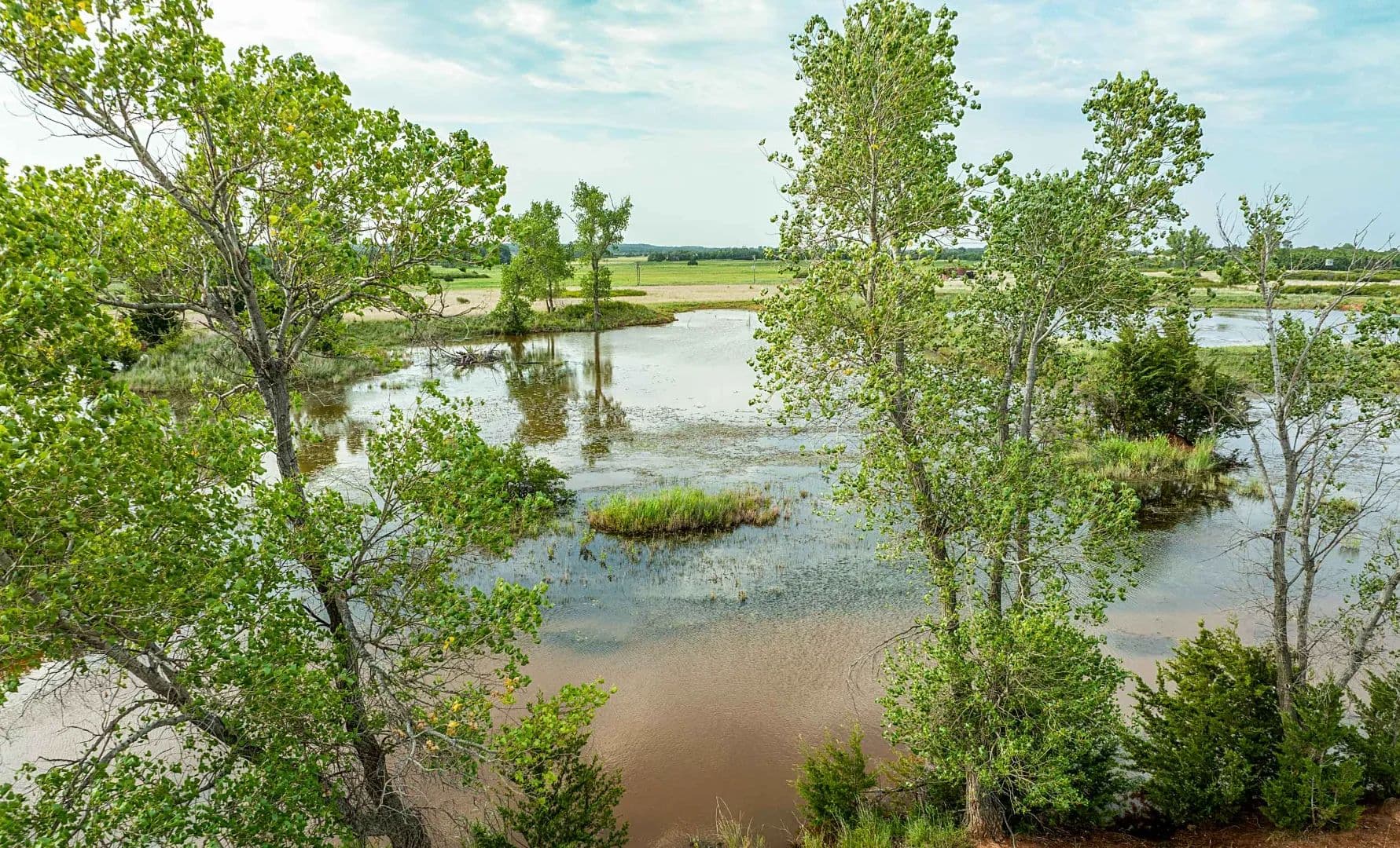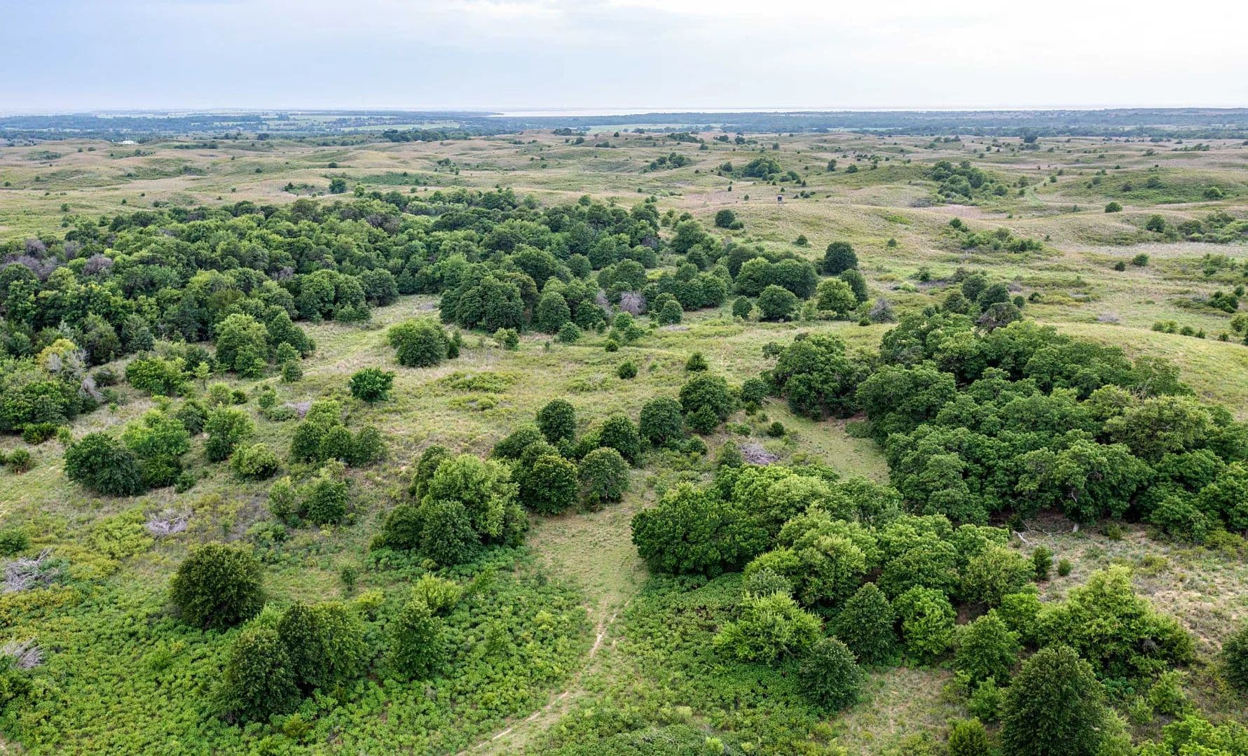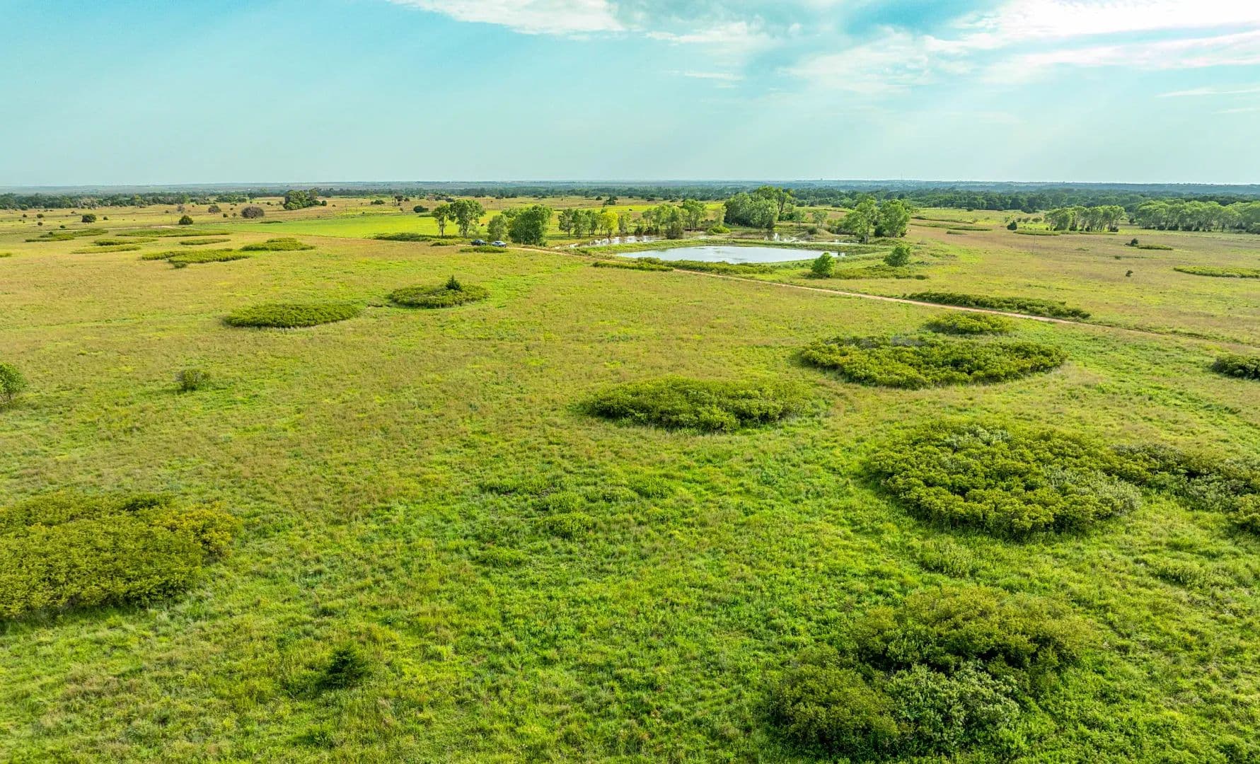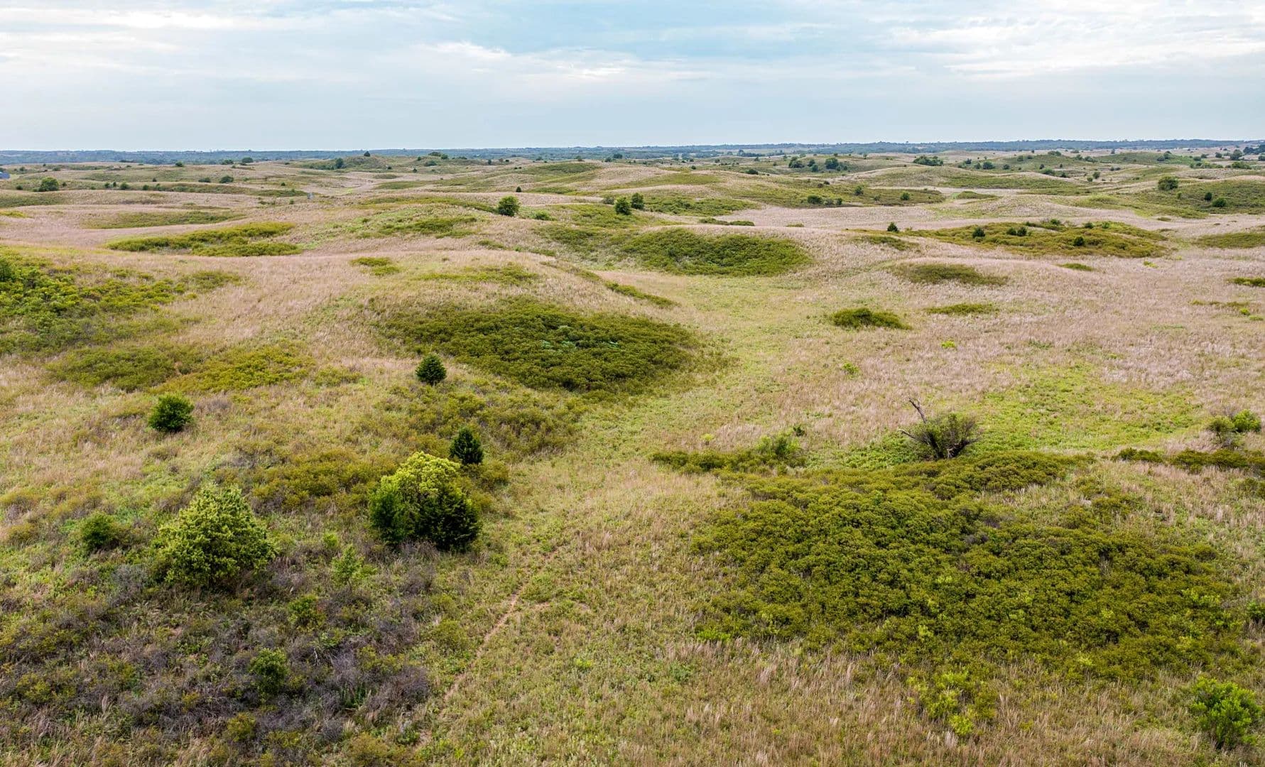 The topography and landscape vary throughout the property but is generally described as gently rolling and sometimes hummocky sand hills, descending to productive bottomlands, with some sub-irrigated creek bottoms. The majority of the ranch remains in native pasture with principal grasses being several varieties of bluestem, Indian grass, switchgrass, sand reed, eastern gamma grass, wild rye, and improved Bermuda grass fields. Scattered plum thickets are common. A variety of trees throughout the ranch include several varieties of oak, elm, ash, hackberry, mulberry, chinaberry, some cedar, and a small amount of salt cedar adjacent to the river.