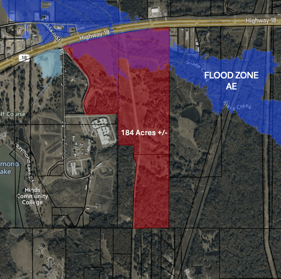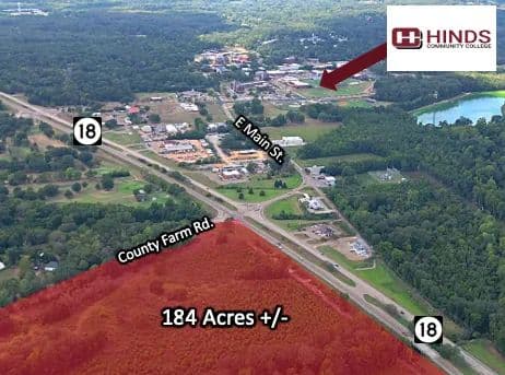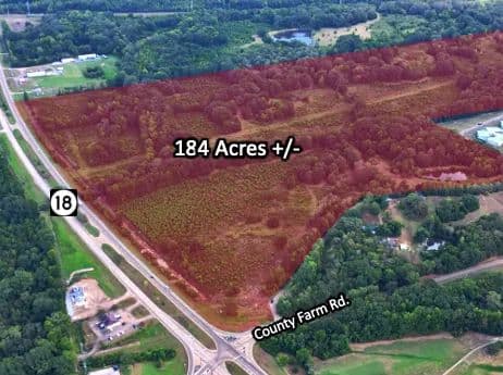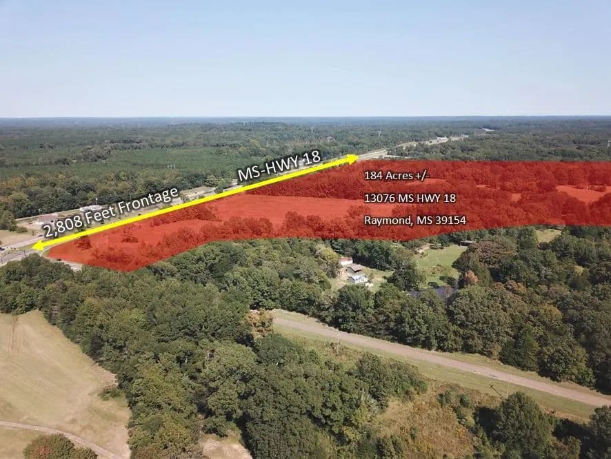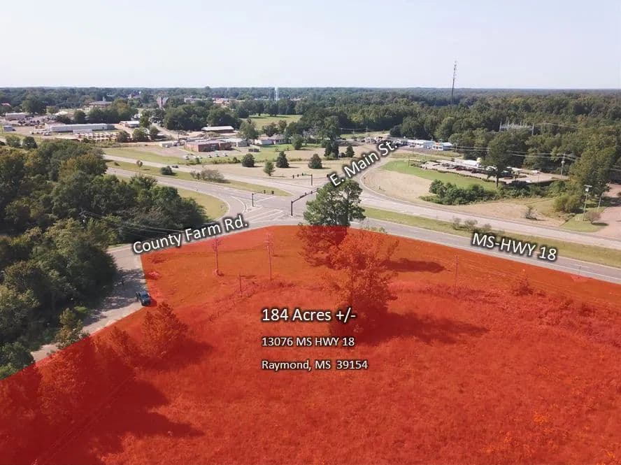 This 184 Acre site with signalized hard corner is located at the intersection of Country Farm Rd. and MS-Hwy 18. Property sits at the formal entry way to the Town of Raymond and the Gates of Hinds Community College. Frontage includes 0.5 miles on MS-18 and the property's rectangular shape & advantageous position make it an ideal site for future development.
