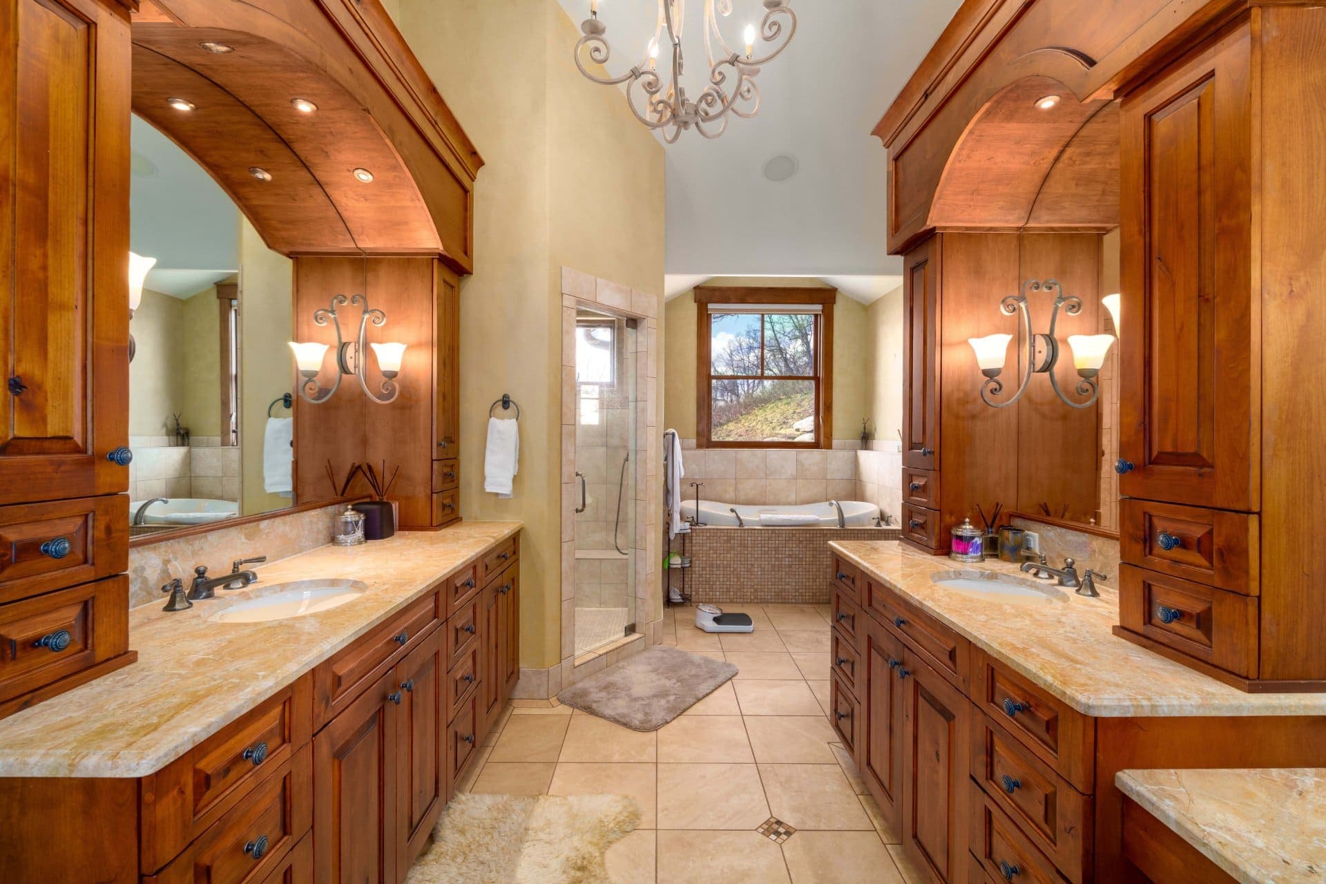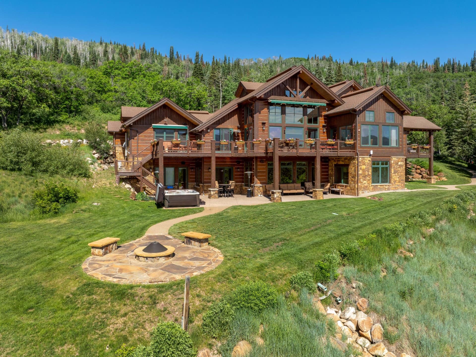 The main-level private primary suite includes a sitting area with a fireplace, a private deck for morning coffee, his and her vanities, walk-in closets, and a spa-like bathroom with a steam shower and jetted tub. Downstairs offers three en-suite bedrooms and an expansive family room with a bar area, pool table, card table, and a large rock fireplace. Downstairs opens to the outside for easy access to the manicured lawns, hot tub, and custom gas firepit. Upstairs includes two en-suite bedrooms connected by a relaxed living area with a rock fireplace and TV. This professionally furnished home includes an oversized three-car garage and downstairs gym area with large built-in cabinetry for all your recreation gear storage needs. Laundry rooms are located on the main and lower levels. The 8.5± acres have end-of-the-road privacy and a professionally manicured landscape, including several wildlife sculptures. Only minutes from town, Sweetwater Estate at Agate Creek Preserve is the perfect canvas for Steamboat Springs’ mountain living.