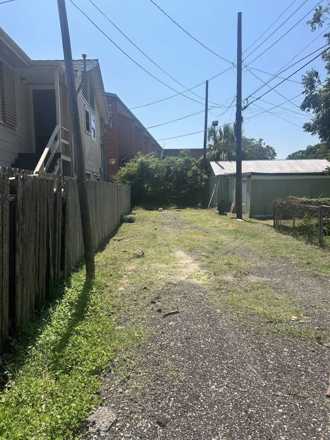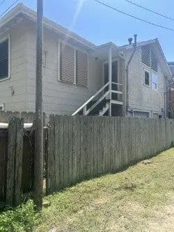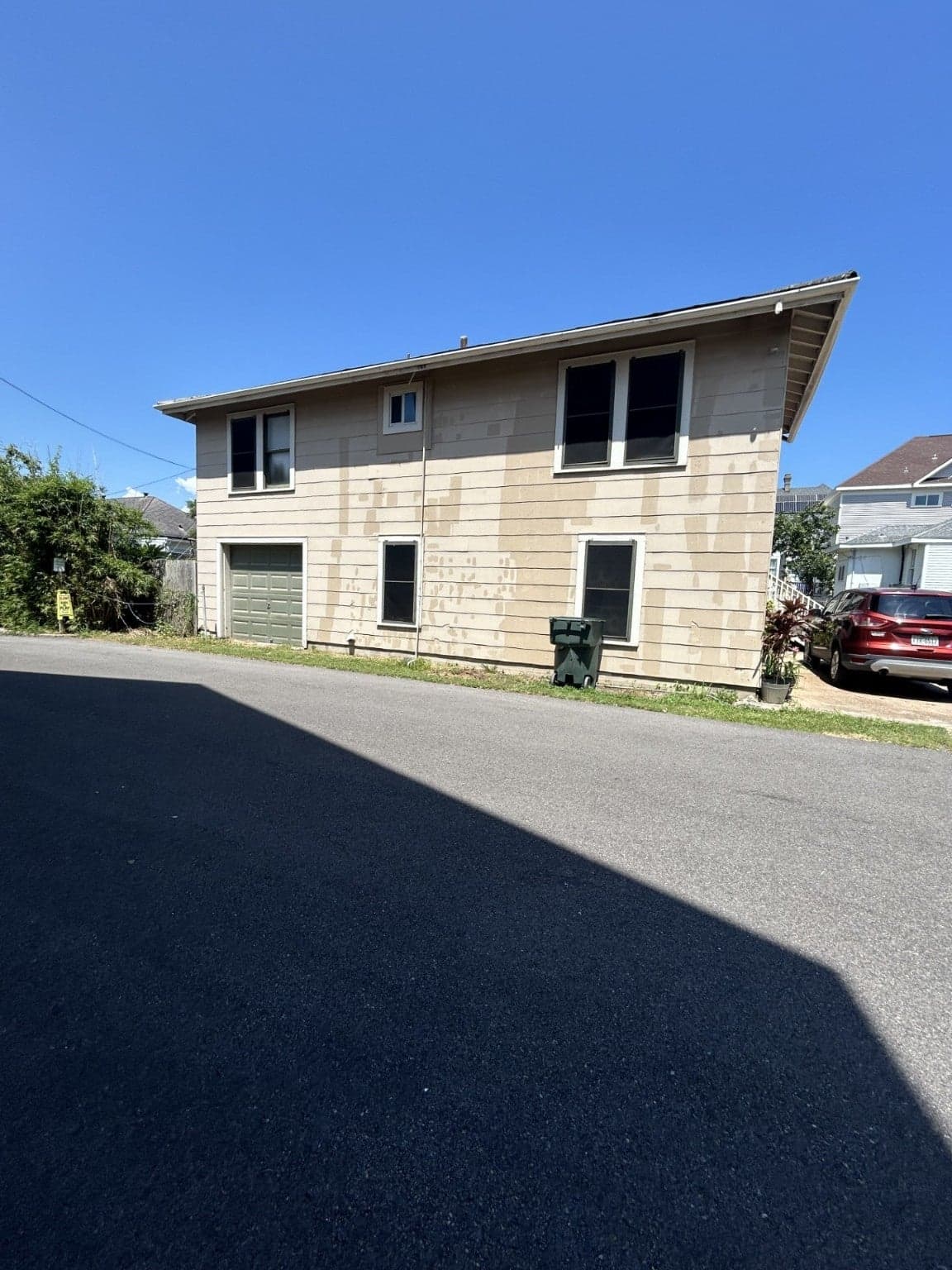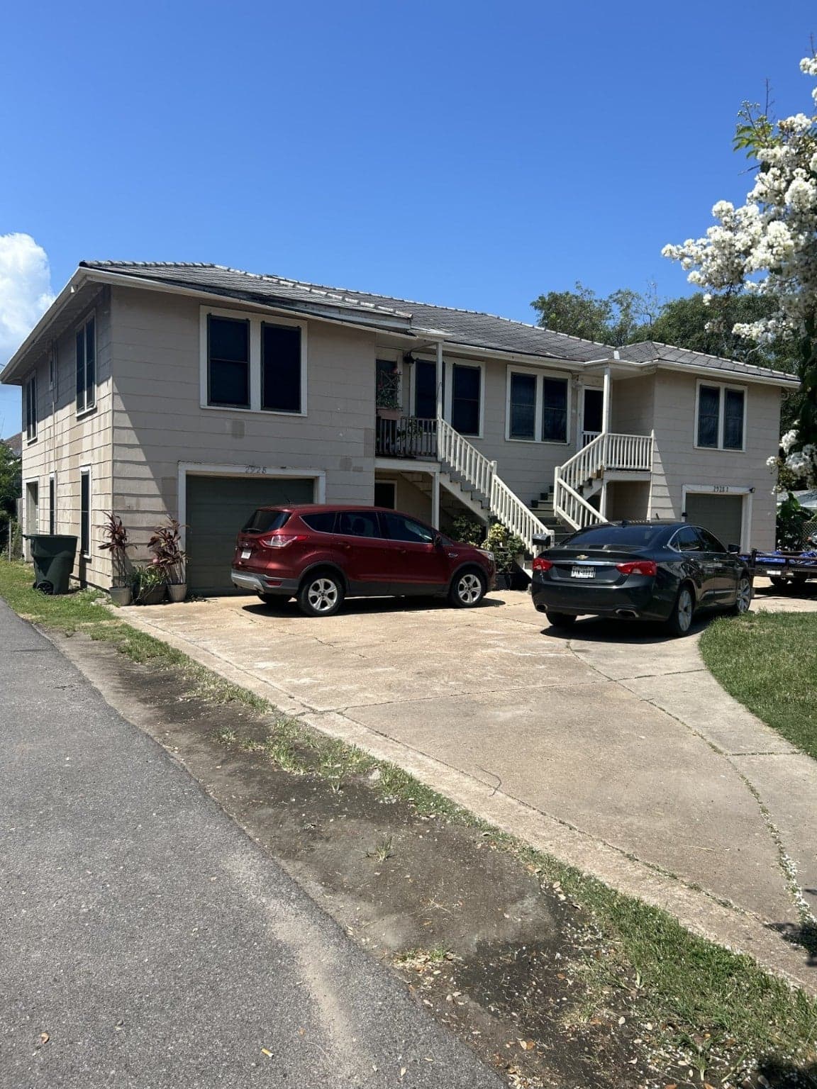 Unusually large lot (9030 square feet) with a duplex along the rear property line. The duplex has two large two bedroom, one bath units with garages below. The significance of the property is the large lot.