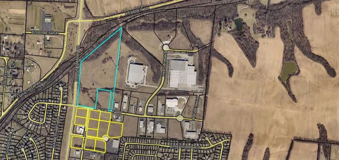 Discover a remarkable opportunity with this expansive 22.98-acre parcel, strategically located near a bustling Kroger shopping center and surrounded by popular establishments such as Dollar General, KFC, Advanced Auto, Goodwill, and Taco Bell. This prime real estate sits along a heavily traveled bypass road, providing exceptional visibility and accessibility between Eminence and Shelbyville.