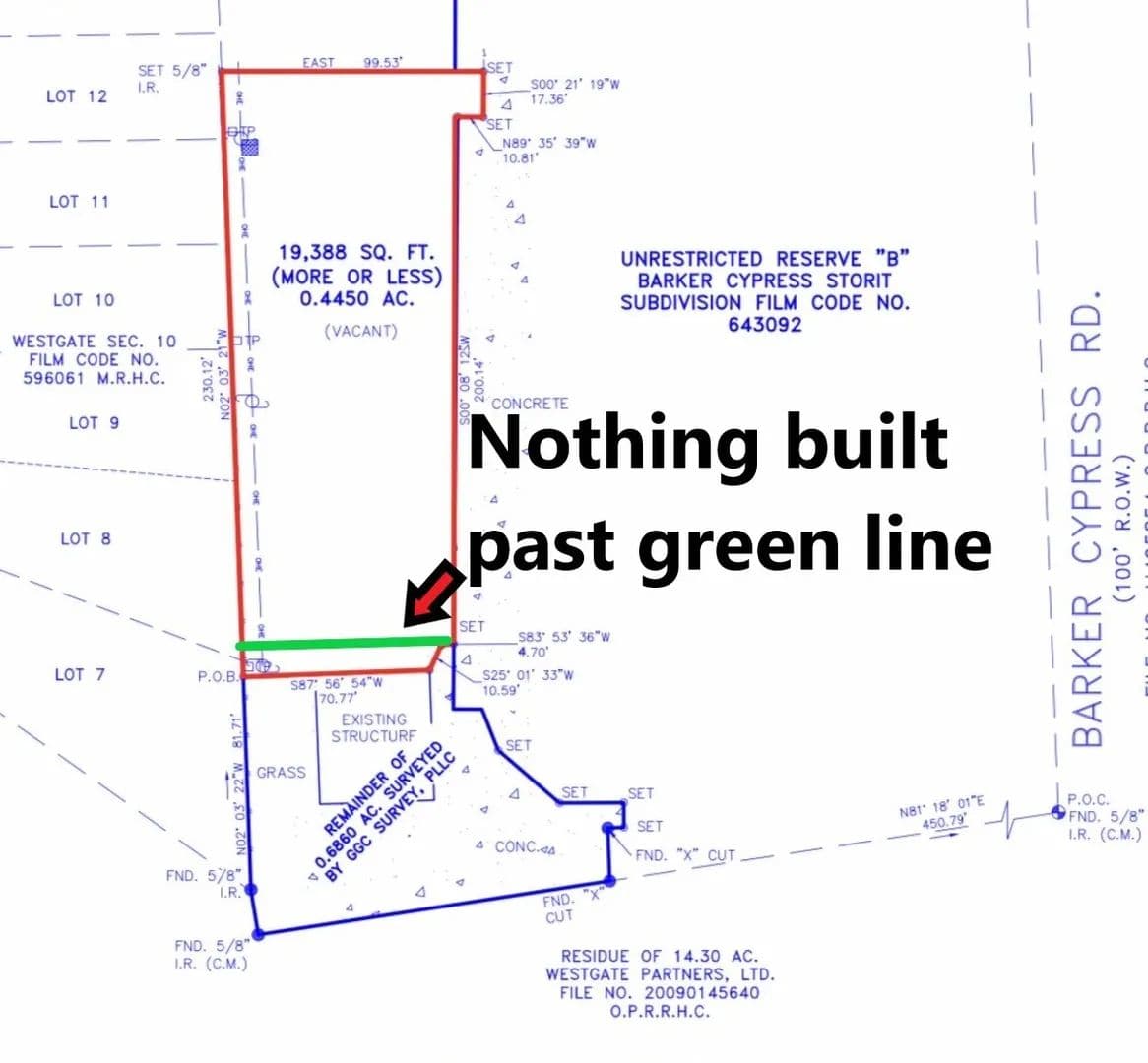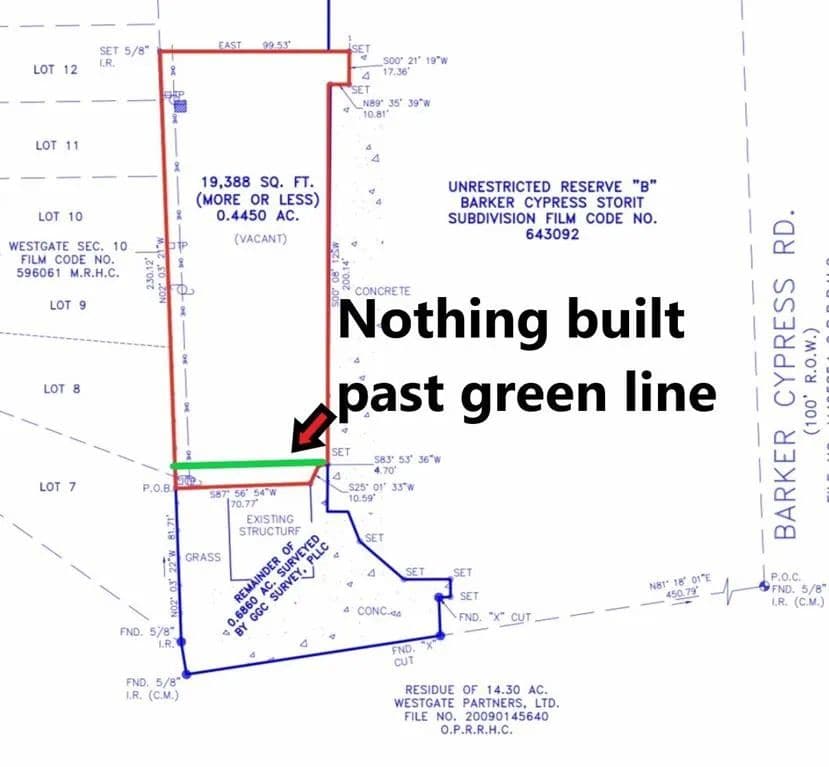 Prime Land for Sale in Cypress, TX - 19,388+/- SF on Barker Cypress This 19,388+/- square foot property is perfectly positioned behind a bustling retail center in Cypress, TX, offering high visibility and traffic. All utilities are available at the property, making it ideal for immediate development. The land backs up to a residential neighborhood, creating a versatile opportunity for office, industrial, or mixed-use developments. Key Features: - Location: Barker Cypress, Cypress, TX - Size: 19,388+/- SF of land - Utilities: All utilities available at the property - Proximity: Behind a busy retail center and adjacent to a residential neighborhood - Ideal Uses: Office, industrial, or mixed-use development Take advantage of this prime real estate opportunity with flexible options to suit your needs! Contact us today for more details.