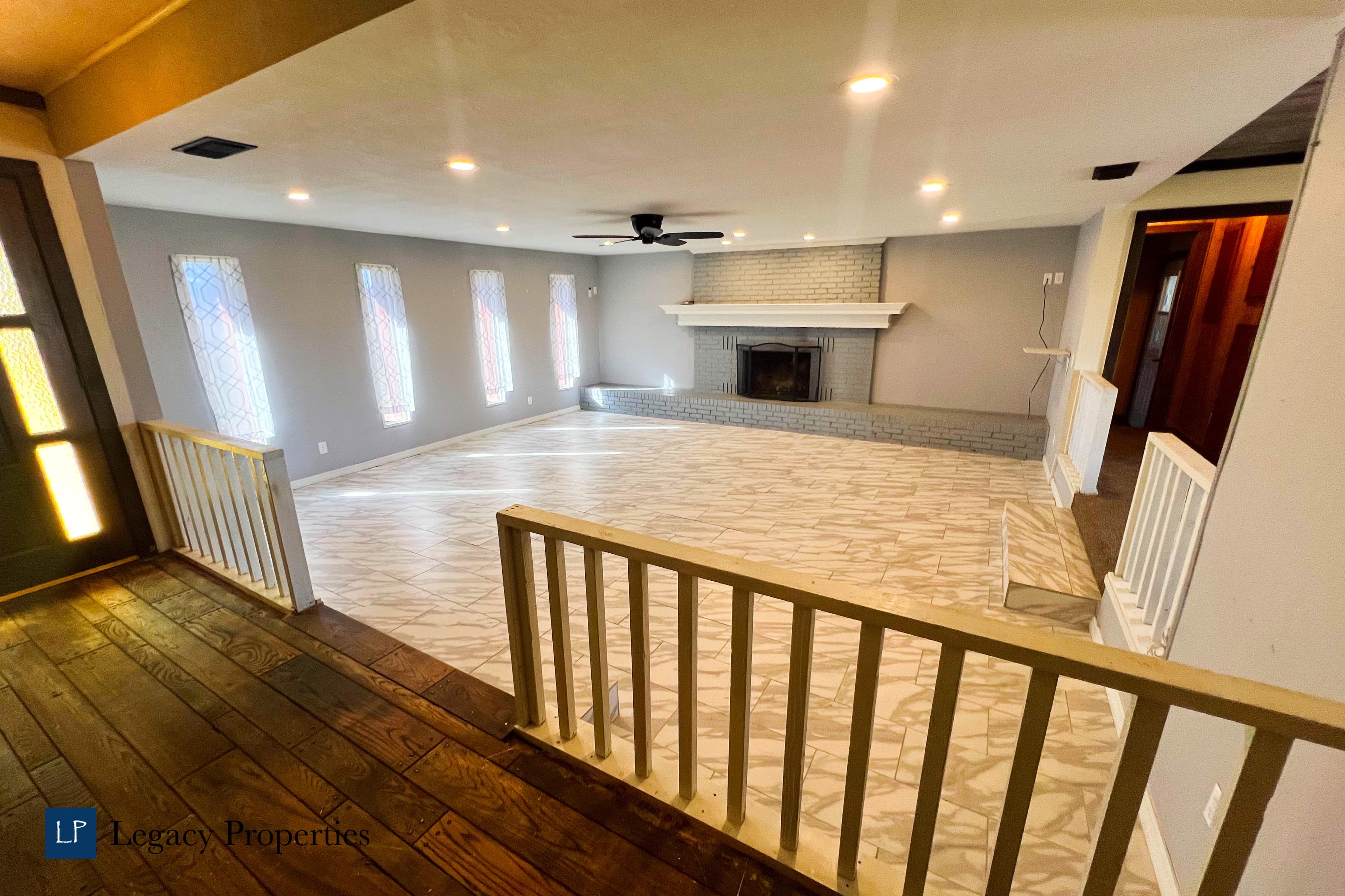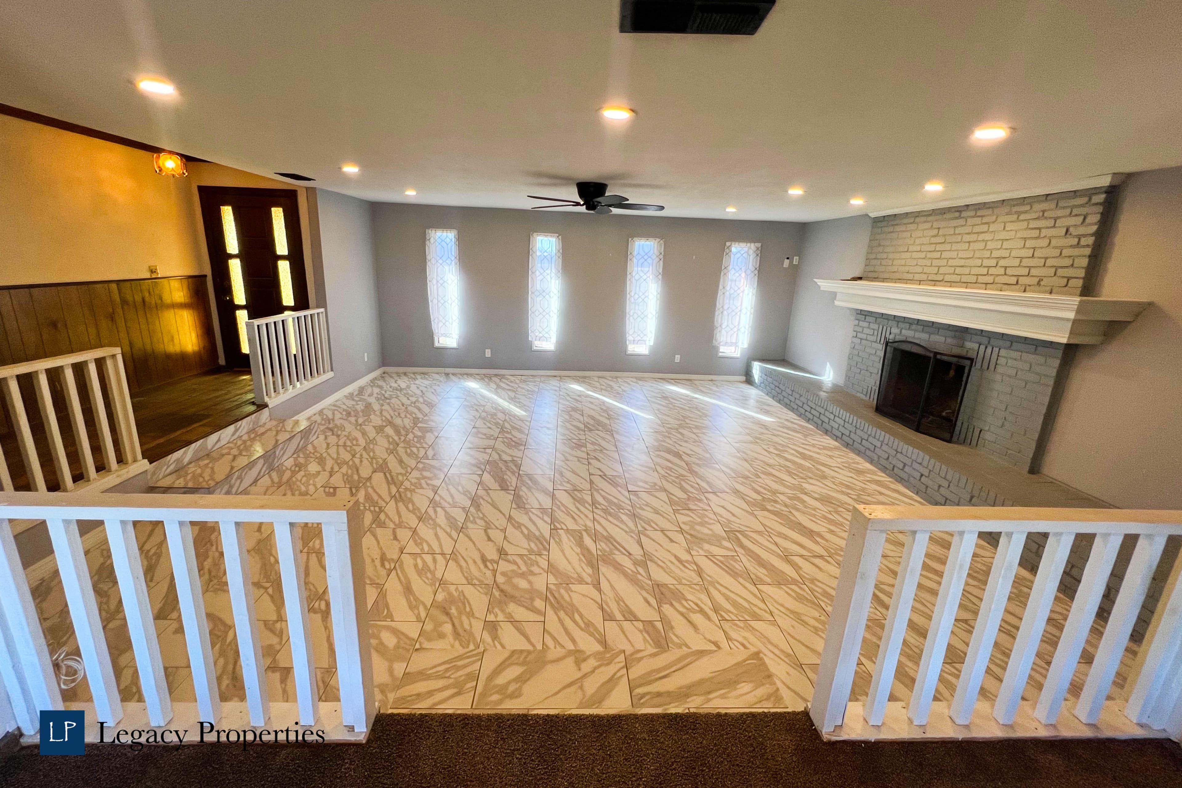 The home has 2,673 sq ft of living space (per the appraisal district), plus a finished basement. There are three bedrooms, each with its own ensuite full bathroom. Two living rooms, both with wood burning fireplaces, provide plenty of room to sprawl out. The smaller of the two has built-in bookshelves, new carpet and is connected to the kitchen, which has a large island and pantry; all appliances will convey, which includes a double oven, dishwasher and built-in grill with vent. The house has city water, septic system, CH/A system and two water heaters.