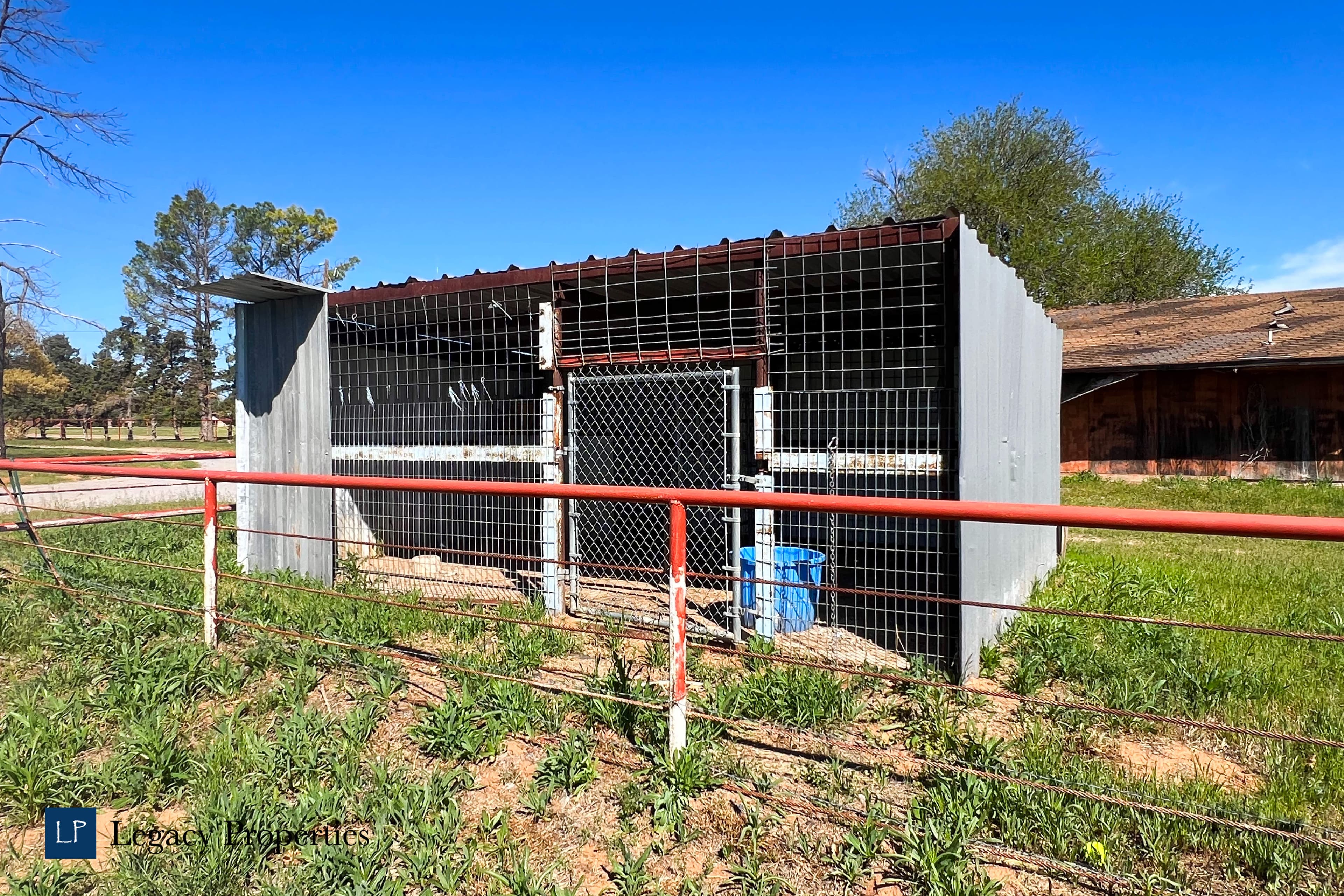 Behind the home is a 0.4 acre fenced horse pen with loafing shed. A covered dog kennel is beside the pen. A small dirt floor pipe barn with metal siding has an attached pen and loafing shed. The grazing pasture in back is approximately 3.6 acres.