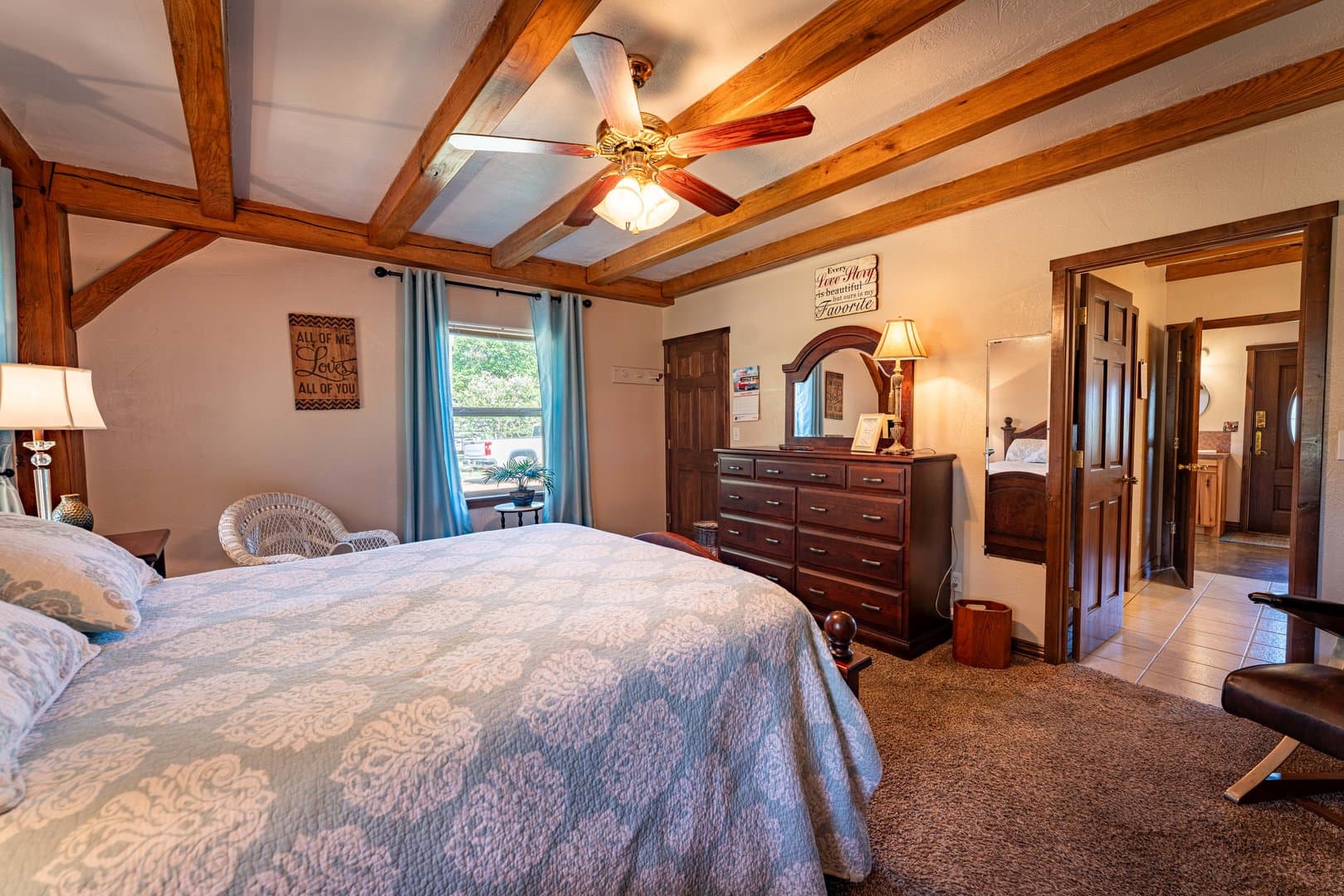 Welcome to Twisted Oak Ranch, a 192± acre paradise nestled in the heart of Red River County. This extraordinary property offers beautiful pastures, towering hardwoods, and abundant wildlife, making it a haven for ranchers and outdoor enthusiasts alike. The centerpiece of Twisted Oak Ranch is the exquisitely crafted main home, built with lumber harvested directly from the land it graces. Every detail, from the ceiling beams to the trim, has been meticulously hand-cut, shaped, and finished, showcasing the beauty of the surrounding woods.