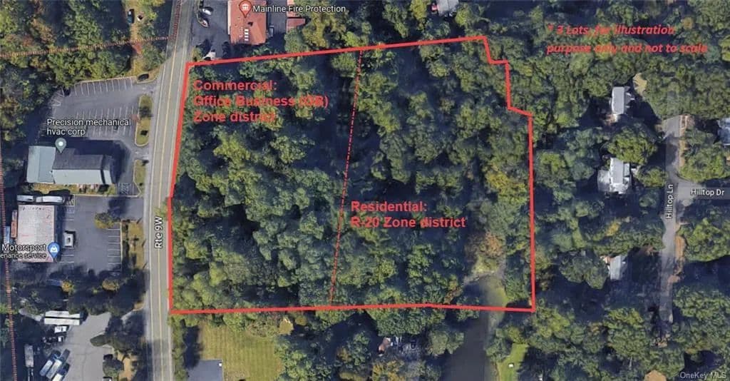 This offering consists of a package of 3 lots - totaling approx. 4.3 Acres - on US Rte. 9W with 300+ ft. frontage, in Upper Nyack (Clarkstown), Rockland County. The front (9W) is in the versatile Commercial Office Business zone district, allowing many uses including (partial list) Fitness related, Retail, Medical & Veterinary, Bank and Labs; and, with special permit, Light Industrial & Warehouse, Day Care, Nursery/School, Vehicle & Parking related, Care Facilities and more. The back of the property is in the Residential R-20 Zoning District, with some wetland at the back (eastern) end. Some engineering studies for the potential development of the site were performed and engineering drawings for a proposed 54,900 SF or 81,900 SF Self-Storage Building, and also a recent Phase-I study - are available.