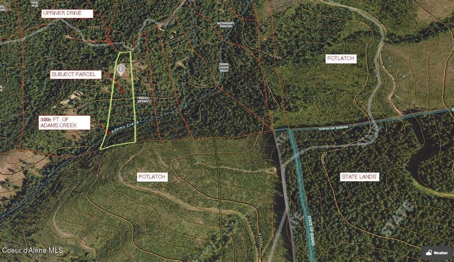 Perched above the valley with forever views of the Saint Joe Mountains, this 6-acre parcel provides a breath of fresh mountain air to quietly contemplate the endless recreational opportunities which surround you. The tranquility of 300± feet of Adams Creek gently flowing through the property is yours alone to enjoy. Adjoining directly with Potlatch timber lands, this parcel is your gateway to literally thousands upon thousands of acres of timber and state lands waiting to be explored; 4-wheeling, ATV'ing, hiking, hunting or just enjoying the peaceful solitude. Basic necessities are available at the Fernwood Mercantile country store (5 miles away); from there, a short drive along Idaho's White Pine Scenic Byway can lead you to the shores of Lake Coeur d'Alene, or the southern route to the Palouse.