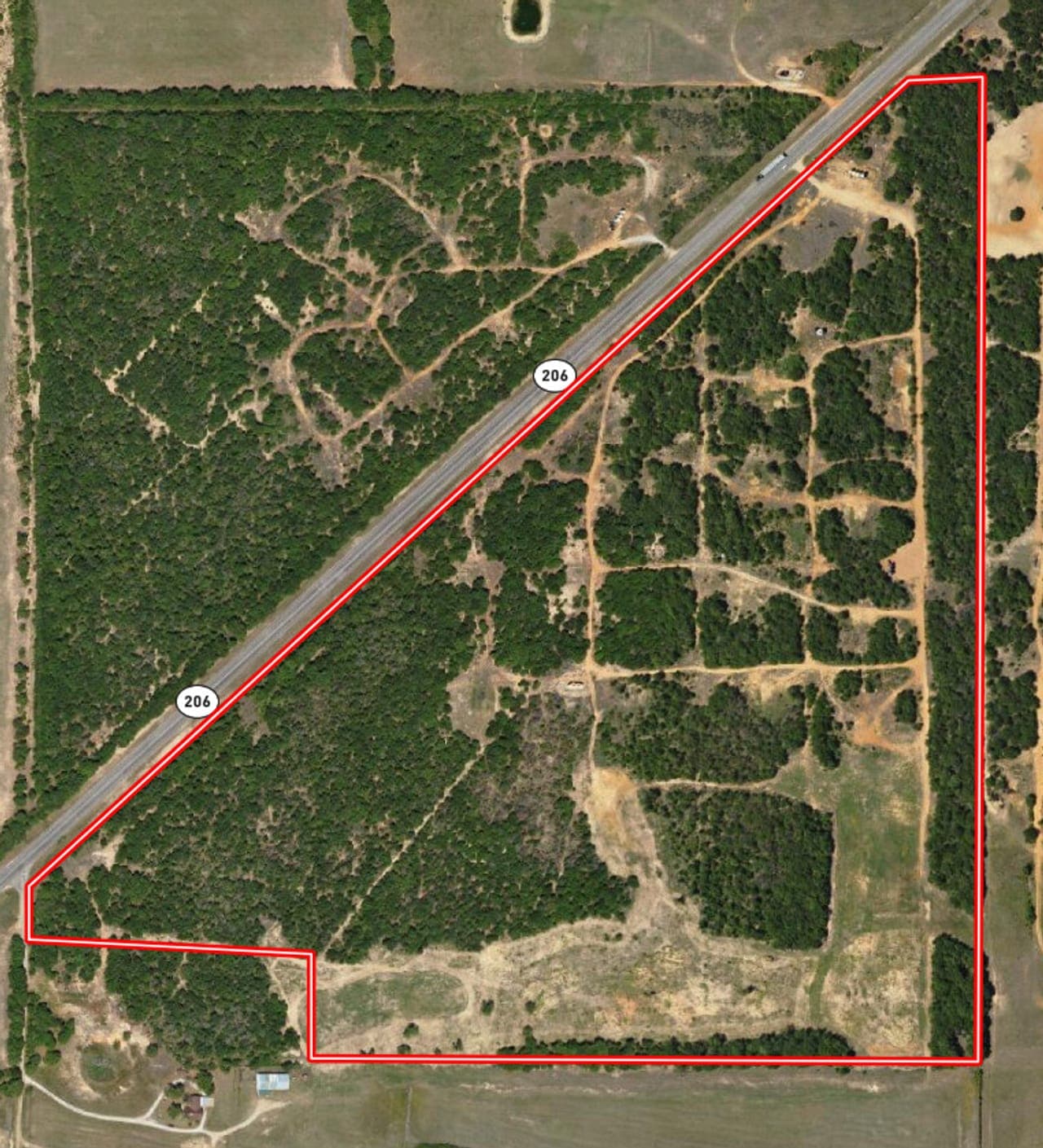 Welcome to this 95+/- acre property located between Cisco and Cross Plains, Texas, perfect for both investment and recreation. This property is a haven for deer hunting, as the land features mature oak trees, that create great cover and habitat for wildlife. The terrain is diverse, with 30 feet of elevation changing across the land adding character. Existing roads from previous oil production traverse the property, offering convenient access. Multiple clearings are ideal for creating food plots or setting up your future homesite. With an impressive 3,200 feet of road frontage along Highway 206, the property provides excellent visibility and accessibility. Whether you envision subdividing and developing, seeking a private hunting retreat, or making this property the perfect homesite, this property offers a unique combination of investment potential and recreational opportunity.