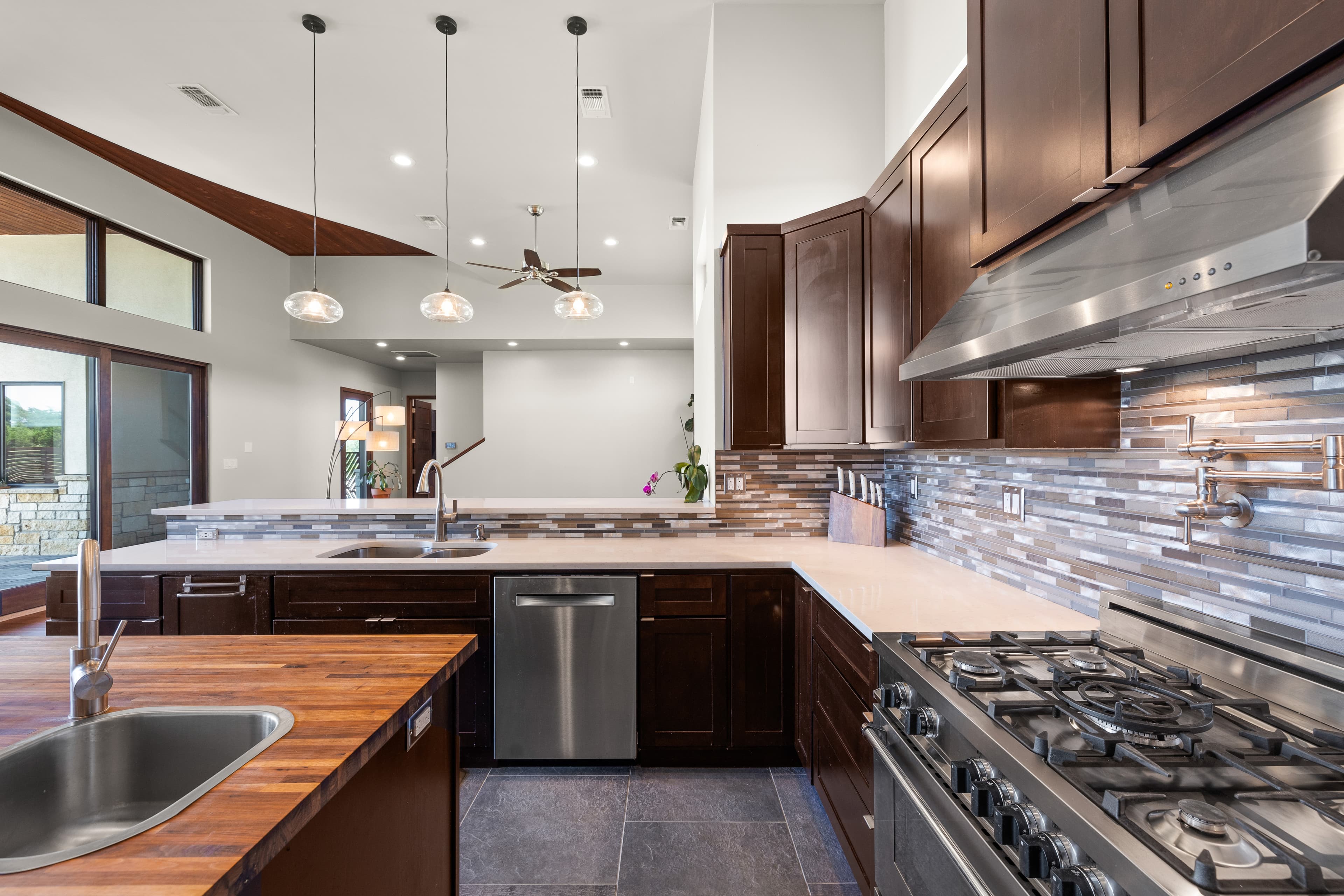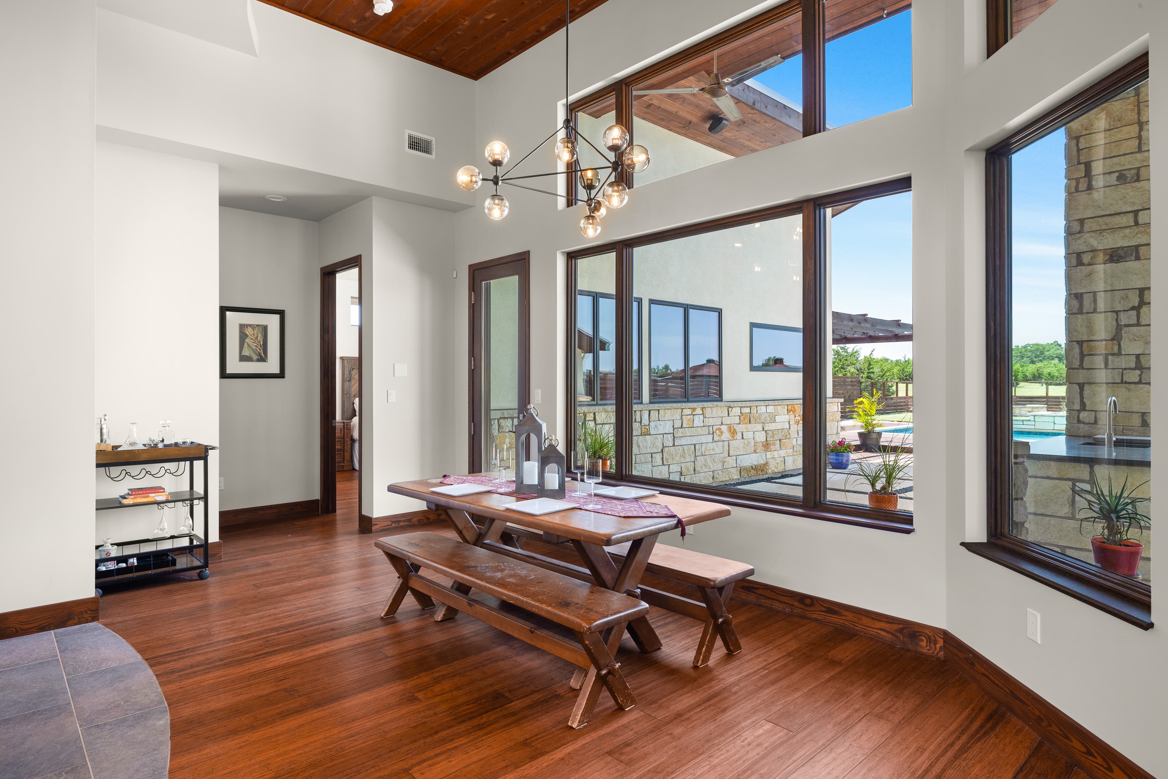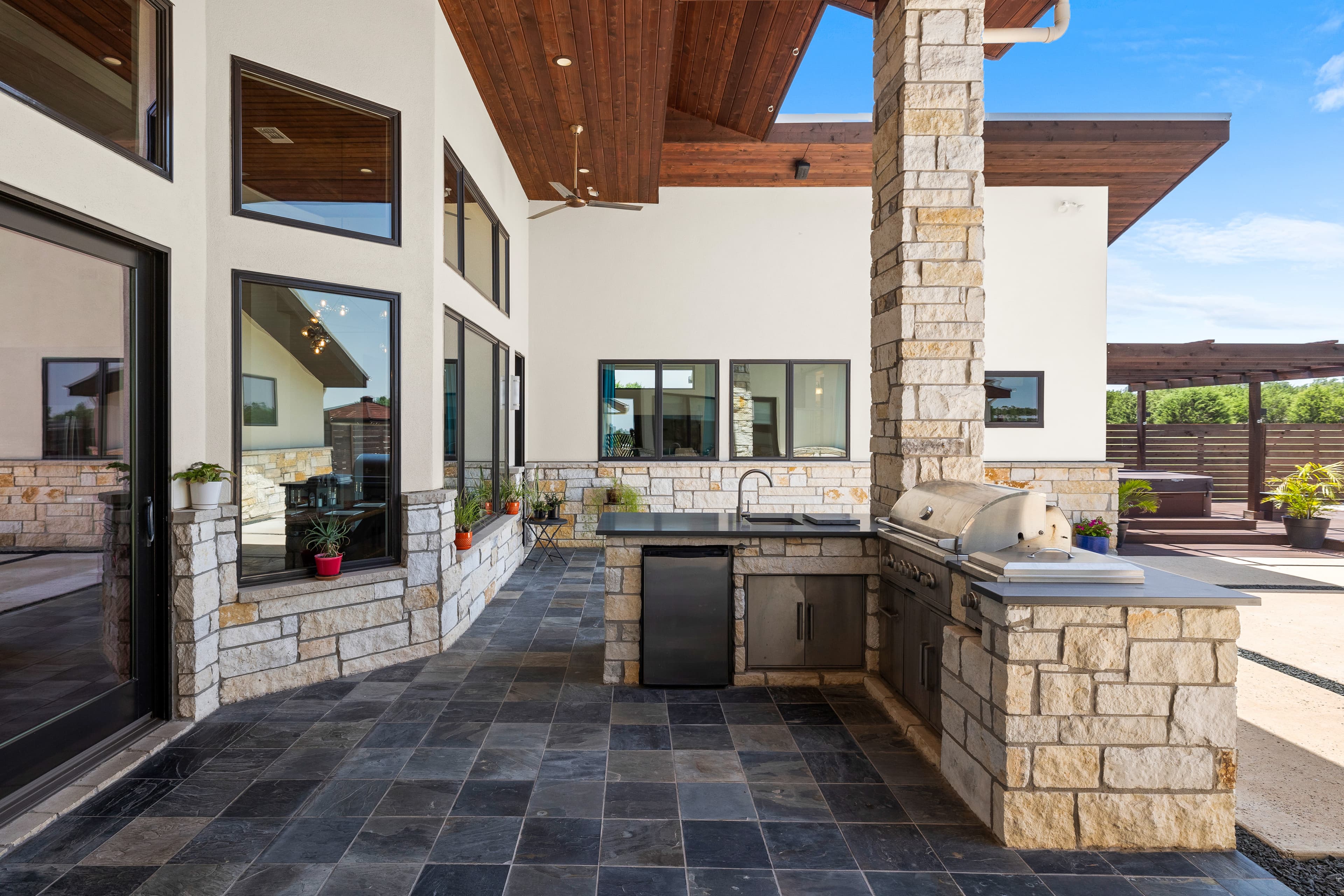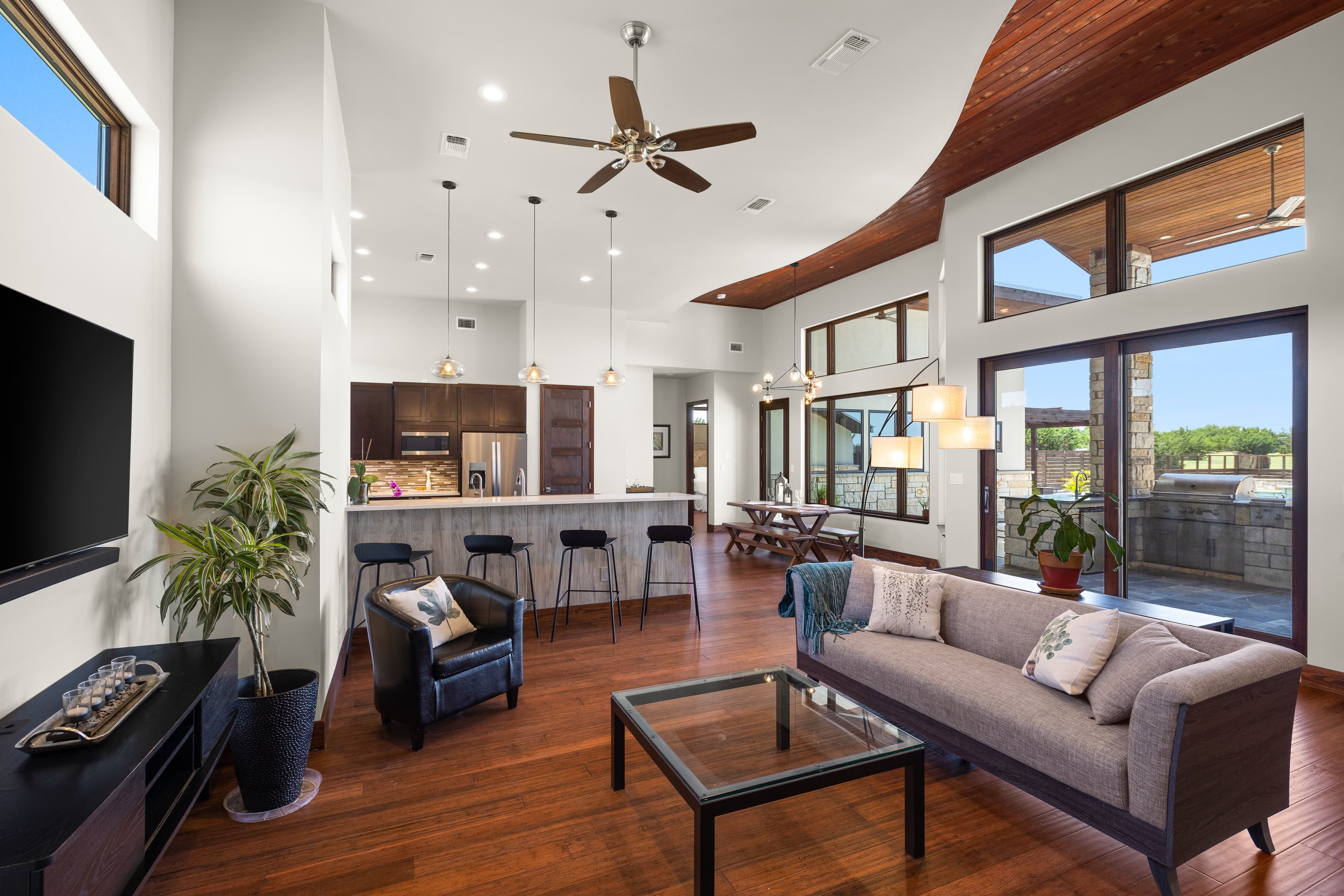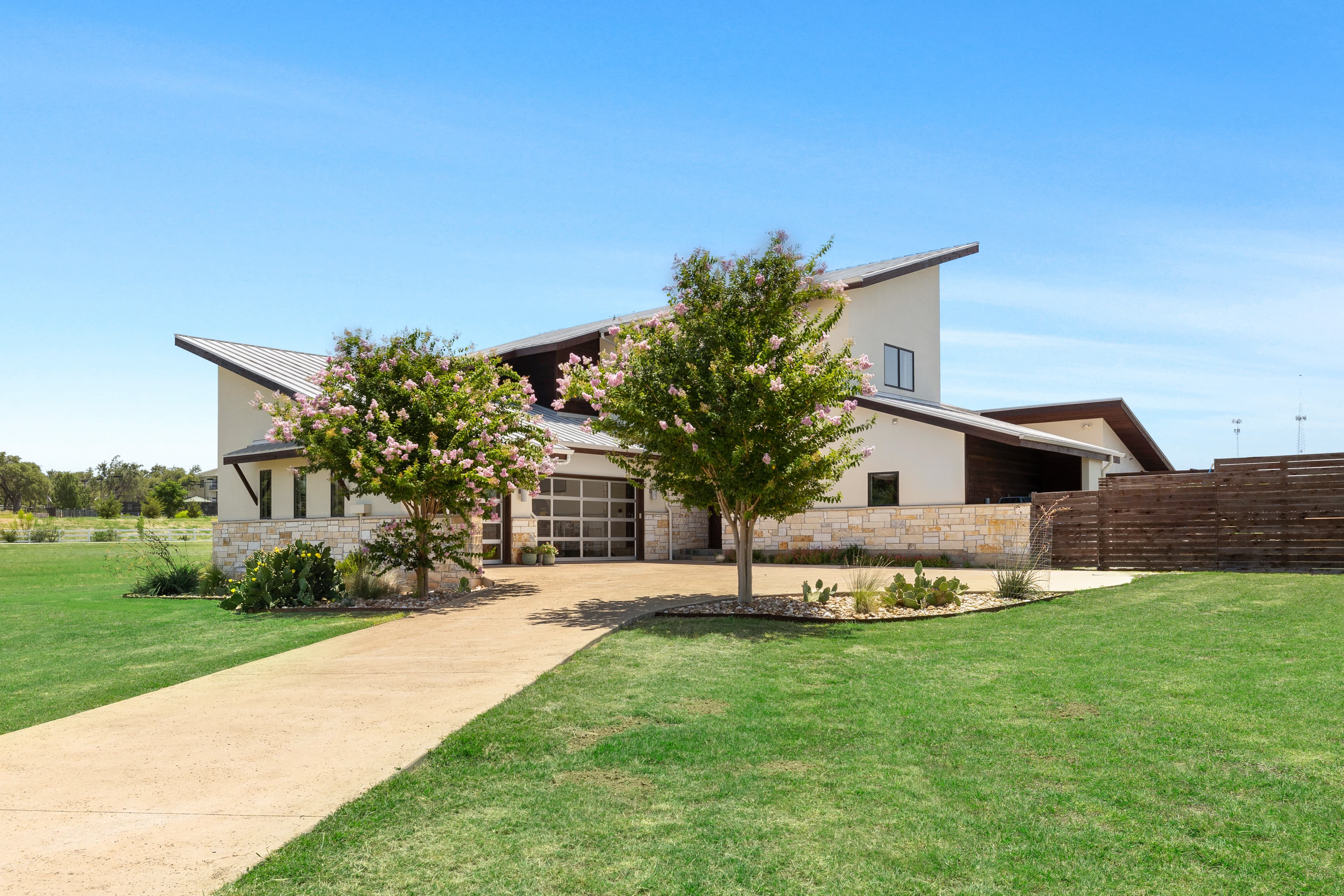 Welcome to 135 Winning Colors, a custom-built 2015 home in the prestigious gated community of Key Ranch at the Polo Club. Situated within the renowned Dripping Springs ISD, this modern 4-bedroom, 3.5-bathroom residence offers luxury, comfort, and functionality. The home features 3,262 square feet, including a 2,805 square foot main dwelling and a 457 square foot guest casita, perfect for guests or multigenerational living. Set on a sprawling 3.67-acre corner lot, there's ample room for additional structures that could include a barn and paddock, or sports court. Inside, discover bamboo plank and tile flooring. The main kitchen is a chef's dream, equipped with a Whirlpool refrigerator, Bertazonni 36" range and oven, wine refrigerator, and walnut butcher block island. The primary bathroom boasts heated floors, a soaking tub, and a large walk-in shower with dual shower heads. The outdoor living space features 750 square feet of covered patio, an outdoor kitchen, pool, hot tub, and fire pit. The property also includes a 30,000-gallon rainwater harvesting system with three-stage filtration and UV sterilization, ensuring a sustainable water supply. Recent updates include fresh exterior paint and stain (2024). Additional amenities include a 1,029 square foot three-car attached garage and a luxurious pool. Conveniently located near AESA Prep Academy, the POLO Tennis Club (featuring Tennis, Pickleball, and Padel courts), and The XS Equine Stables, this property is ideal for sports and equestrian enthusiasts. Key Ranch offers equestrian-friendly homesites ranging from 3 to 10 acres, just 18 miles west of downtown Austin. Experience modern living in a serene, gated community at 135 Winning Colors. This property offers a luxurious lifestyle in a prime location.