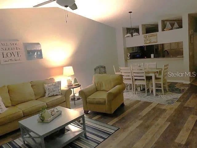 Step into a bright and airy living space, featuring a spacious living room and a stylish dining area, perfect for relaxing or entertaining. The condo is fully equipped with modern furnishings and decor, making it move-in ready for your seasonal stay.