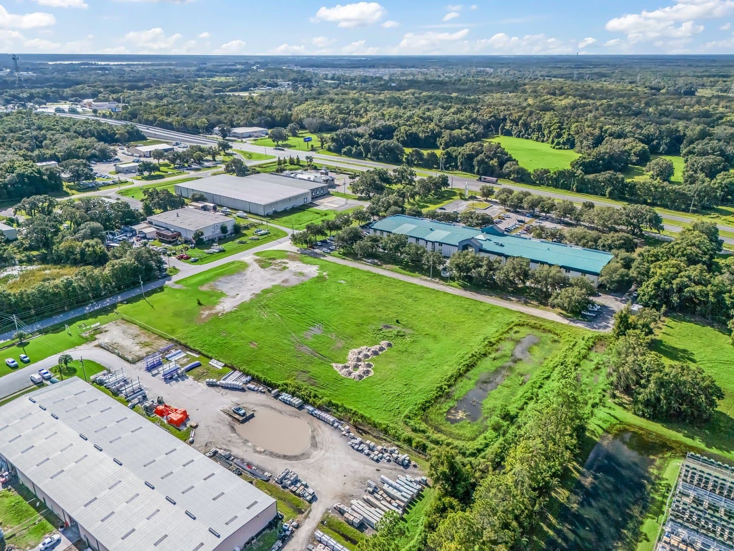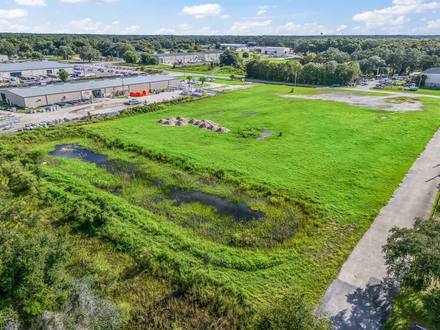 4.98 acres located in the desirable Willard Peebles Industrial Park. Directly behind Florida Department of Children & Families and Russell Stover. Property is zoned M-1, which can be used for light industrial uses. Acreage has some stabilized surface and a retention pond has been added. Future land use is industrial. Approximately 352 feet of frontage on Industrial Drive and 570 feet of frontage on the paved road on the south side of the property. There is a 10” water main along Industrial Dr. in front of the property. An 8” sewer line runs along the same route in front of the property. It also appears that a 4” lateral sewer line runs to the property from the existing 8” but would need verification. The 3,400-acre Monarch Ranch to the South of the property recently sold with plans for development. The Villages is to the East and South. Close to major highways such as US Hwy 301, the Florida Turnpike and I-75. It is approximately an one hour drive to Tampa and Orlando.