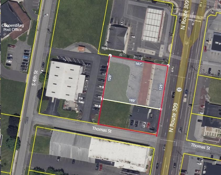 Prime Corner Lot for Land Lease – Ideal for Fast Food or Retail. Seize this incredible opportunity for a NNN land lease on a high-traffic corner lot in Coopersburg, boasting 197’ of frontage along bustling Route 309. This 33,541 SF site is perfectly situated in front of the popular businesses Link Beverages and Potts Doggie Shop, ensuring consistent traffic and visibility. The property currently holds a car wash and laundry but offers tremendous potential for transformation. With a daily traffic count of approximately 38,000 cars, this location is primed for success. The site features easy ingress and egress on both roads, providing smooth access for customers. C-1 Commercial Zoning opens the door to a variety of uses, including: Fast food and restaurants, Retail stores, Drinking establishments, Professional offices, Banks, and much more! (Verify any intended use with the borough zoning office). Asking: $115,000 per year as a land lease.