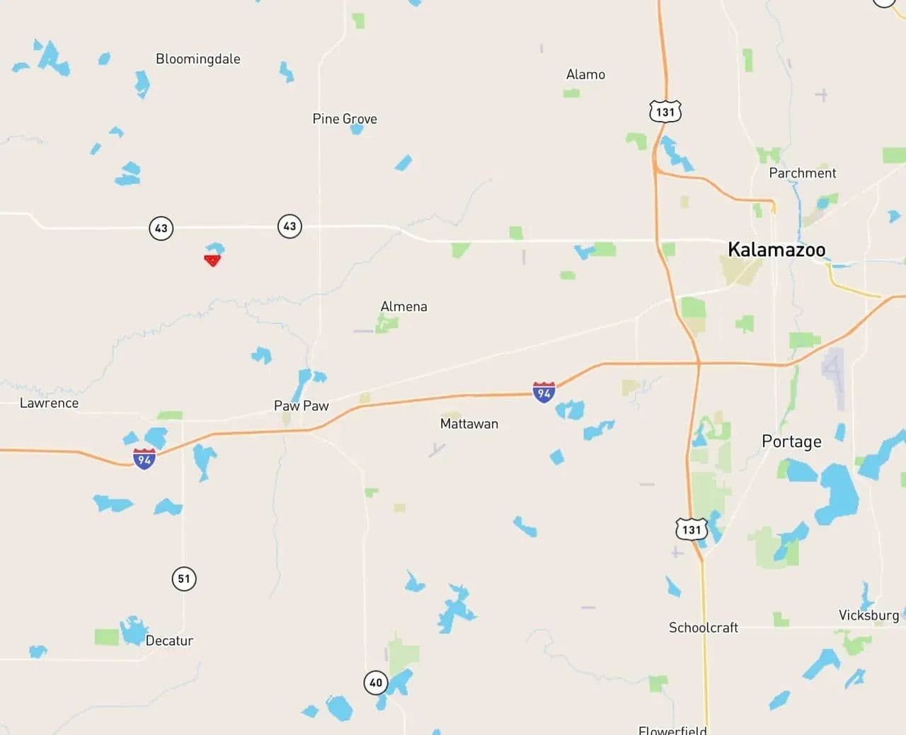 The property is a short 13-minute drive from downtown Paw Paw, MI. It is also a 25-minute drive through scenic Southwest Michigan to reach the shores of Lake Michigan, 30 minutes from Kalamazoo/Portage, MI, and only an hour from downtown Grand Rapids.