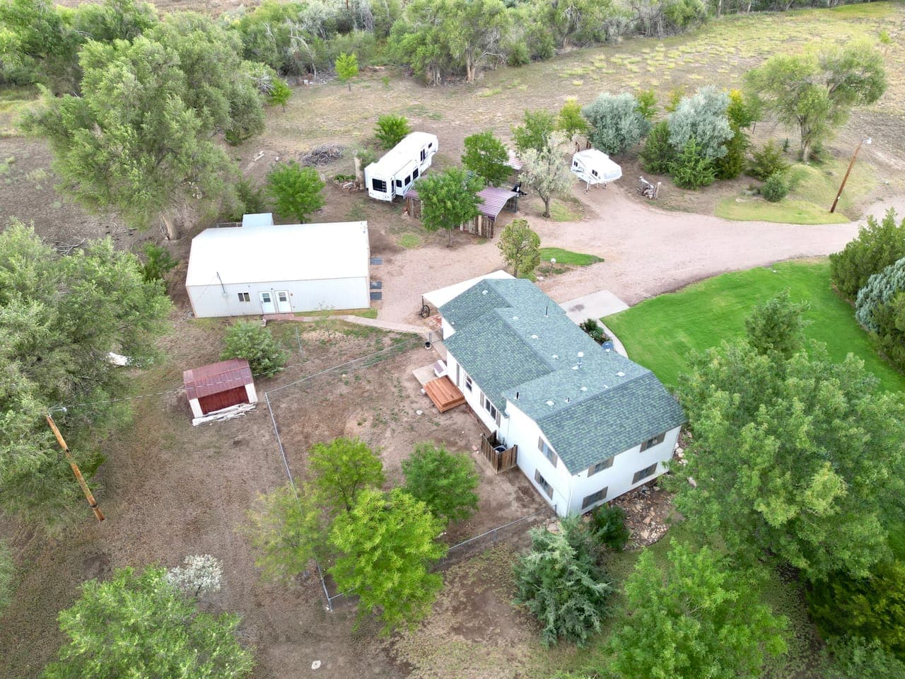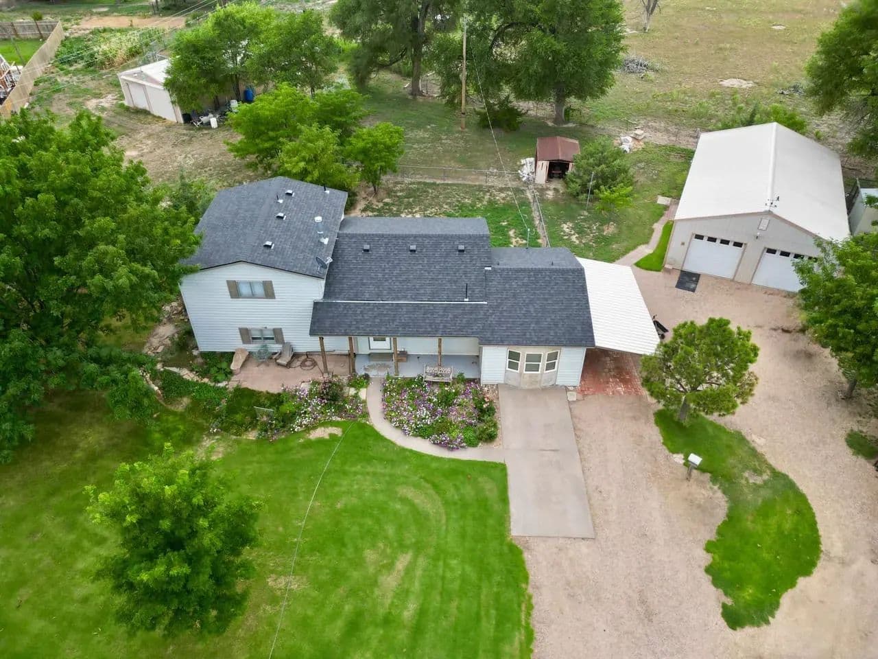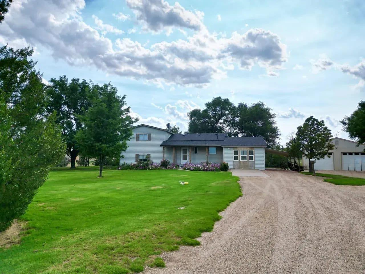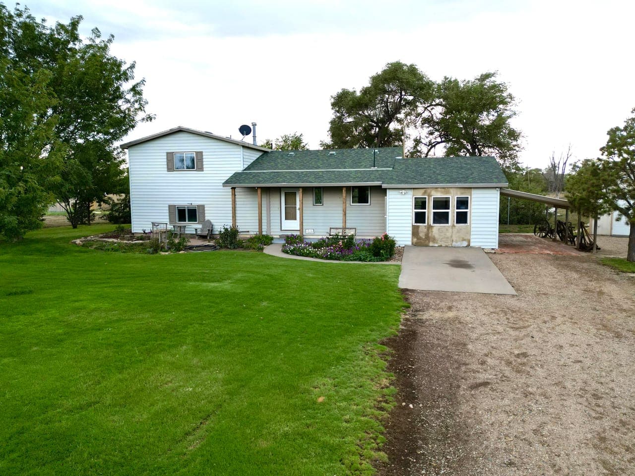 Enjoy country living on 3.45-acres, sitting on the edge of Las Animas City Limits. This 3-bedroom, 1.5 bath home is tucked behind mature trees at the end of a paved road with surrounding open fields. Let the lush front yard and flowering plants welcome you onto the property. The open concept main level includes a newly remodeled kitchen with granite countertops, and luxury vinyl plank flooring that spans into the 2 separate living rooms. The lower level includes 1 bedroom, half bath, and a laundry space with a stackable washer and dryer. The upper level has 2 bedrooms and a full bathroom with a tub and shower combo. Allow the 2 large additional living spaces of the home meet your needs as you see fit. Included on the property is an attached carport, a 2-car carport, and a 2-car garage with a separate workshop. The workshop has 110v and 220v outlets. There is an assortment of established trees watered by a drip irrigation system allowing for shade and additional privacy. The back yard has a chain link fence creating a defined space. This property has so much to offer to a new homeowner, let it be you!