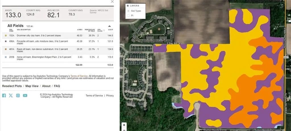 110 Acres Tillable on the east side of Charleston. Soil is Drummer silty clay loam(144 PI), Raub silt loam(134 PI), and Fincastle silt loam (121 PI)