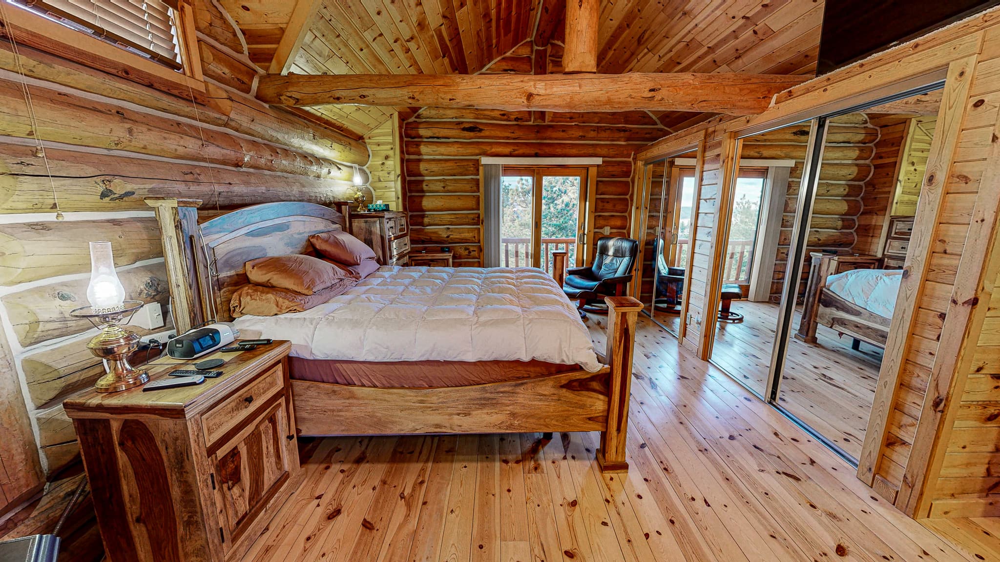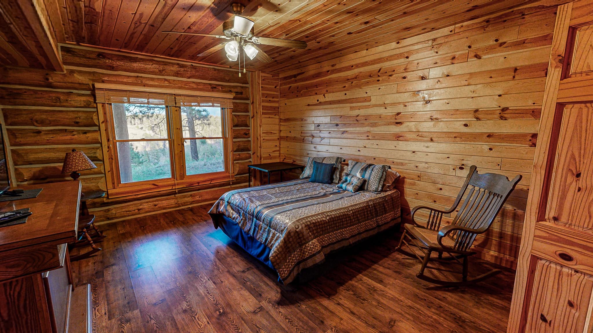 The property features a custom-built log home constructed in 2007 which provides 2,880± square feet of carefully planned living area. The great room showcases a two-story rock fireplace as its central feature among its three bedrooms and three bathrooms. The master suite on the upper floor includes a five-piece bathroom suite and a loft space which provides a view of the main living area. The lower level contains two bedrooms with a full bathroom and a private family room and direct access to the outdoors. The home provides year-round comfort through its heating system which includes in-floor radiant heat and forced air heating and air conditioning and a 15 kW backup generator.