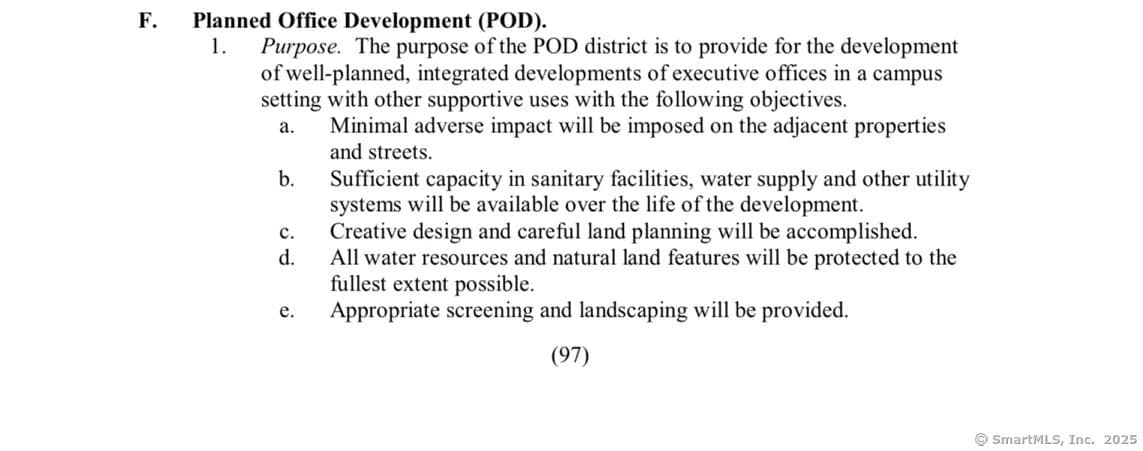 14 + Acres Large flat land with over 600 foot frontage, possibilities for agricultural or horse, nursery, landscape companies or garden center. Plenty of parking for equipment. Lot can also be used for a planned office development. There are 14 greenhouse hoop frames , a newer Kloter Farms Shed for storage or office area . Three phase power on the property. An irrigation system with sprinklers. The property is located on route 71 with easy access to I -691, route 15 and connecting highways. Great opportunity to own large parcel! - Permitted uses. The following uses shall be permitted as a matter of right in the POD district: a. Agriculture Special permit uses. The following uses shall be permitted in the POD district, subject to special permit and site plan approvals by Zoning in accordance with Sections XII and XIII: a. Professional offices, including facilities to house data processing equipment, management, and/or general administrative functions such as corporate offices
