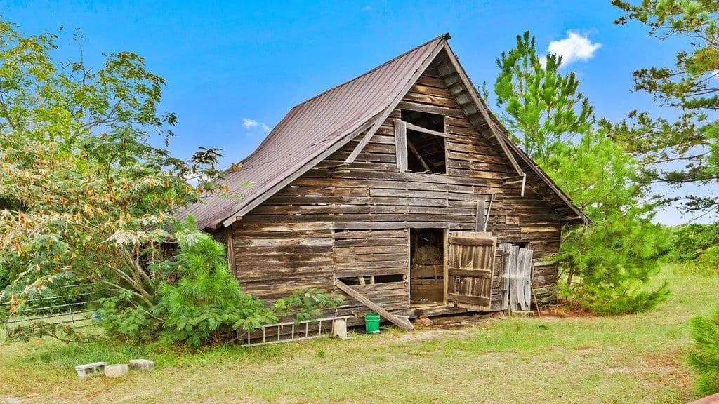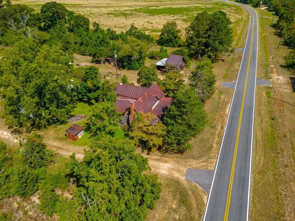 23 +/- acres and over 900 ft of paved road frontage with pre 1900 homeplace that includes old farmhouse structure and barn. Home has beautiful unpainted heart pine tongue and groove walls and ceilings and wide plank heart pine flooring that could be repurposed in new build. The old homeplace is surrounded by pecan, pear and muscadine vines. The remaining land has planted longleaf pines. A well is on property and county water and power are available along Ga Hwy 240 Connector road frontage. Additional lands to the south could potentially be purchased with this tract. Property is on Ga Hwy 240 Connector near the intersection with GA Hwy 127, property is NOT on GA Hwy 240.