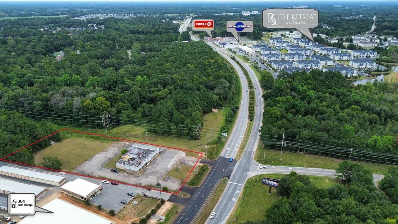 This prime +/- 2-acre lot is perfectly positioned at the busy intersection of Loring Mill Road and Broad Street, offering exceptional visibility and access. Just a quarter mile from the newly developed Retreat Apartment Complex, a vibrant strip center, and major gas stations like Raceway and Circle K, this site is in a thriving commercial hub. Located near Shaw Air Force Base and within 1.5 miles of eleven established or upcoming developments, this property is ideal for future growth and investment opportunities.