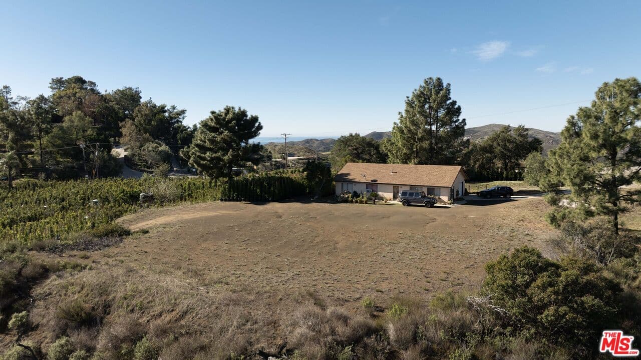 Rare Woolsey Fire Burn Out opportunity with existing 1780 sq. ft. guest house on 10 acres with 3 to 4 flat acres and several flat potential building sites and panoramic views of the ocean and Boney Ridge. See Virtual Tour for 360 images throughout property. There is an existing 2 bedroom, 2 bath guest house with Living Room, Study Room and Kitchen on approx 3 flat acres with beautiful views through the canyon. Above the guest house is a large flat pad with a driveway up to where the original appx. 2,000 sq. ft. main home with separate approx 500 sq.ft. Garage/Studio was located with spectacular views of Boney Ridge & the ocean . Most of the 10 acres is terraced and gently sloping with thousands of ficus trees being grown (ficus trees owned by tenant and not sold with property) and roads leading down to another expansive flat space. City Water and electricity plus water well on property . This is the only property on the market in this price range where you can live on a property in a large 2 bedroom guest house with this much usable land, ocean views and the ability to build your dream home with expedited Fire Rebuild permits.