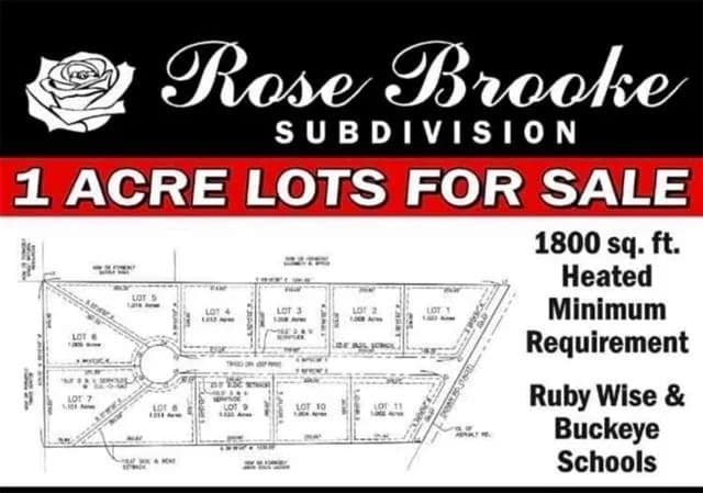 Come be a part of the new wonderful Subdivision Rose Brooke! Each Lot is approximately 1 acre and is limited to Site built homes with a minimum of 1800 Sq Ft. It is located in a highly desirable school district and is just minutes from shopping and restaurants. Don't miss out on this this great location